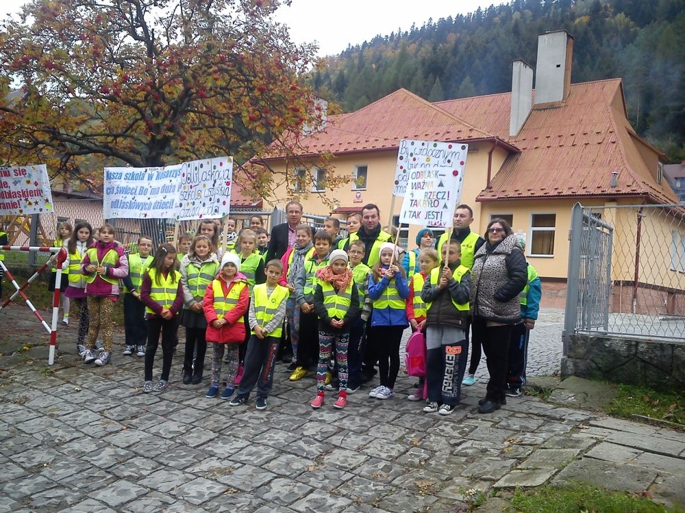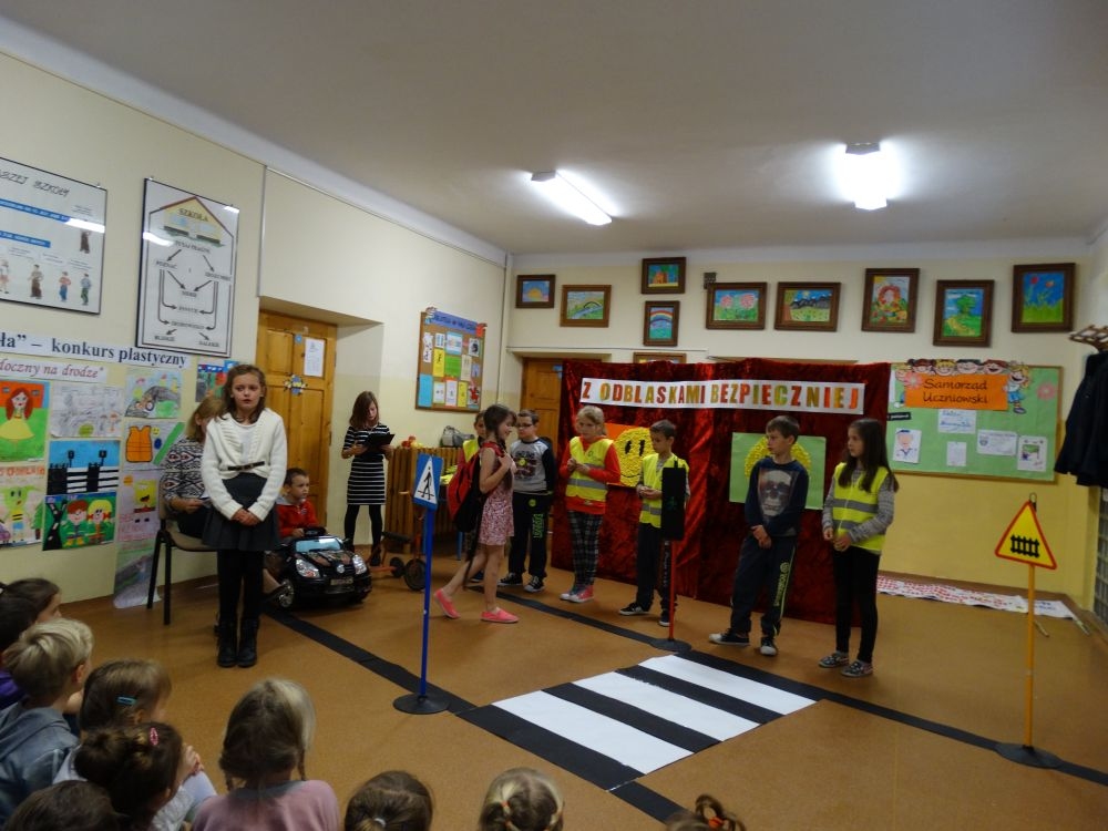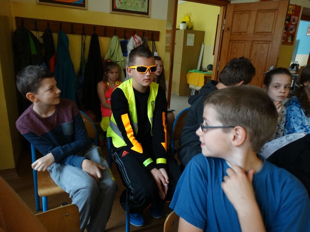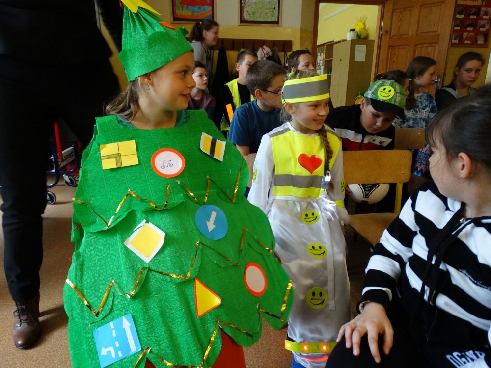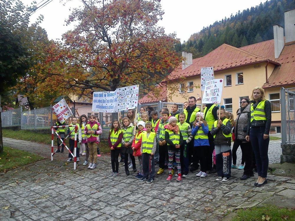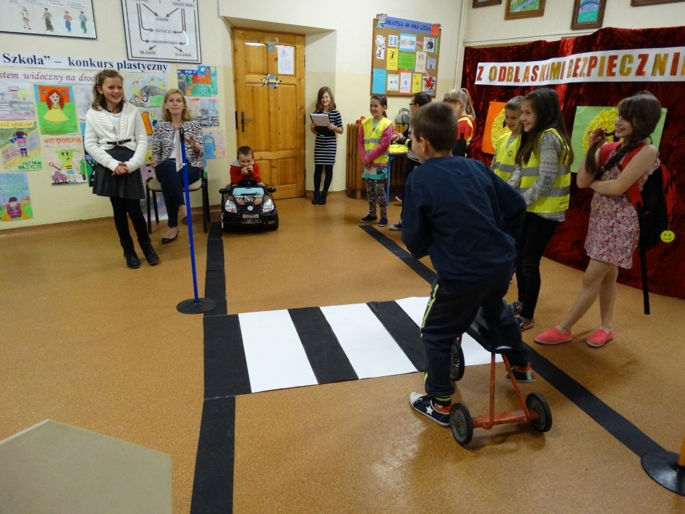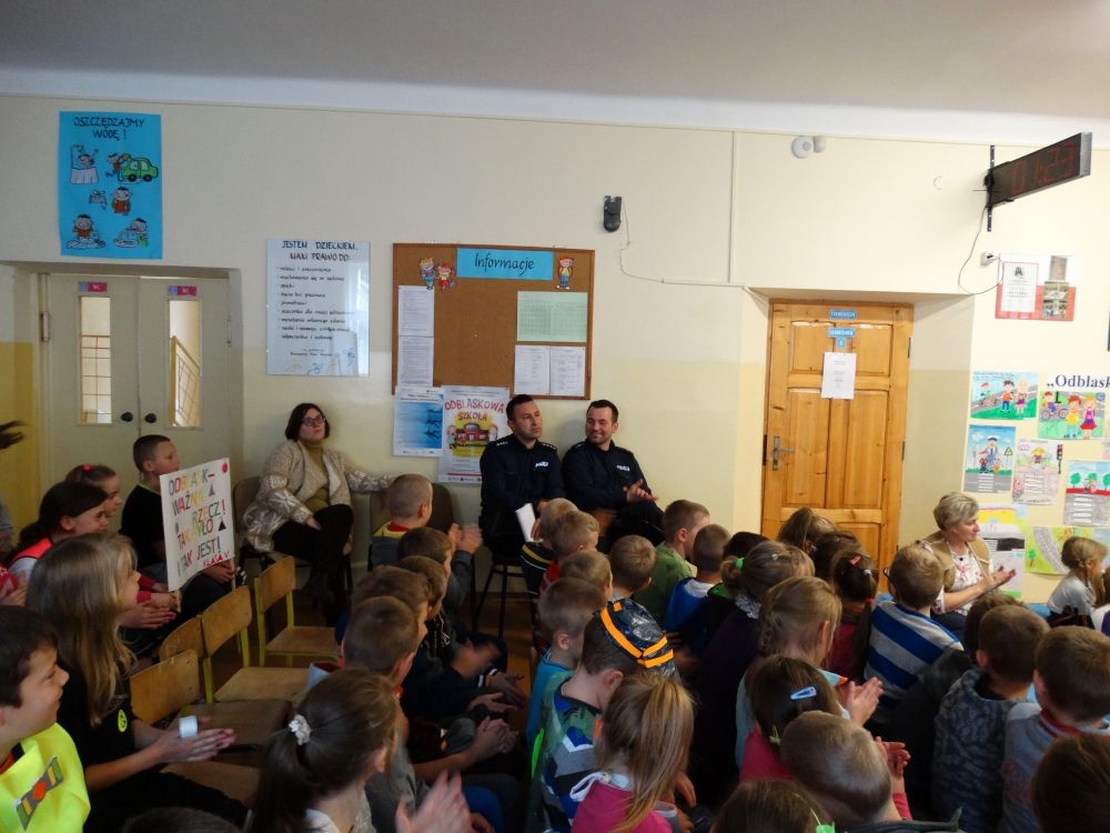 Po raz drugi nasza szkoła przystąpiła do akcji „Odblaskowa Szkoła”, organizowanej przez Wydział Ruchu Drogowego Komendy Wojewódzkiej Policji w Krakowie. Konkurs ma na celu propagowanie zachowań, prowadzących do poprawy bezpieczeństwa na naszych drogach. Dzieci w formie zabaw oraz konkursów zdobywały i utrwalały wiedzę o bezpiecznych zachowaniach w drodze do i ze szkoły. W ramach realizacji tego przedsięwzięcia 16 października odbyło się spotkanie uczniów z policjantami z Komisariatu Policji w Piwnicznej Zdroju - aspirantem sztabowym Wiesławem Kozieńskim i młodszym aspirantem Marcinem Bołozem. Goście opowiadali o obowiązujących przepisach ruchu drogowego i o konieczności przestrzegania ich. Przypomnieli podstawowe zasady bezpiecznego poruszania się po drogach. Szczególną uwagę zwrócili na to, iż noszenie elementów odblaskowych na ubraniach i plecakach może niejednokrotnie uchronić od nieszczęścia. Dzieci zadawały mnóstwo pytań, na które policjanci cierpliwie i chętnie odpowiadali. Uczniowie podczas spotkania przedstawili inscenizację „ Z odblaskami bezpieczniej” promującą odblaski i bezpieczeństwo dzieci, które poruszają się codziennie po drodze. Wielką atrakcją był pokaz mody odblaskowej. Uczniowie prezentowali stroje wykonane z wykorzystaniem elementów odblaskowych. Na spotkaniu zostały wręczone dyplomy oraz nagrody zdobyte w Ogólnoszkolnym Konkursie Plastycznym. Dzieci wykazały się dużą pomysłowością, jak również wrażliwością artystyczną. Prace oceniało specjalne jury. Po nadzwyczaj burzliwej naradzie przyznano następujące miejsca i wyróżnienia: I miejsce – Anna Malczak kl. VI II miejsce – Monika Wnęk kl.V III miejsce – Karolina Wnęk kl.VI Wyróżnienie: Zuzanna Cużytek kl.VI Wszystkim młodym artystom dziękujemy za udział, a zwycięzcom gratulujemy! Jednym z ważniejszych elementów akcji było wyposażenie uczniów w kamizelki i elementy odblaskowe, gdyż zgodnie z ustawą każdy pieszy, poruszający się po zmierzchu po drodze poza obszarem zabudowanym, ma obowiązek używania elementów odblaskowych.