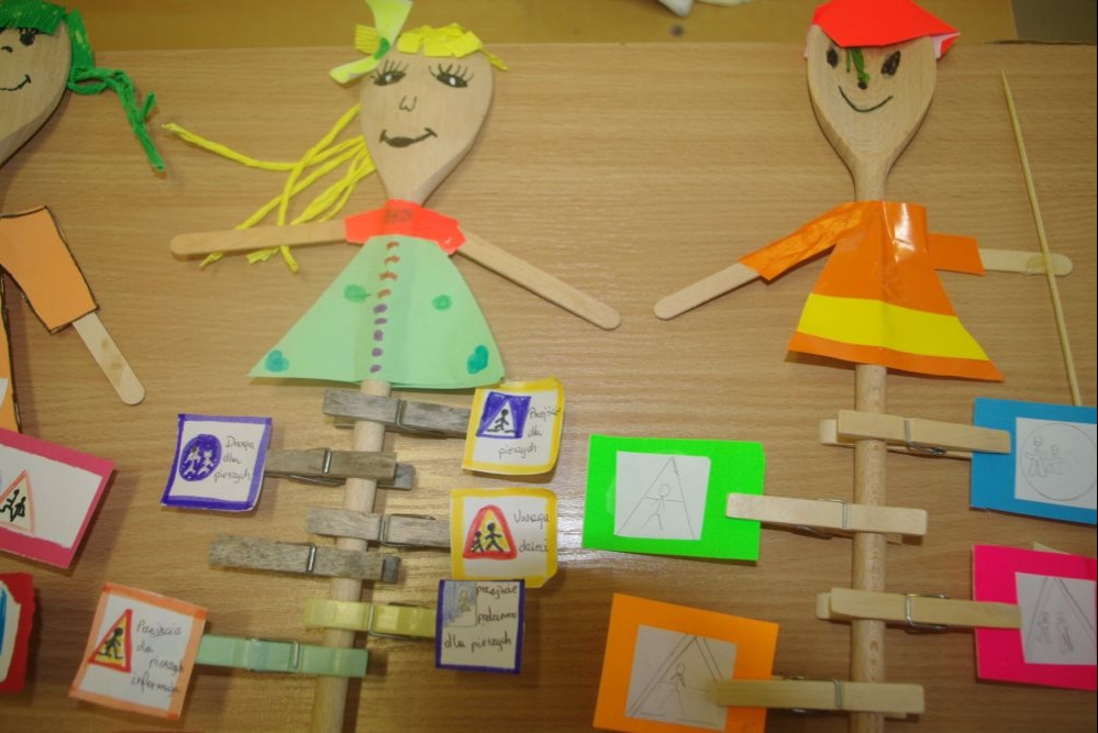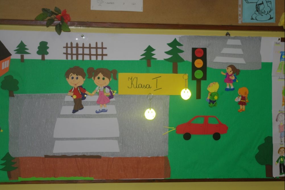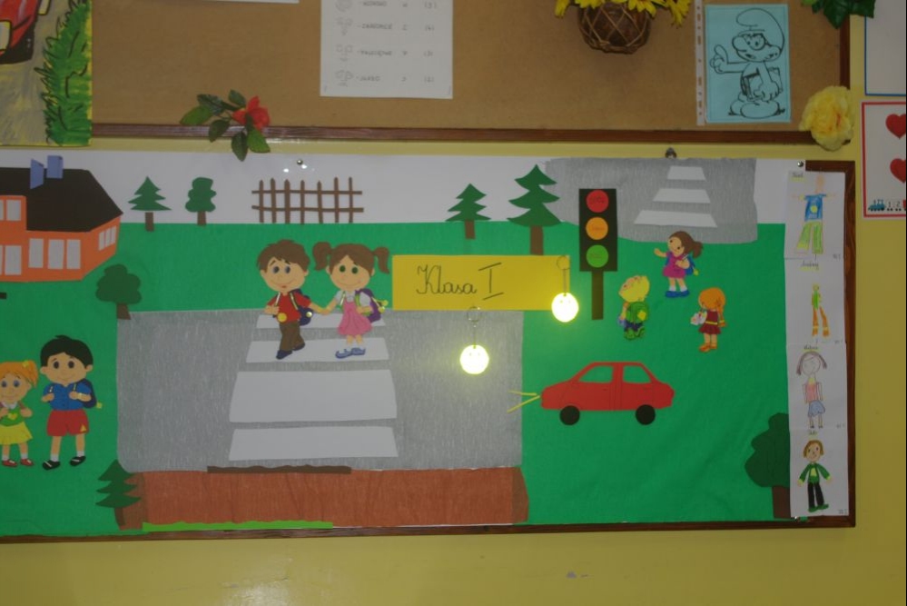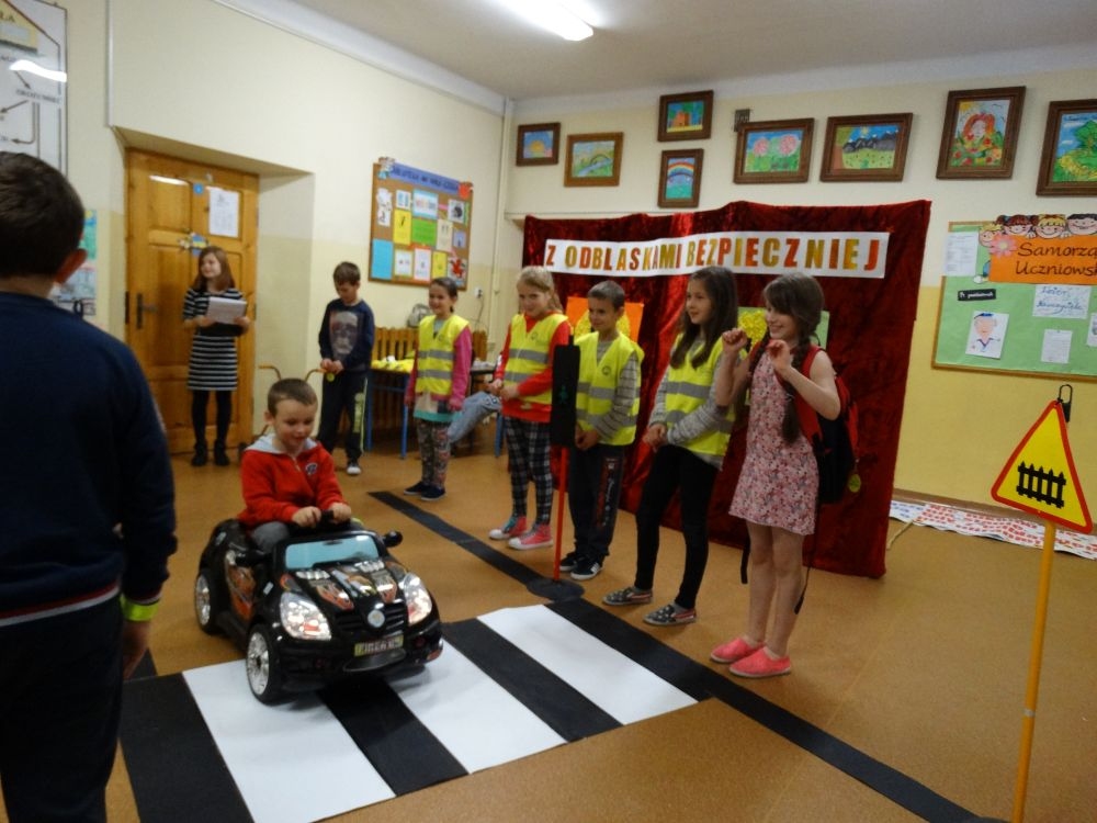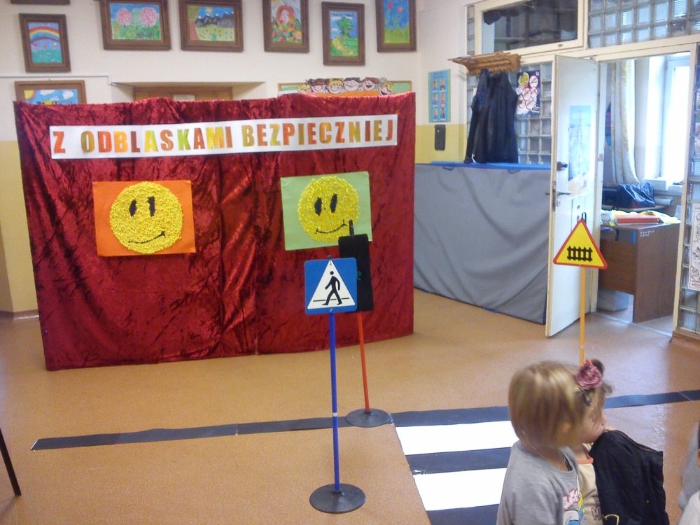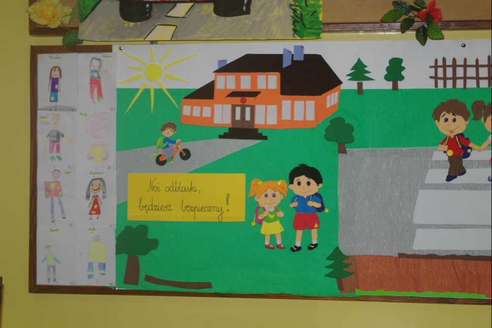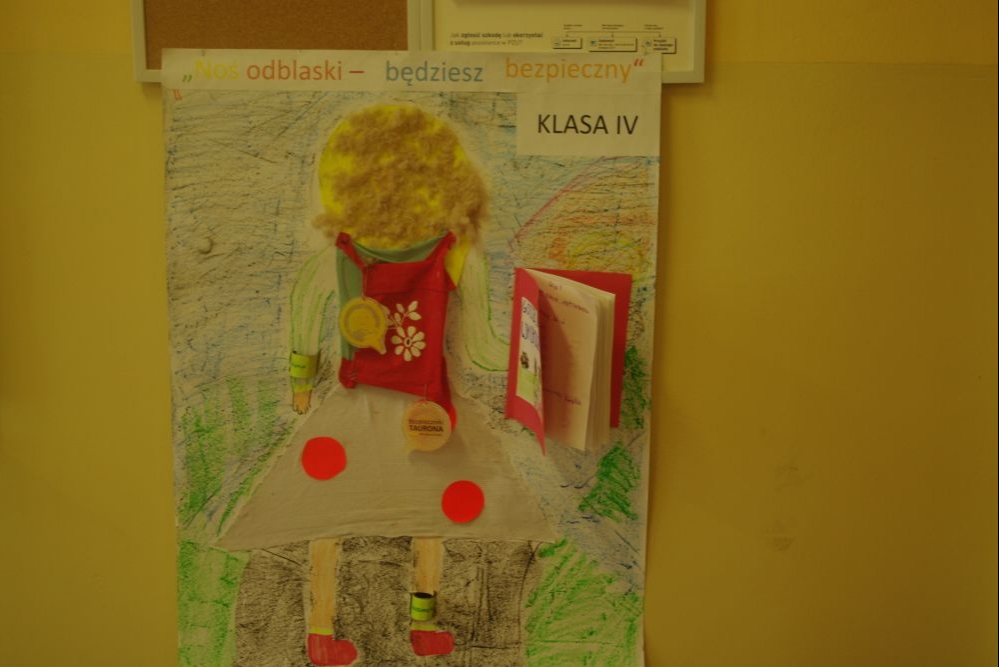 Wszyscy uczniowie zostali obdarowani odblaskami oraz dzięki firmie Tauron i rodzicom uczniowie klas IV – VI dodatkowo otrzymali kamizelki. Każdy uczeń klasy IV na zajęciach technicznych samodzielnie wykonał postać Pana Stopa. Tematyka zajęć doskonale wpisała się w program akcji „Odblaskowa Szkoła”, gdyż Pan Stop ma przypominać wszystkim o zasadach prawidłowego zachowania na jezdni. W tym celu do jego tułowia dzieci przymocowały zrobione przez siebie, najważniejsze znaki drogowe. Promocji i popularyzacji głównych założeń akcji mają służyć, również wykonane przez uczniów gazetki ścienne. W poszczególnych salach lekcyjnych można podziwiać prace, których motywem przewodnim są elementy odblaskowe. Uczniowie starszych klas na lekcjach wychowawczych wykonywali transparenty z hasłami propagującymi noszenie odblasków. Mamy nadzieję, że wszystkie działania, które zostały przeprowadzone przyczynią się do zwiększenia bezpieczeństwa w drodze do i ze szkoły naszych uczniów, ale także uświadomią innym, że noszenie odblasków powinno stać się nawykiem.