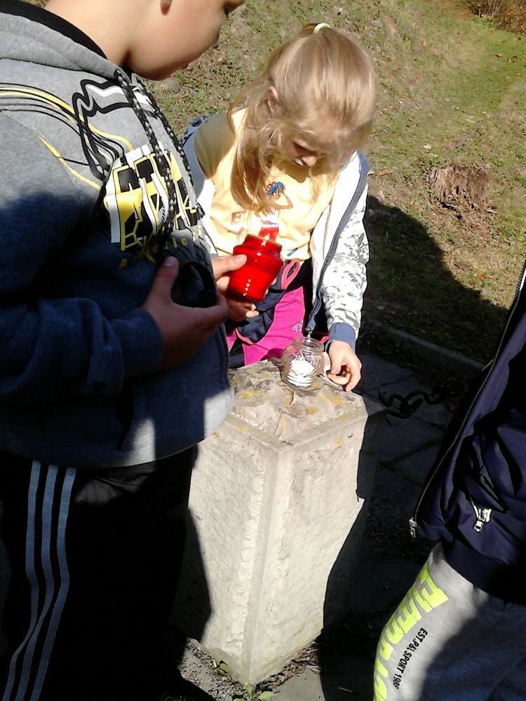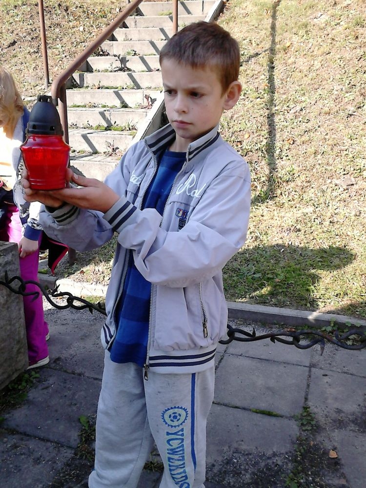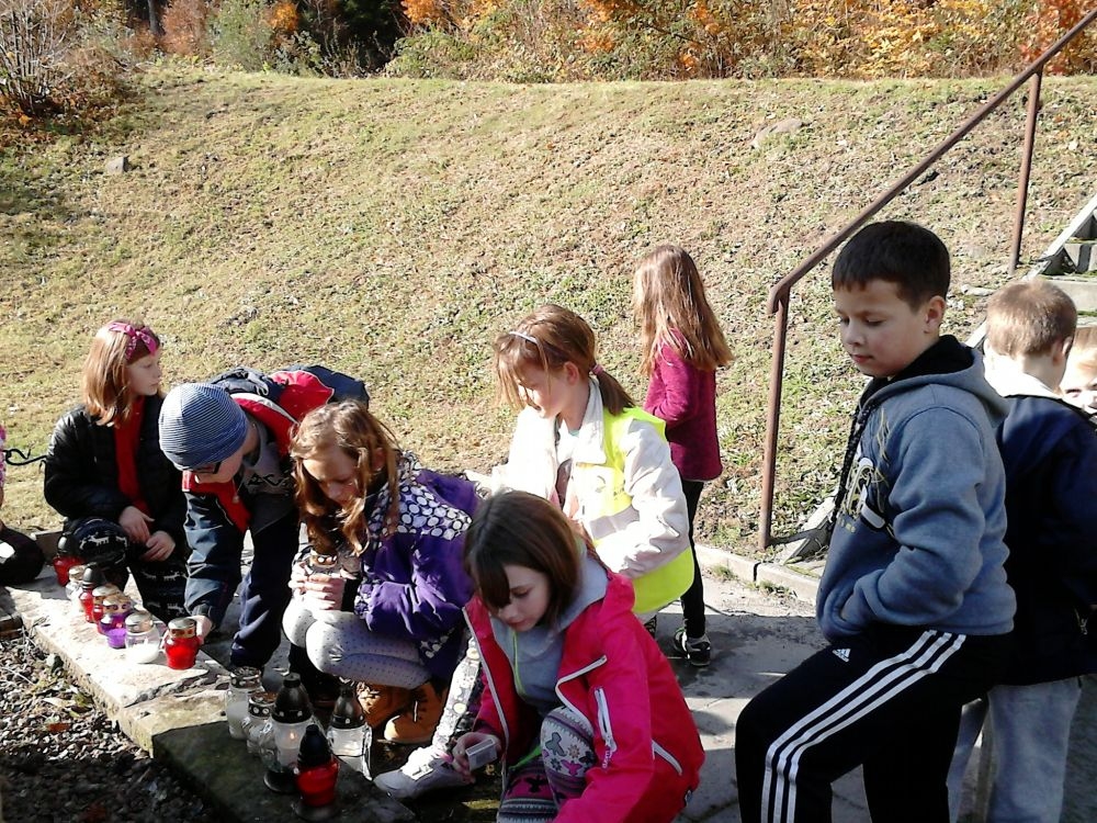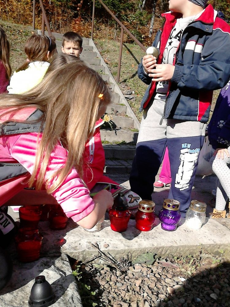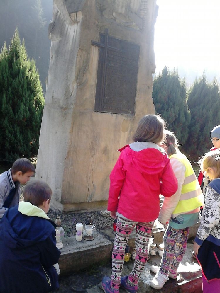 Okres przed Świętem Zmarłych, to odpowiedni moment na wspomnienie tych, którzy odeszli od nas, czas na rozmowę dotyczącą szacunku dla zmarłych. Praktyczną lekcję wychowawczą mieli tradycyjnie uczniowie starszych klas, którzy wraz z wychowawcami odwiedzili pomnik na Zworze. Dzieci zapoznały się z symboliką tego miejsca zadumy. Jak co roku, zapalili znicze w miejscu pamięci narodowej z czasów II wojny światowej - na grobie ludzi, o których należy pamiętać ze względu na ich zasługi i rolę, jaką odegrali w historii naszej Ojczyzny. Wszyscy przebywając tam, zachowywali się godnie, gdyż oddawali swoją postawą hołd poległym. Piękna jesienna pogoda sprzyjała klimatowi przeżyć duchowych.
