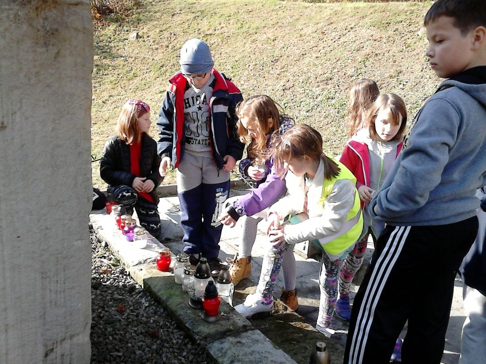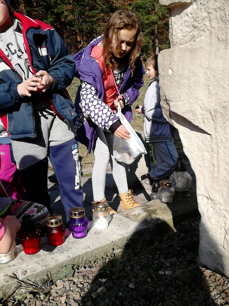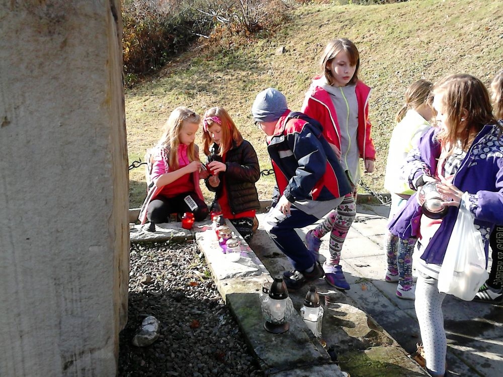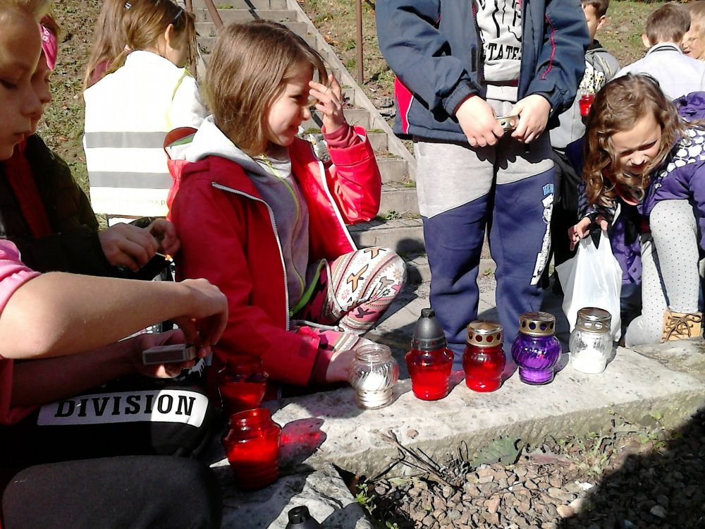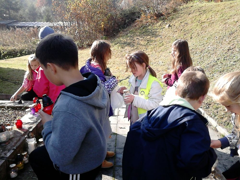 Okres przed Świętem Zmarłych, to odpowiedni moment na wspomnienie tych, którzy odeszli od nas, czas na rozmowę dotyczącą szacunku dla zmarłych. Praktyczną lekcję wychowawczą mieli tradycyjnie uczniowie starszych klas, którzy wraz z wychowawcami odwiedzili pomnik na Zworze. Dzieci zapoznały się z symboliką tego miejsca zadumy. Jak co roku, zapalili znicze w miejscu pamięci narodowej z czasów II wojny światowej - na grobie ludzi, o których należy pamiętać ze względu na ich zasługi i rolę, jaką odegrali w historii naszej Ojczyzny. Wszyscy przebywając tam, zachowywali się godnie, gdyż oddawali swoją postawą hołd poległym. Piękna jesienna pogoda sprzyjała klimatowi przeżyć duchowych.