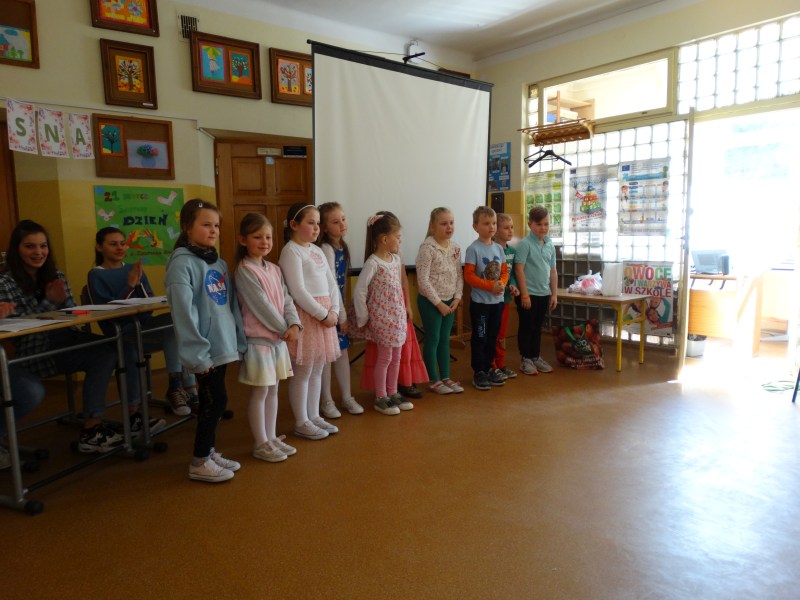 21 marca to także Święto Osób z Zespołem Downa, czyli dzień kolorowej skarpetki. Nasza społeczność uczniowska również dołączyła się do akcji i wsparła osoby z Zespołem Downa zakładając skarpetki nie do pary. „Mam skarpetki nie do pary. Powiesz pewnie: NIE DO WIARY! Lecz nie wszystkie życia dary, muszę siebie łączyć w pary.” Zwieńczeniem tego wyjątkowego dnia były słodkie upominki dla każdej klasy oraz barwny korowód na teren Kosarzysk z piękną eko Marzanną na czele.