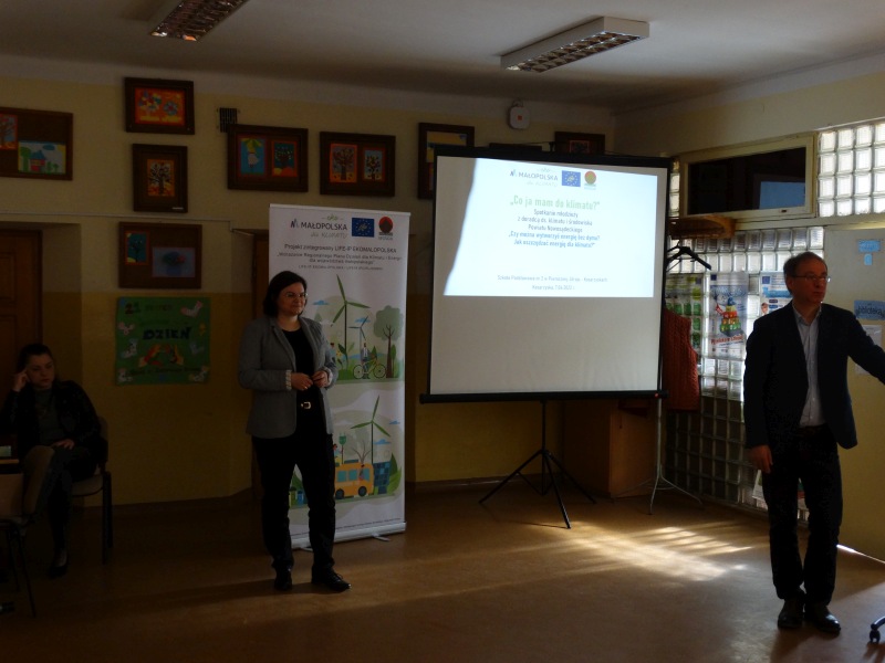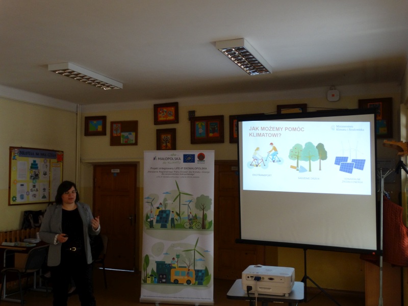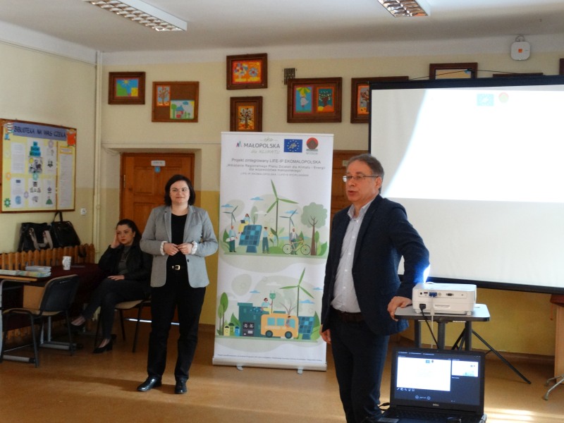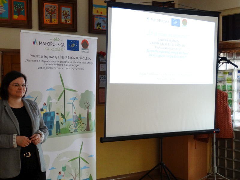 W dniu 7.04.2022 r. w naszej szkole odbyła się prezentacja programu Eko MAŁOPOLSKA dla Klimatu prowadzonego przez Wydział Ochrony Środowiska, Rolnictwa i Leśnictwa Starostwa Powiatowego w Nowym Sączu. Prowadzącym była Pani Joanna Jasnos podinspektor – doradca ds. klimatu i środowiska tego wydziału. Obecna była również Pani Beata Janur inspektor ochrony środowiska.