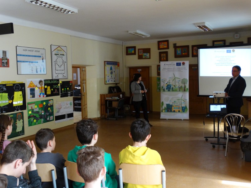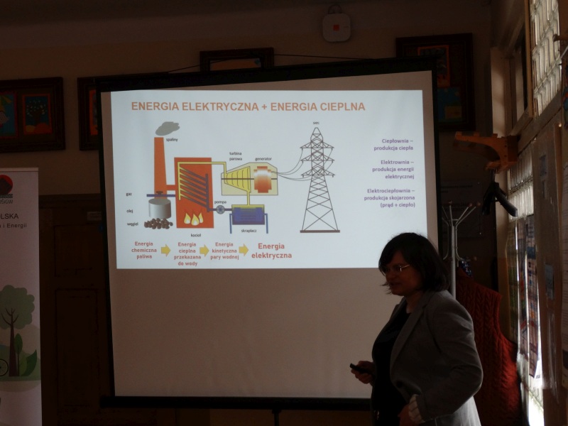 Głównym tematem prezentacji była tzw. ENERGIA bez dymu czyli produkowanie energii bez zanieczyszczeń i szkodliwych substancji dla środowiska. Celem tej prezentacji było także przedstawienie alternatywnych źródeł, które mogą pomóc klimatowi. Możemy zastosować je w praktyce jako ekotransport, sadzenie drzew i odnawialne źródła energii (panele fotowoltaiczne, wiatraki).Omawiano także działanie instalacji wiatrowej i elektrowni wodnej w okolicy tj. w Rytrze, które dają produkują energię i zasilanie dla miejscowego kościoła.