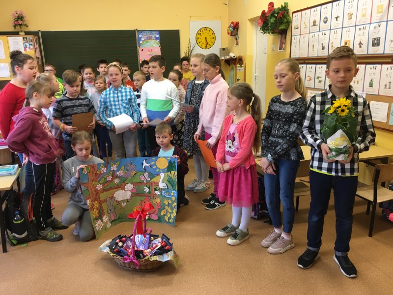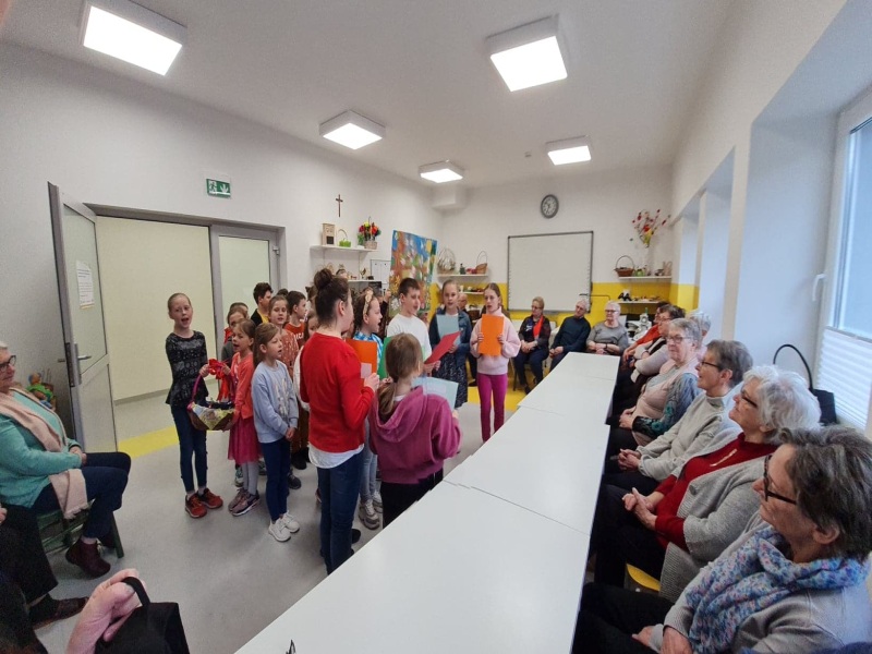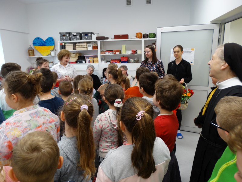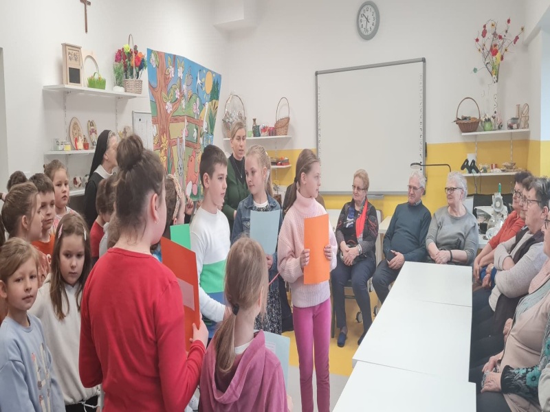 Dnia 26 kwietnia dzieci klas I-III pod przewodnictwem Siostry Agnieszki udały się do sąsiadującego z naszą szkołą Stowarzyszenia „Nasz Dom”. Celem odwiedzin było przede wszystkim spotkanie i uczynienie radości wszystkim podopiecznym placówki. Dzieci opowiedziały o Świętach Wielkanocnych, zwyczajach i nadziei z nimi związanej. Przedstawienie było spójne z czasem wiosennym, a więc tryskającym optymizmem, radością, ufnością, rodzeniem się do wiosennego życia. Uczniowie wraz z uczestnikami „Naszego Domu” zaśpiewali piosenki świąteczne oraz wiosenne. Miło było patrzeć, jak na twarzach , często strudzonych życiem, przeciwnościami losu, chorobami pojawiał się uśmiech. Dzieci przygotowały także niespodzianki, a Siostra wręczyła cudowny obraz Pana Jezusa, mający przypominać o najważniejszym aspekcie i celowości życia. Nasze Dzieci w Naszym Domu czuły się również zaopiekowane, nagrodzone upominkami, które będą dla nich przypomnieniem pobytu wśród sąsiadów z tego samego podwórka. Siostrze Agnieszce dziękujemy za inspiracje oraz pomysł na spotkanie. Jeszcze raz składamy najserdeczniejsze życzenia dla wszystkich z okazji okresu Wielkanocnego.