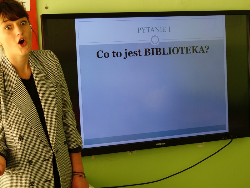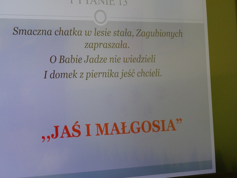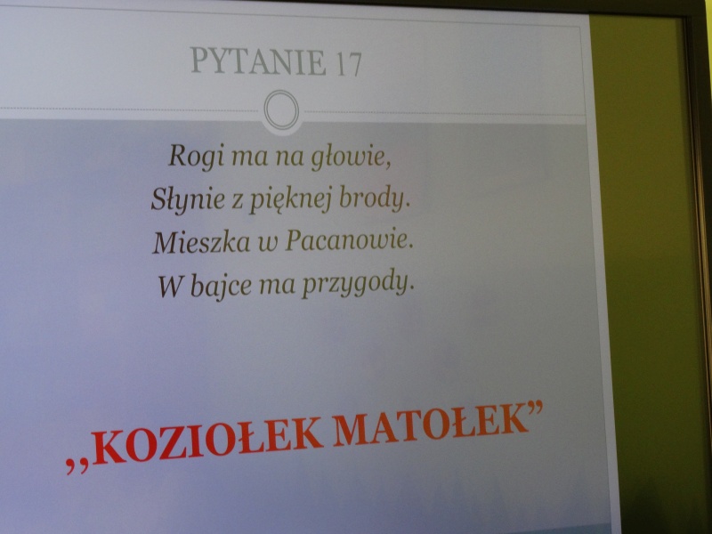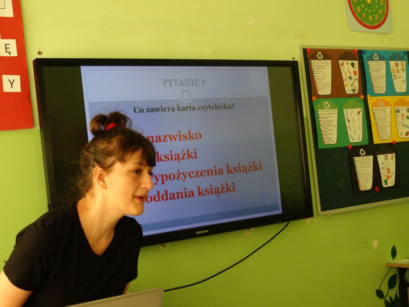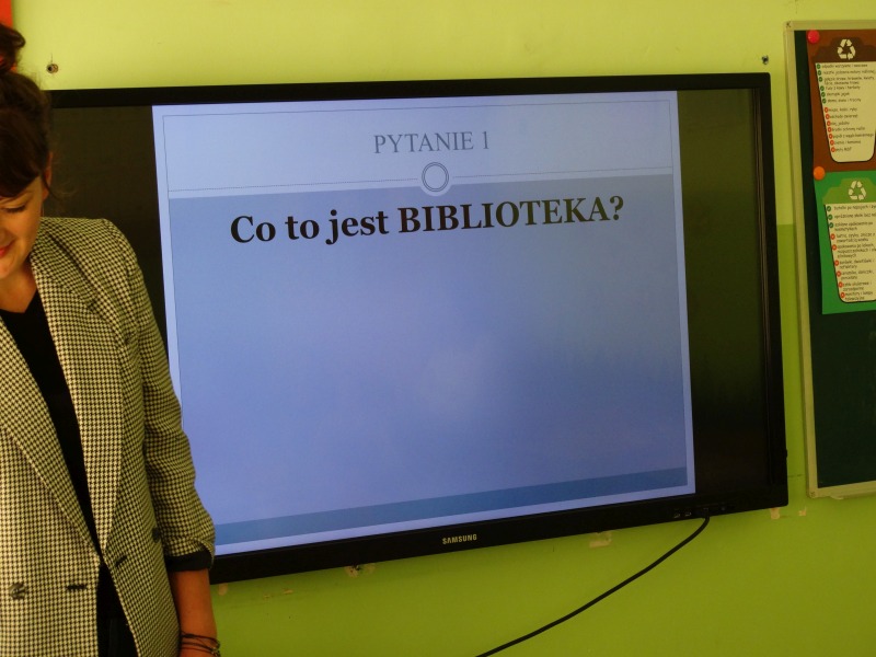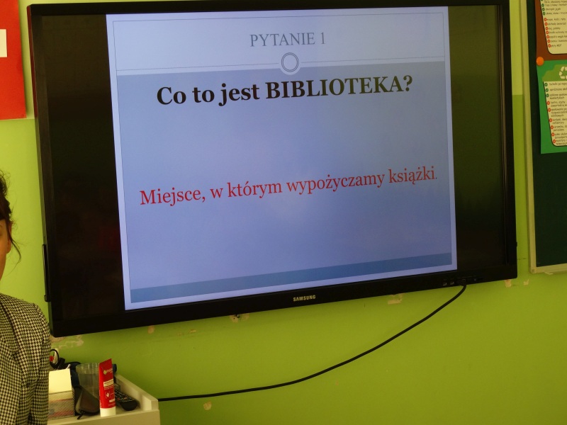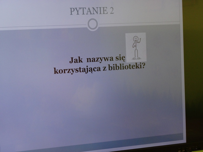Spotkanie rozpoczęło się od quizu wiedzy o bibliotece i książkach, wykonanego w postaci prezentacji multimedialnej. Pytania sporządzone były w formie zagadek tekstowych, graficznych, a także muzycznych.
