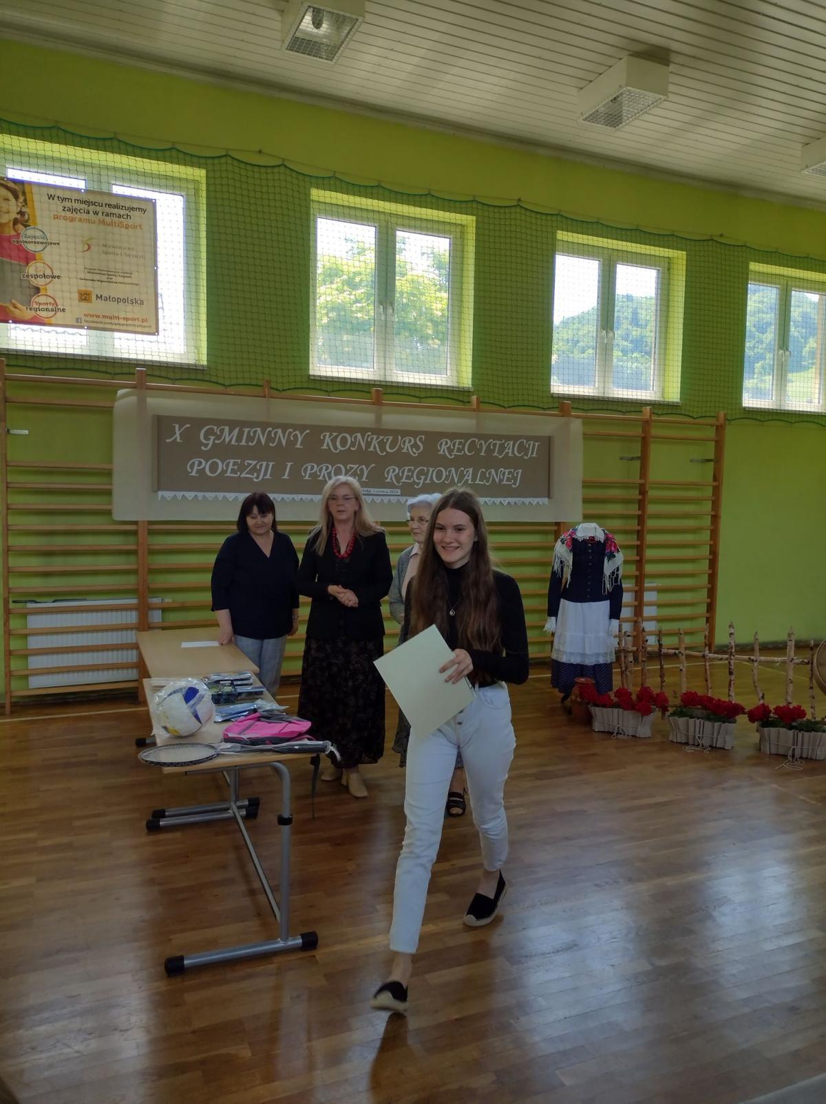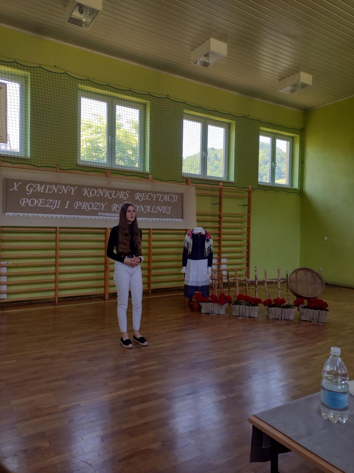 03 czerwca 2022r., dwie uczennice naszej szkoły – Olga Ściurka z kl. VI i Martyna Kożuch z kl. VIII – wzięły udział w X Gminnym Konkursie Recytatorskim Poezji i Prozy Regionalnej. Konkurs odbył się w Szkole Podstawowej w Głębokiem. Olga recytowała wiersz Krystyny Dulak Diaboł na jarmaku oraz fragment utworu Marii Kownackiej Rogaś z Doliny Roztoki, natomiast Martyna przedstawiła wiersz Wandy Łomnickiej-Dulak A jeśli w niebie i również fragment utworu Marii Kownackiej Rogaś z Doliny Roztoki.