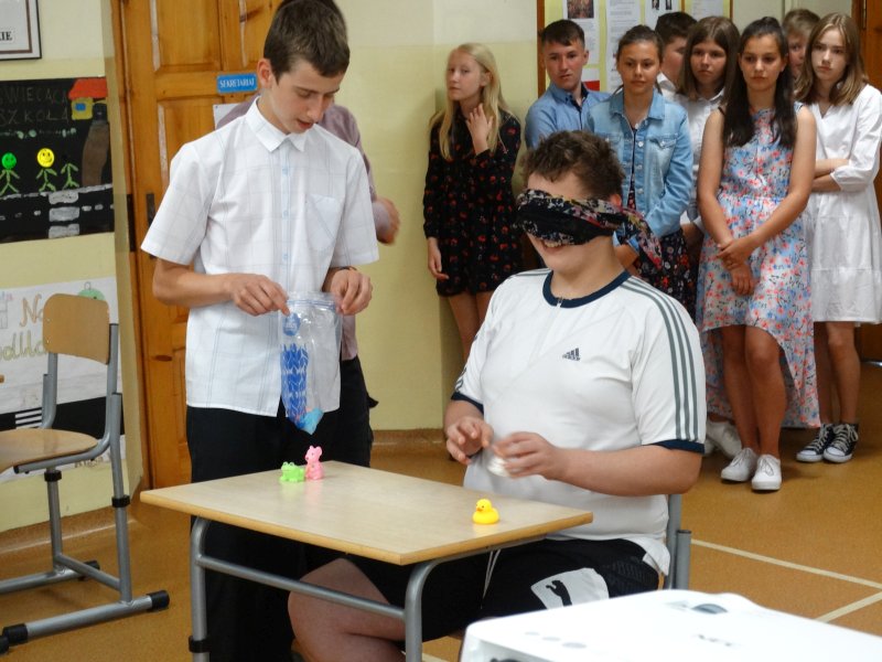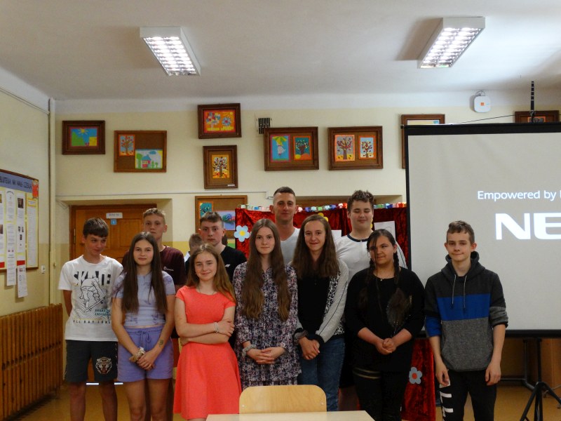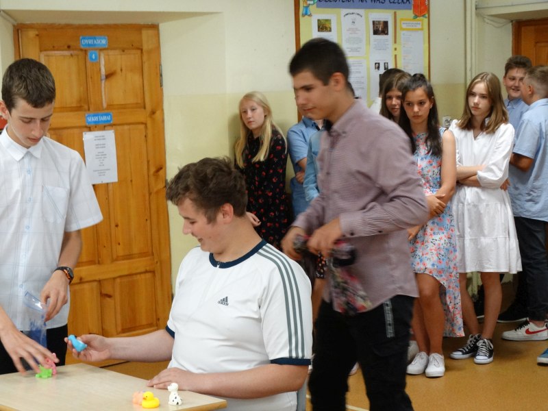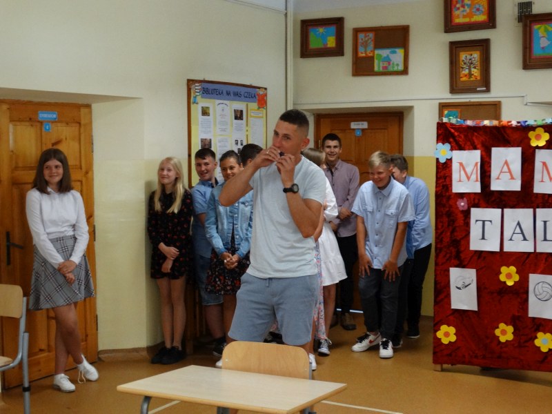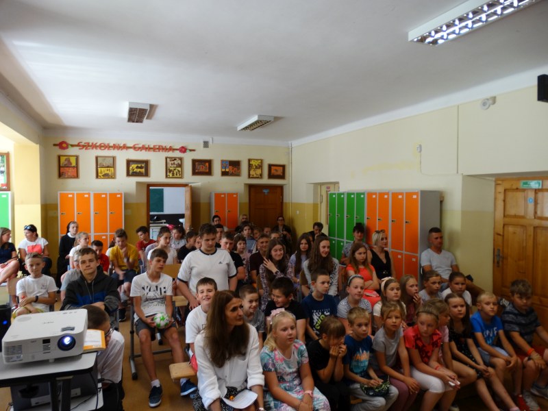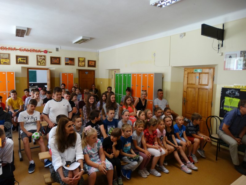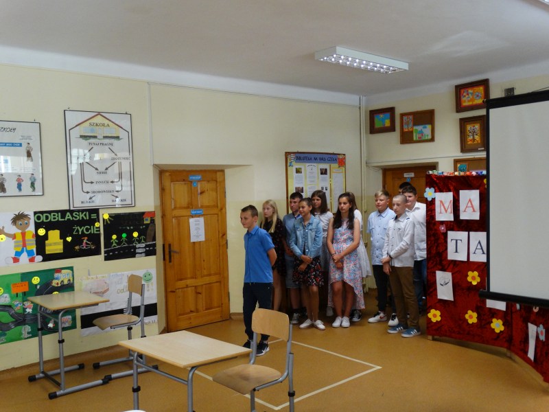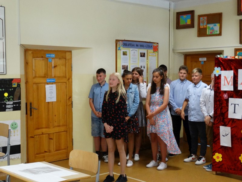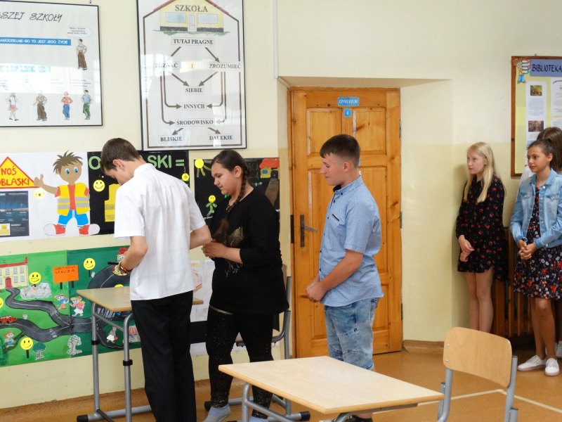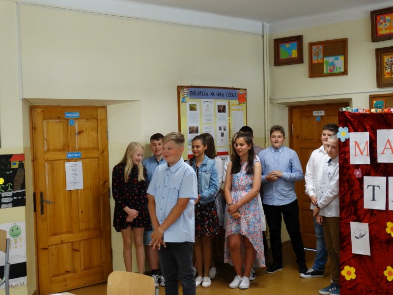 W tym dniu wychowawczyni klasy p.Agata Świeboda wraz z swoją klasą VII pożegnała naszych absolwentów klasy VIII. Jest u nas taka tradycja, że dzień wcześniej absolwenci szkoły są żegnani przez społeczność szkolną na wesoło i humorystycznie. Każdy z nich powiedział coś o sobie i były zadania dla nich do wykonania. Jednym słowem zostali przetestowani z swoich umiejętności i wiadomości. Było trochę emocji i radości ale sobie poradzili z tym dobrze. Na zakończenie spotkania wychowawca klasy 8 p.Filip Malik przedstawił prezentację historyczną o swojej klasie pokazując zdjęcia sprzed wielu lat i było możliwość wspomnień i wzruszeń szczególnie dla absolwentów. Otrzymali też od klasy 7 upominki w postaci kapeluszy ,,kowbojskich”.