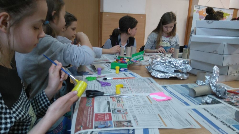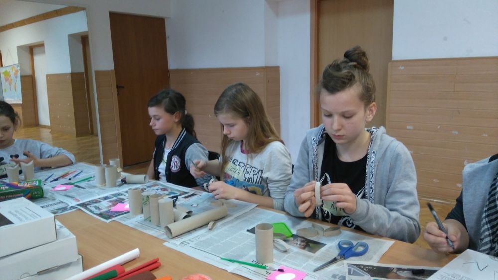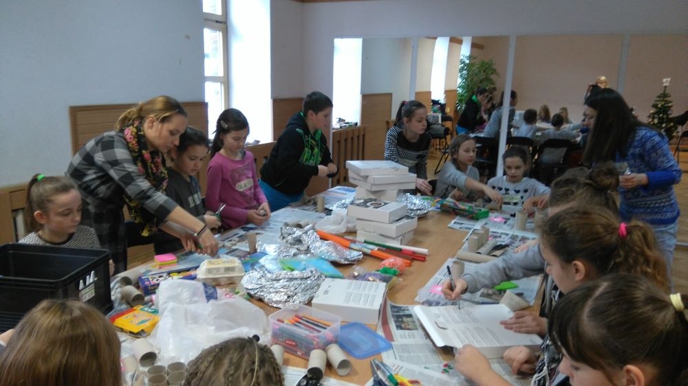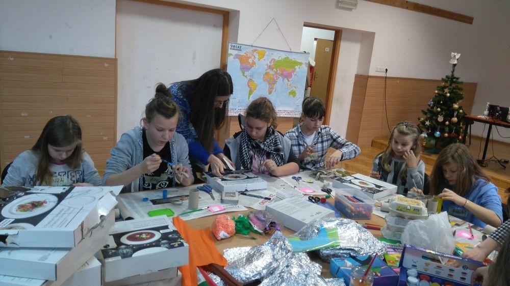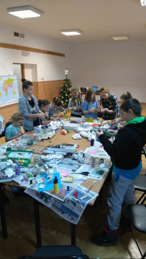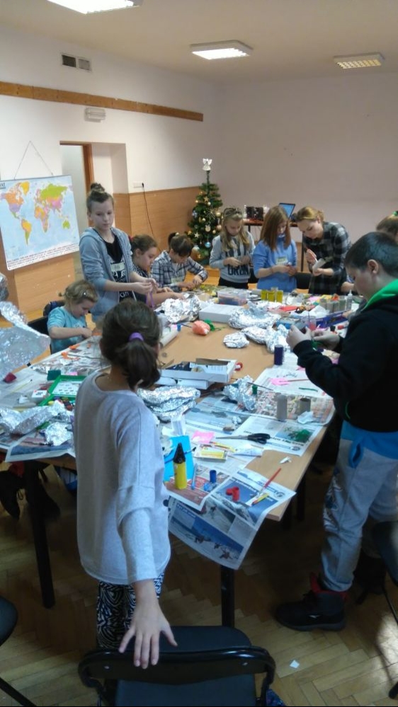 W jesienny jeszcze poranek, bo 18 grudnia uczniowie z naszej szkoły pojechali do Biblioteki Publicznej w Piwnicznej Zdroju na zajęcia warsztatowe. W ramach projektu Lokalnie - Globalnie – Aktywnie, czyli programu edukacji globalnej, uczestniczyli w zajęciach prowadzonych przez instruktorki z Fundacji Kultury Chrześcijańskiej „Znak” z Krakowa. Celem warsztatów było tłumaczenie przyczyn i konsekwencji problemów globalnych dotykających współczesnego świata, zrozumienia go jako złożonego i dynamicznie zmieniającego się systemu, kształtowanie umiejętności krytycznego myślenia, przełamywanie istniejących stereotypów i uprzedzeń i ukazywanie wpływu jednostki na globalne procesy i wpływu globalnych procesów na jednostkę. Finałowym punktem spotkania było samodzielnie wykonanie dekoracji świątecznych przez dzieci, które wykorzystywały tylko materiały pozornie bezużyteczne. Charakter zajęć był różnorodny od prezentacji multimedialnych, pogadanek, aż do wspólnej zabawy.