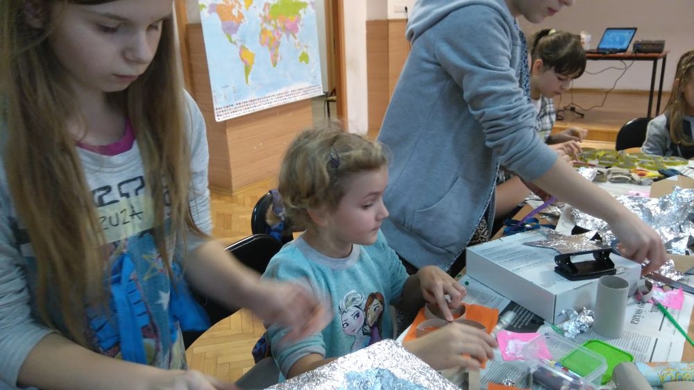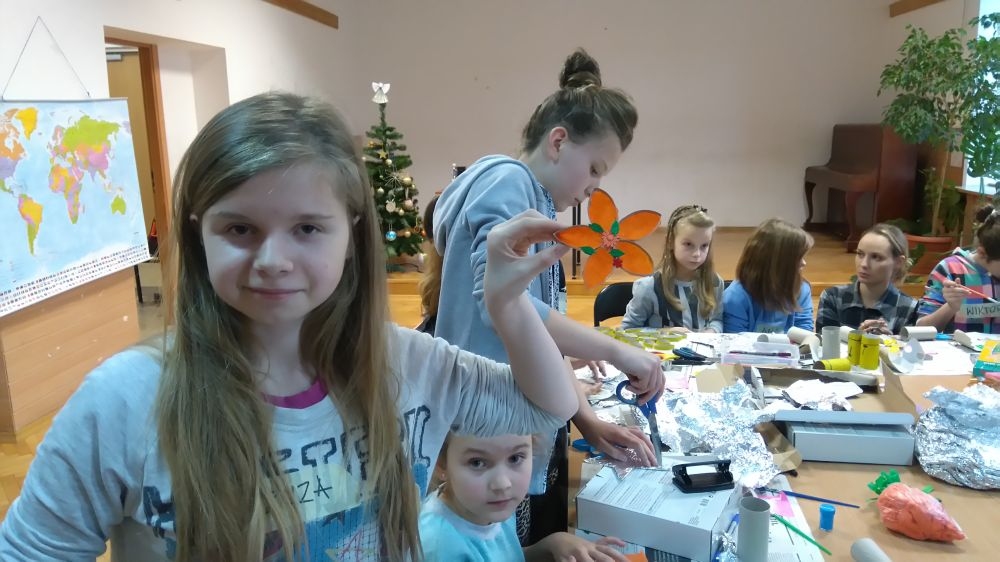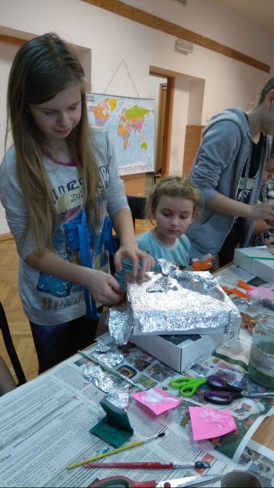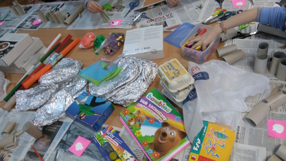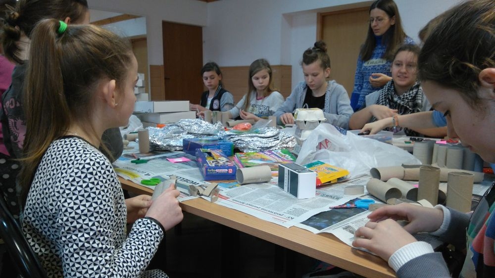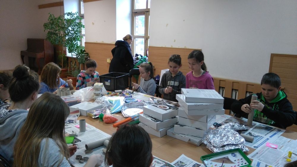 W jesienny jeszcze poranek, bo 18 grudnia uczniowie z naszej szkoły pojechali do Biblioteki Publicznej w Piwnicznej Zdroju na zajęcia warsztatowe. W ramach projektu Lokalnie - Globalnie – Aktywnie, czyli programu edukacji globalnej, uczestniczyli w zajęciach prowadzonych przez instruktorki z Fundacji Kultury Chrześcijańskiej „Znak” z Krakowa. Celem warsztatów było tłumaczenie przyczyn i konsekwencji problemów globalnych dotykających współczesnego świata, zrozumienia go jako złożonego i dynamicznie zmieniającego się systemu, kształtowanie umiejętności krytycznego myślenia, przełamywanie istniejących stereotypów i uprzedzeń i ukazywanie wpływu jednostki na globalne procesy i wpływu globalnych procesów na jednostkę. Finałowym punktem spotkania było samodzielnie wykonanie dekoracji świątecznych przez dzieci, które wykorzystywały tylko materiały pozornie bezużyteczne. Charakter zajęć był różnorodny od prezentacji multimedialnych, pogadanek, aż do wspólnej zabawy.