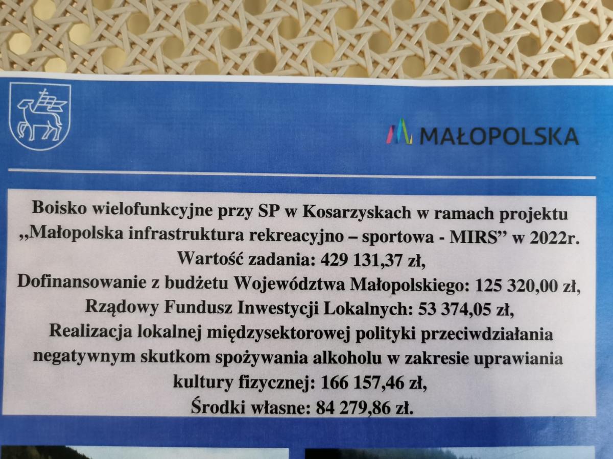 Bardzo dziękuję w imieniu społeczności szkoły i środowiska Kosarzysk za realizację tej inwestycji (boisko wielofunkcyjne) władzom samorządowym MiG Piwniczna Zdrój : Burmistrzowi i Przewodniczącemu Rady Miejskiej oraz wszystkim tym, którzy wspierali tę inwestycję.