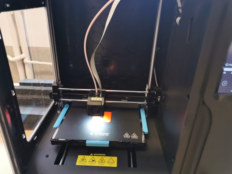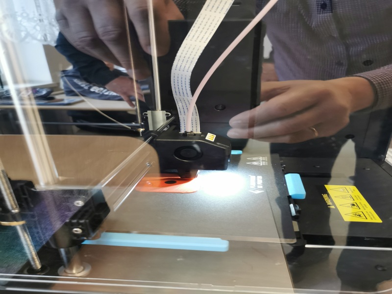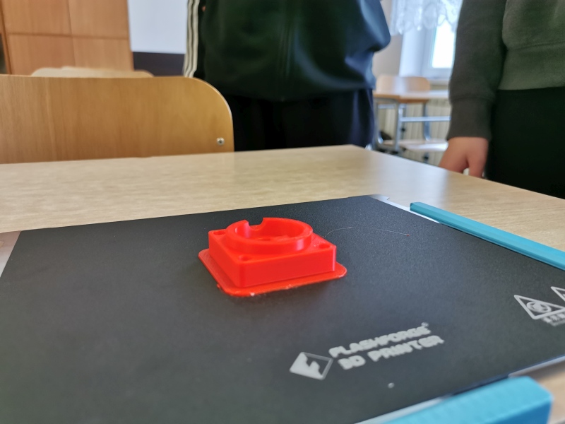 Na zajęciach z fizyki w klasie VIII nauczyciel p.Józef Kulig wykorzystał drukarkę 3 D do wydrukowania elementów części z tworzywa sztucznego, które były w zasobach tej drukarki (pen drive). Wykorzystano do tego filament koloru czerwonego. Druk trwał 1 godz. i 18 minut.