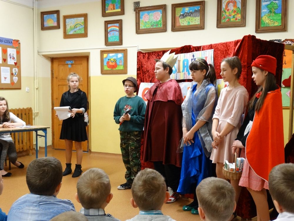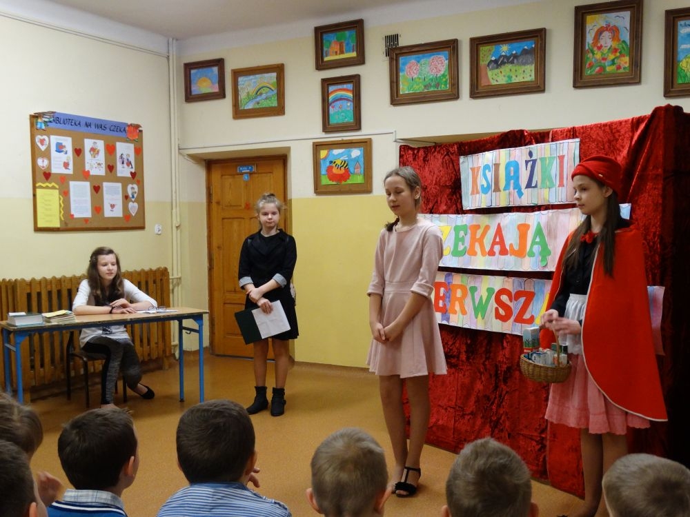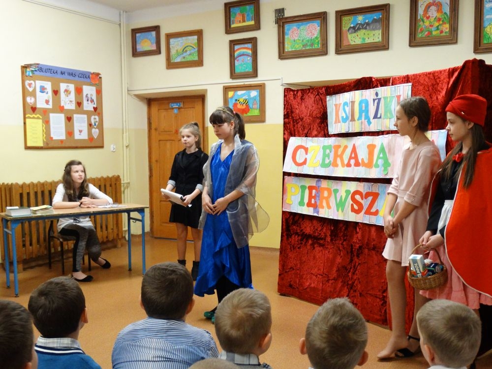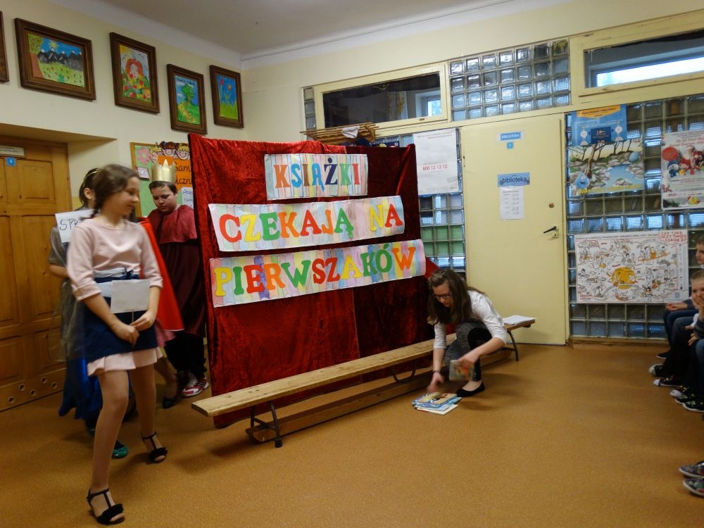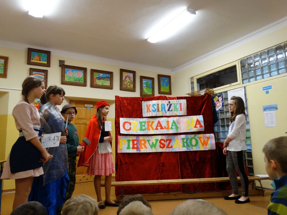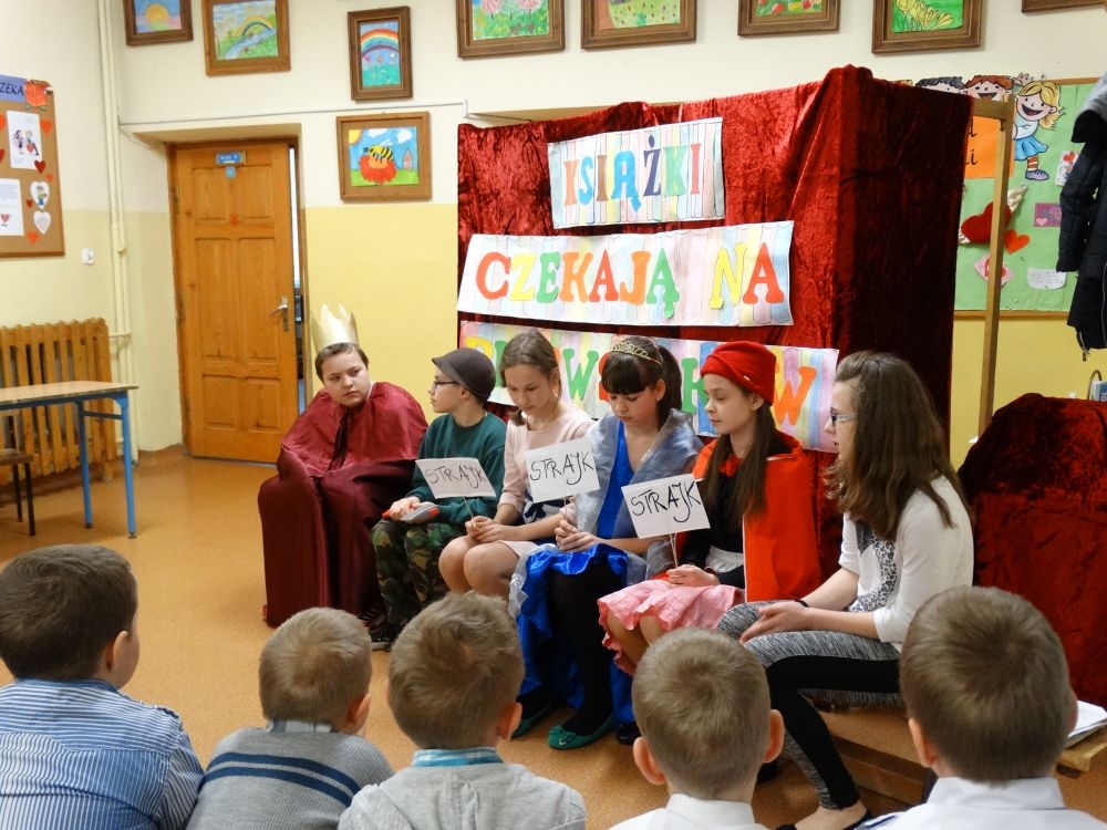 Dnia 19 lutego 2016 r. odbyło się uroczyste pasowanie uczniów klasy I na czytelników biblioteki szkolnej. Tradycja takich spotkań w naszej szkole sięga już wielu lat i jest pielęgnowana bardzo pieczołowicie. „Władzę nad książkami” przejęli uczniowie najstarszej klasy, którzy pod kierunkiem nauczyciela bibliotekarza, przygotowali ciekawą inscenizację pt. „Strajk książek”. Artyści zabrali naszych pierwszaków w bajkową podróż. Na scenie zobaczyliśmy między innymi Czerwonego Kapturka, Królową Śniegu oraz Kopciuszka. Uczniowie doskonale poradzili sobie z zadaniami, a pomogły im w tym cudowne stroje. Zaciekawienie i błysk w oczach, uśmiech na twarzy to świetny dowód na to, że przedstawienie bardzo przypadło do gustu młodym odbiorcom. Nasi szkolni aktorzy nagrodzeni zostali gromkimi brawami. W dalszej części uroczystości pierwszaki, odpowiadały na pytania i zagadki dotyczące biblioteki. Pani Maria Piekarczyk przeczytała, także wszystkim regulamin biblioteki przypominając o ważnych zasadach, których należy przestrzegać. Najważniejszą częścią tego dnia, był jednak sam moment pasowania na czytelnika szkolnej biblioteki, którego uroczyście dokonał dyrektor Marian Dobosz. Następnie dzieci otrzymały pamiątkowy dyplom dla klasy, piękne – ręcznie wykonane zakładki do książek oraz identyfikatory czytelnika. Cała uroczystość przebiegała w miłej atmosferze. Każdy pierwszoklasista zapewne ochoczo wybierze się do biblioteki szkolnej, gdzie czeka na niego ciekawy świat bajek, baśni i przygód. Naszym młodym czytelnikom życzymy wielu niezapomnianych chwil w magicznym świecie iluzji literackiej.