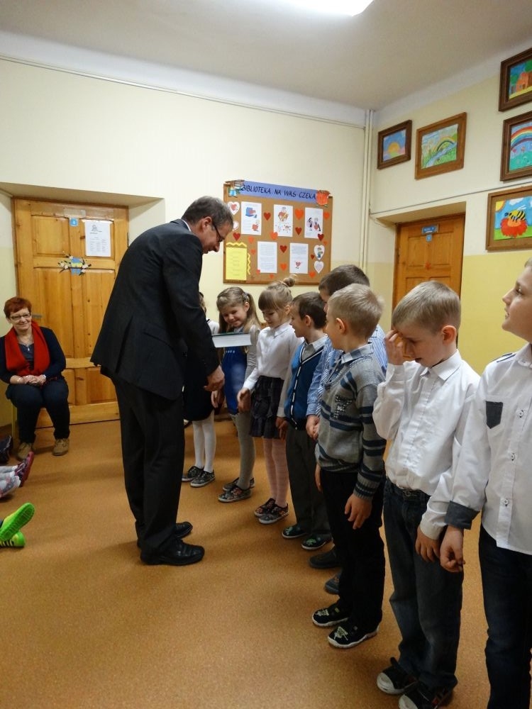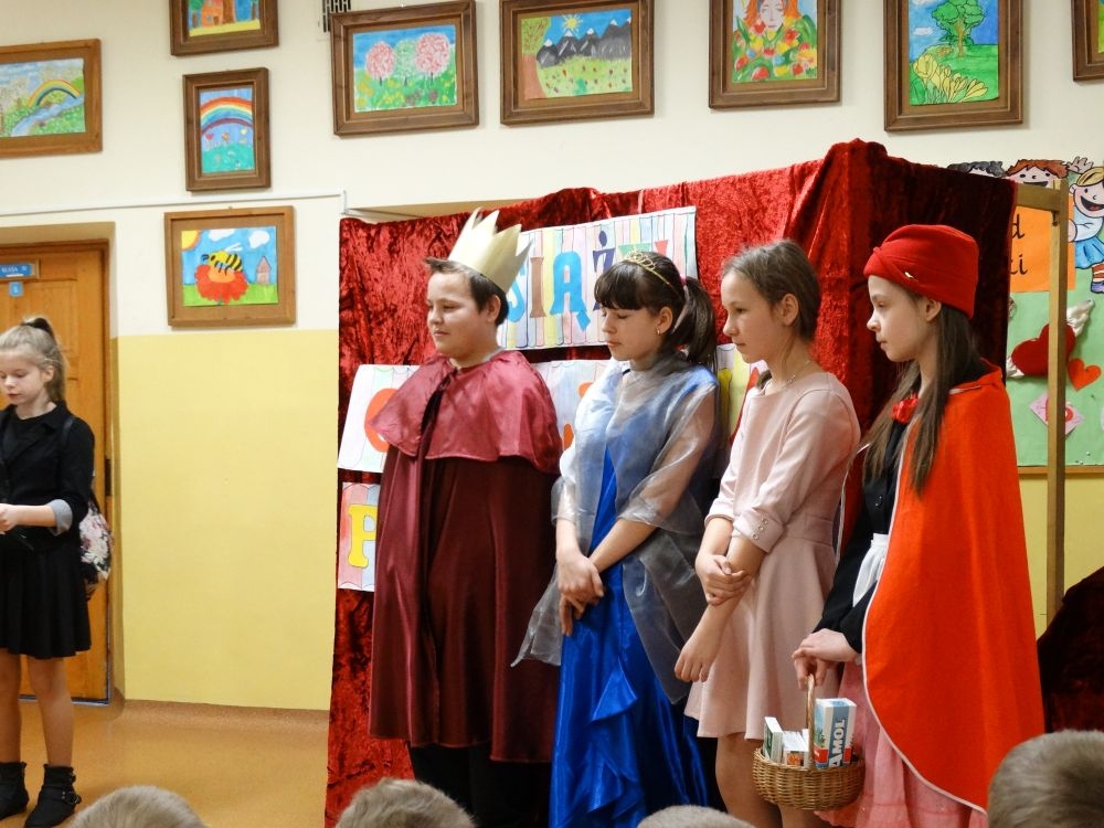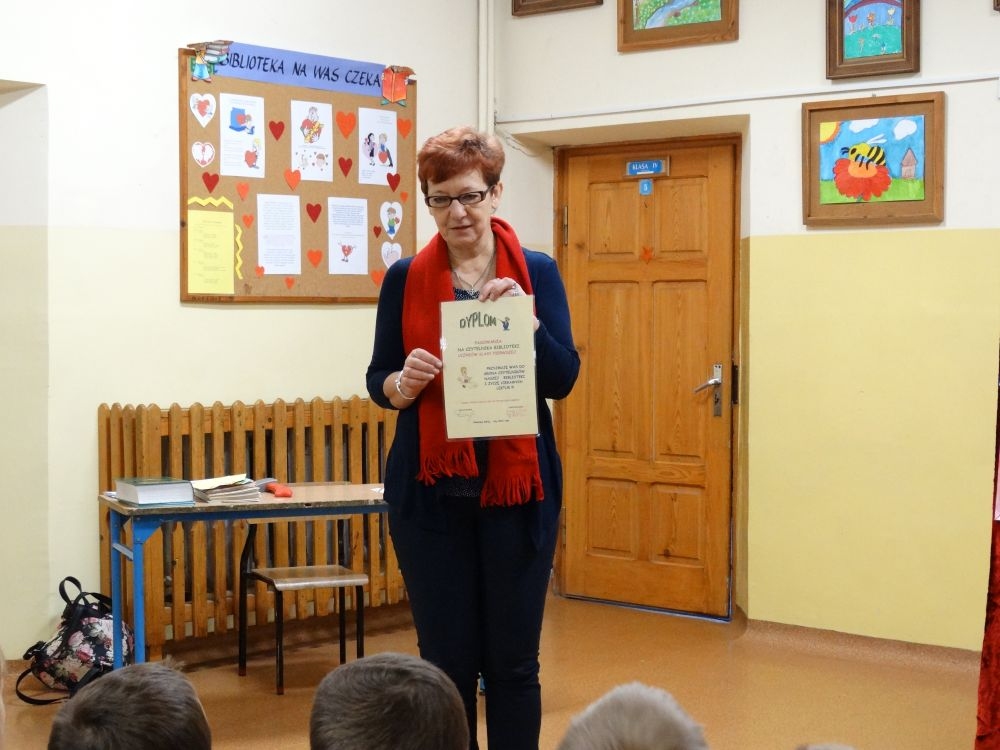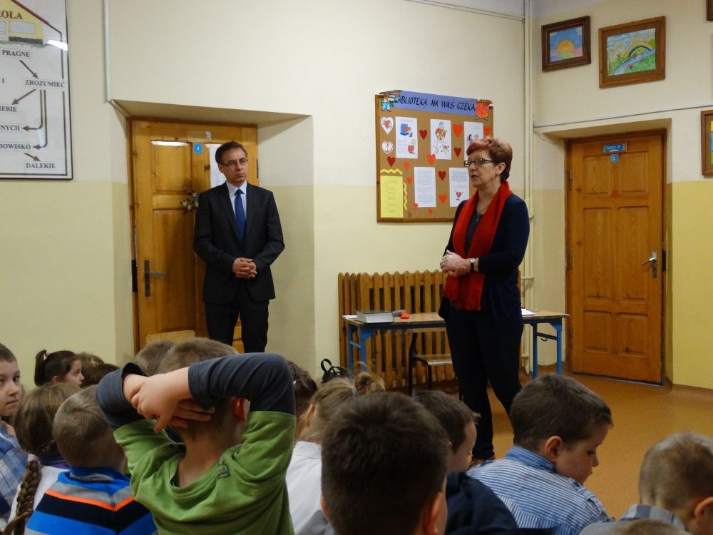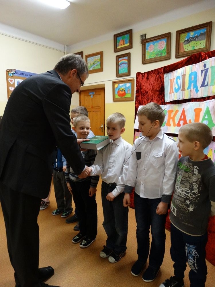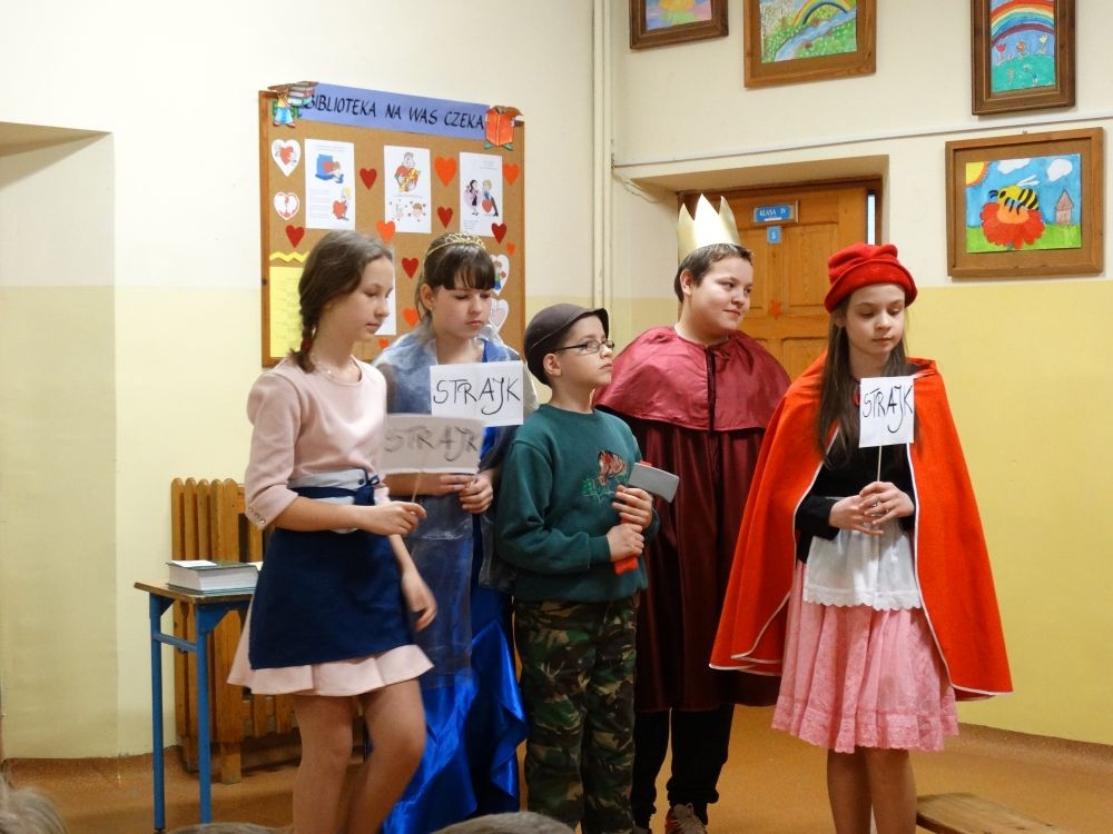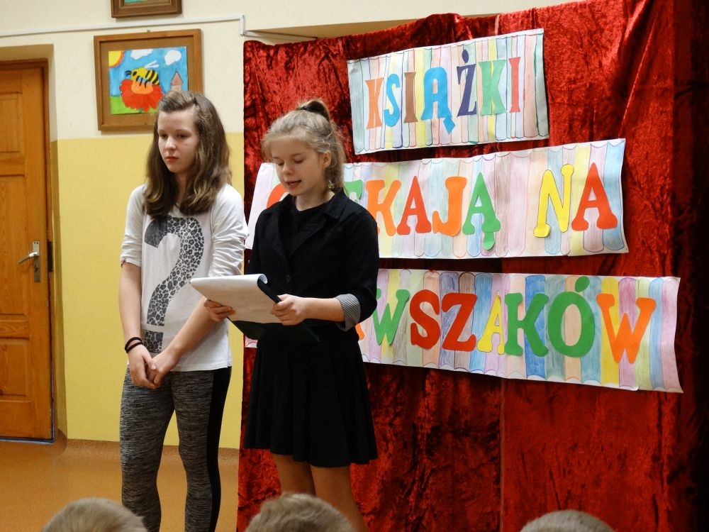 Dnia 19 lutego 2016 r. odbyło się uroczyste pasowanie uczniów klasy I na czytelników biblioteki szkolnej. Tradycja takich spotkań w naszej szkole sięga już wielu lat i jest pielęgnowana bardzo pieczołowicie. „Władzę nad książkami” przejęli uczniowie najstarszej klasy, którzy pod kierunkiem nauczyciela bibliotekarza, przygotowali ciekawą inscenizację pt. „Strajk książek”. Artyści zabrali naszych pierwszaków w bajkową podróż. Na scenie zobaczyliśmy między innymi Czerwonego Kapturka, Królową Śniegu oraz Kopciuszka. Uczniowie doskonale poradzili sobie z zadaniami, a pomogły im w tym cudowne stroje. Zaciekawienie i błysk w oczach, uśmiech na twarzy to świetny dowód na to, że przedstawienie bardzo przypadło do gustu młodym odbiorcom. Nasi szkolni aktorzy nagrodzeni zostali gromkimi brawami. W dalszej części uroczystości pierwszaki, odpowiadały na pytania i zagadki dotyczące biblioteki. Pani Maria Piekarczyk przeczytała, także wszystkim regulamin biblioteki przypominając o ważnych zasadach, których należy przestrzegać. Najważniejszą częścią tego dnia, był jednak sam moment pasowania na czytelnika szkolnej biblioteki, którego uroczyście dokonał dyrektor Marian Dobosz. Następnie dzieci otrzymały pamiątkowy dyplom dla klasy, piękne – ręcznie wykonane zakładki do książek oraz identyfikatory czytelnika. Cała uroczystość przebiegała w miłej atmosferze. Każdy pierwszoklasista zapewne ochoczo wybierze się do biblioteki szkolnej, gdzie czeka na niego ciekawy świat bajek, baśni i przygód. Naszym młodym czytelnikom życzymy wielu niezapomnianych chwil w magicznym świecie iluzji literackiej.