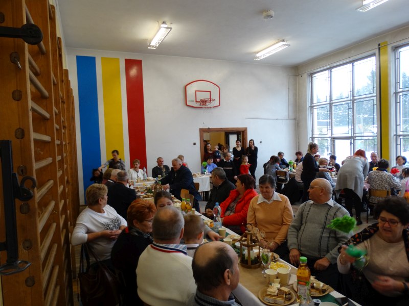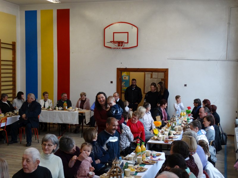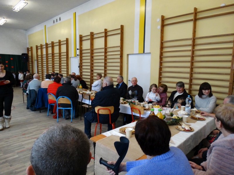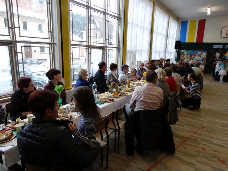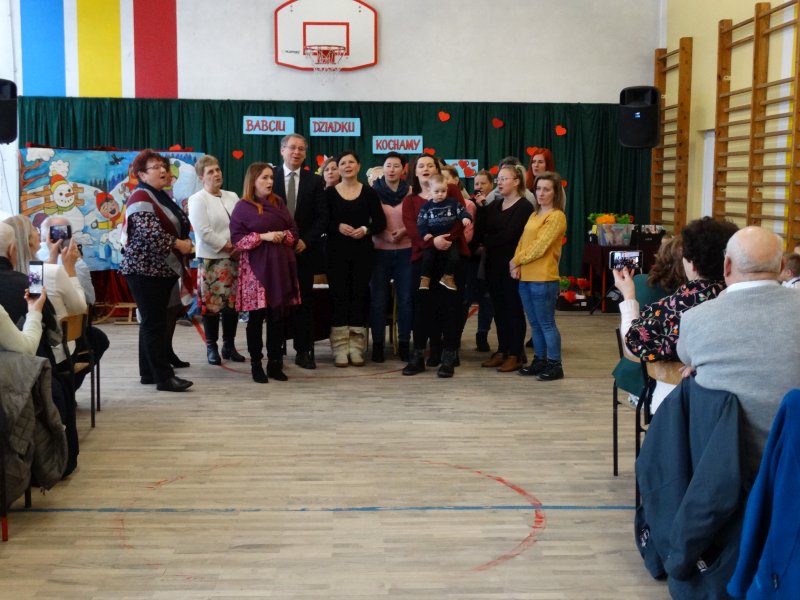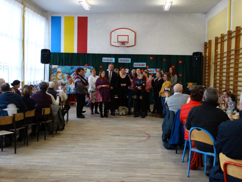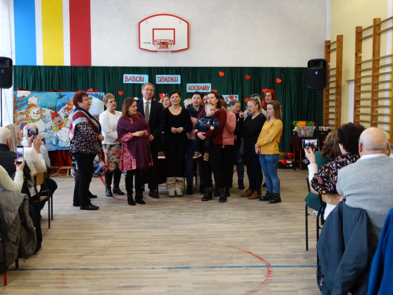 Podobnie jak w dniu poprzednim powitałem wszystkich zebranych i nawiązałem do tego co mówiłem.Wielu zaproszonych gości czyli Babcie i Dziadkowie się powtórzyli po raz drugi bo mają wnuki także w dwóch grupach przedszkolnych.
