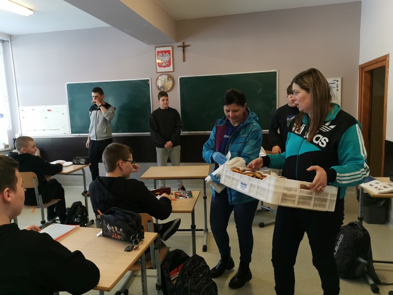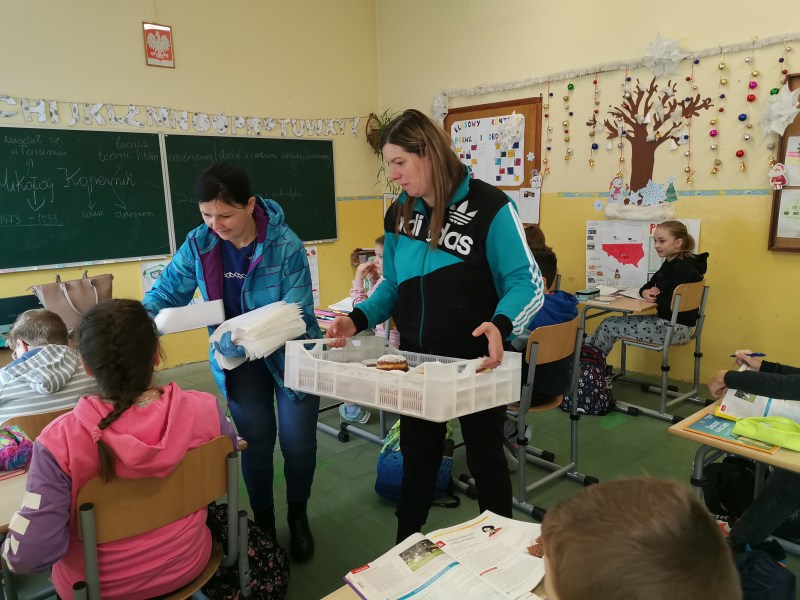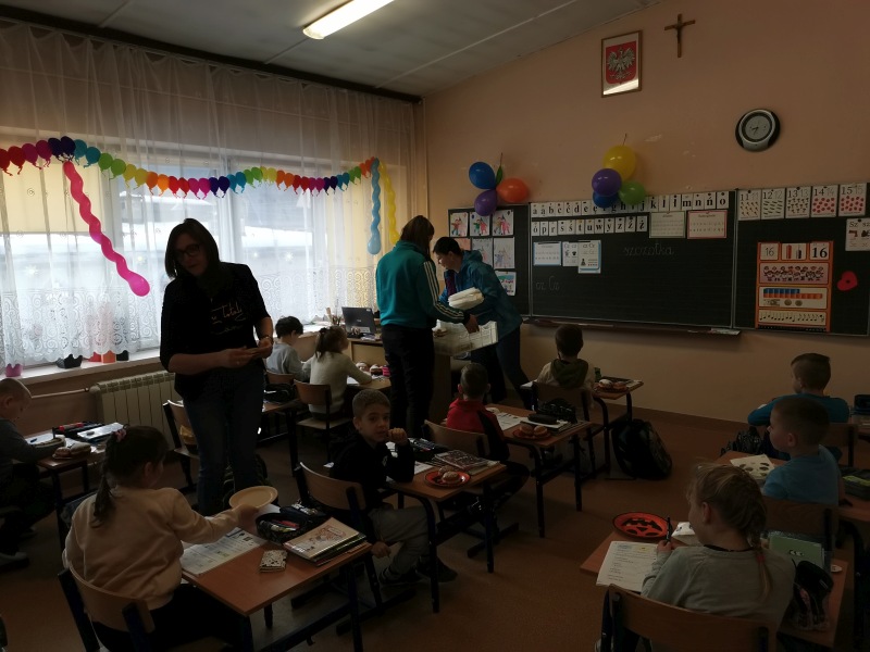 W tym dniu do szkoły zawitała Rada Rodziców (Panie: Agnieszka Buczek, Edyta Żywczak, Grażyna Pawlik) i zrobiła nam niespodziankę w postaci pysznych, słodkich pączków. Najmłodsze dzieci, uczniowie oraz nauczyciele wszyscy otrzymali symbolicznego pączka na znak tradycji. Dziękujemy !!!