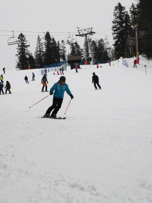 W tym dniu realizowaliśmy projekt stacji narciarskiej Wierchomla. Wyjechaliśmy z uczniami klas starszych w licznej grupie (25 uczniów) razem z opiekunami dyr.szk. p.Marianem Doboszem i nauczycielem wych.fiz.p.Filipem Malikiem. Mieliśmy możliwość doskonalenia umiejętności jazdy na nartach przez 3 godziny.