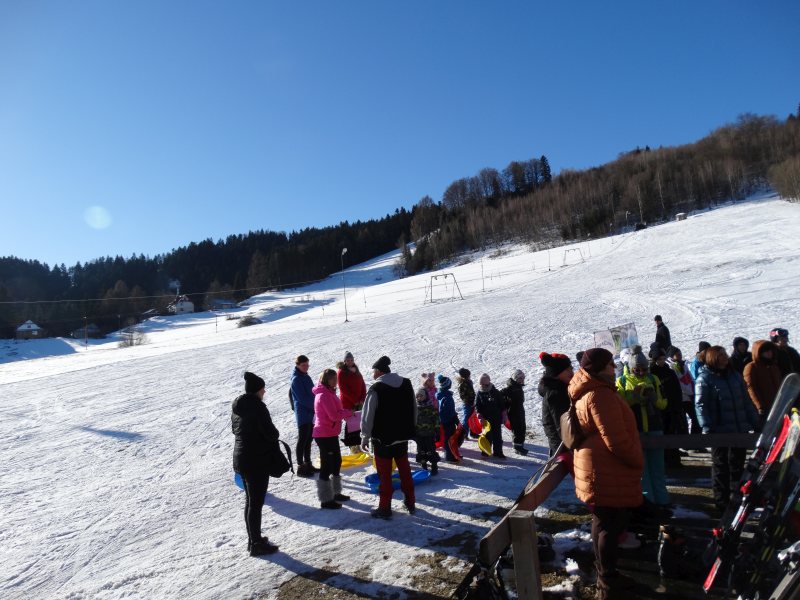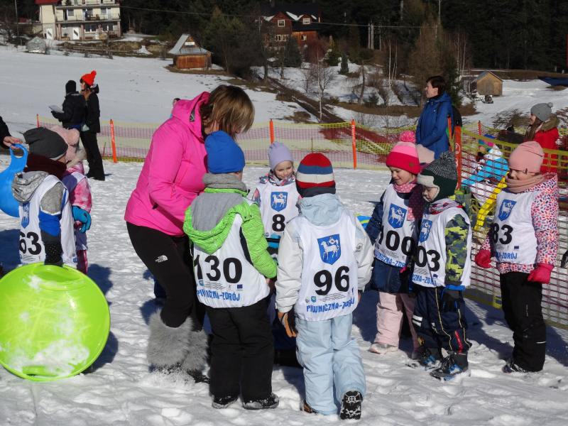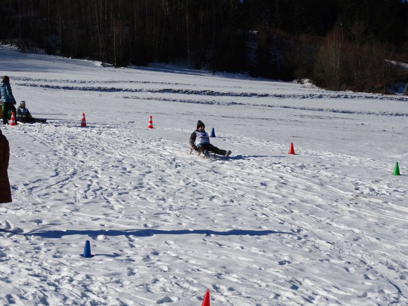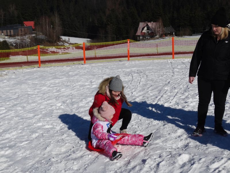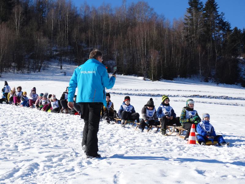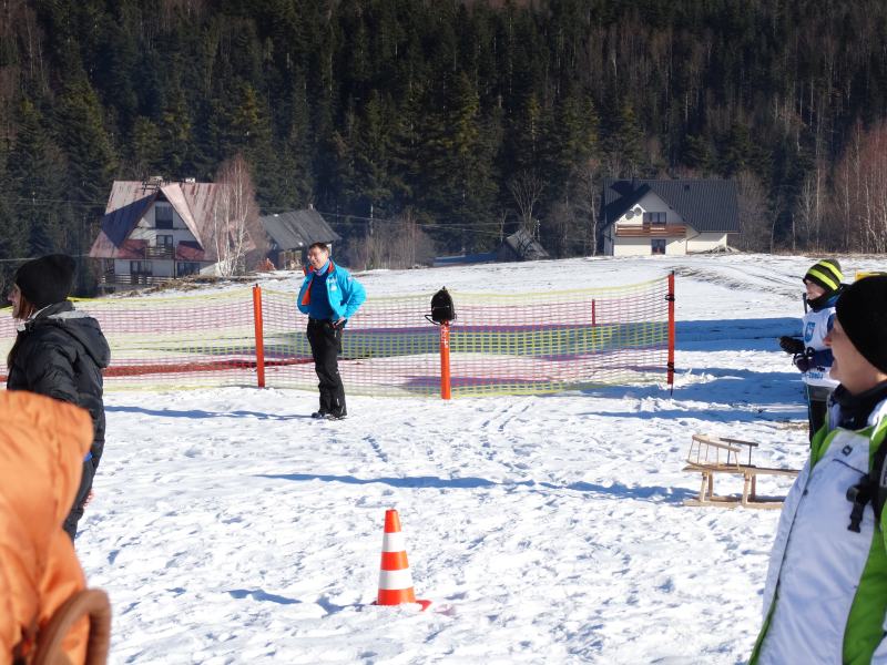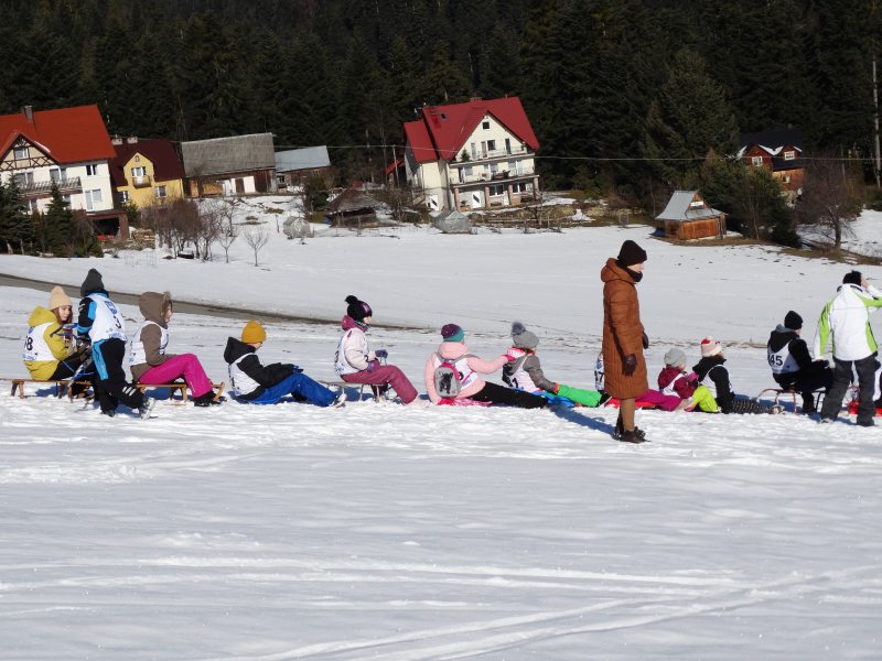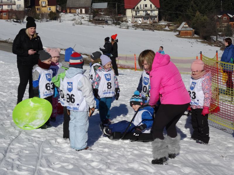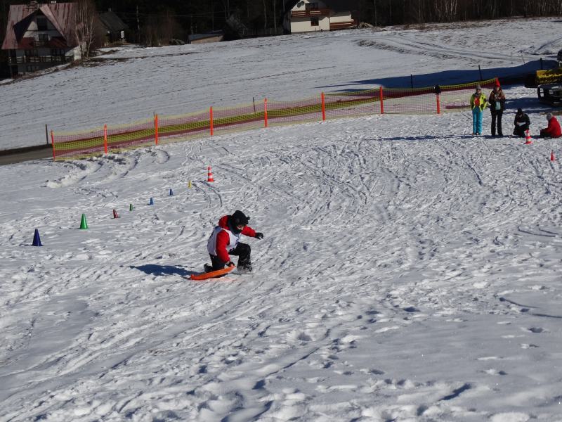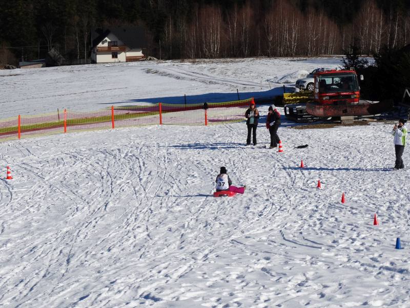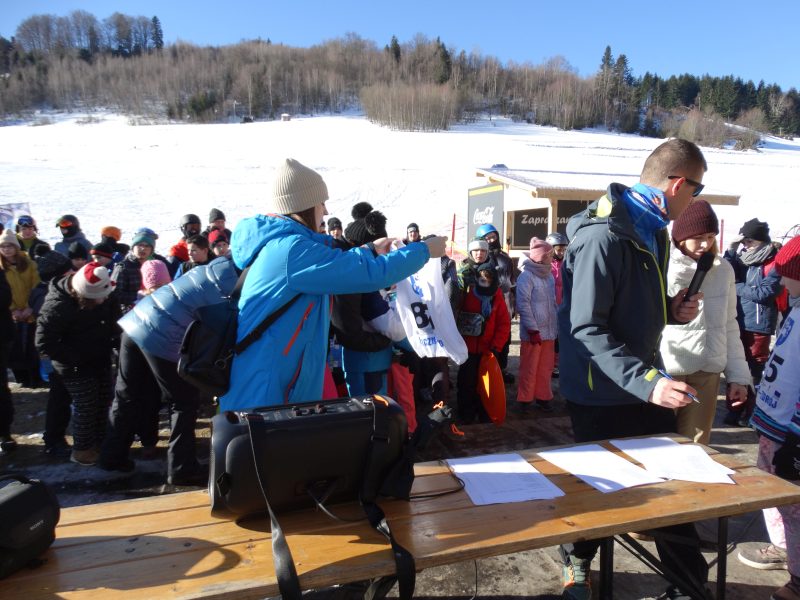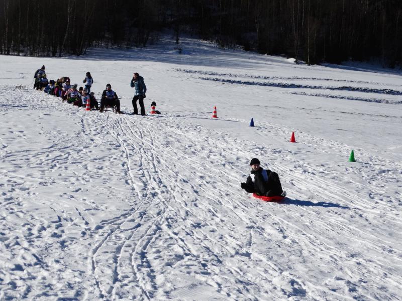 Zjazd na „byle czym” odbywał się na wyznaczonej trasie gdzie dzieci z naszej szkoły nie biorący udziały w slalomie gigancie mogły spędzić czas w świetnej atmosferze i również rywalizować na śniegu w dobrej zabawie.