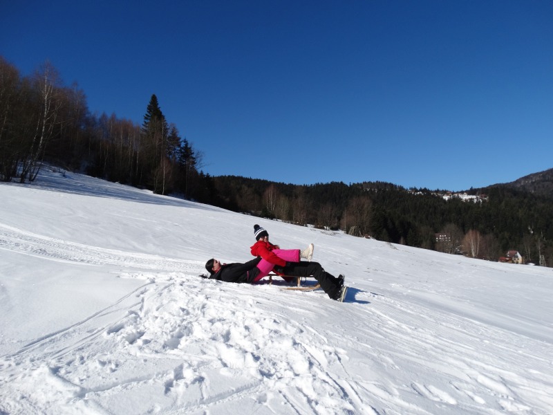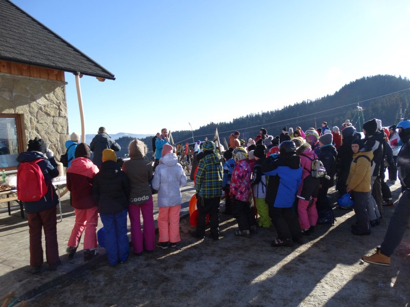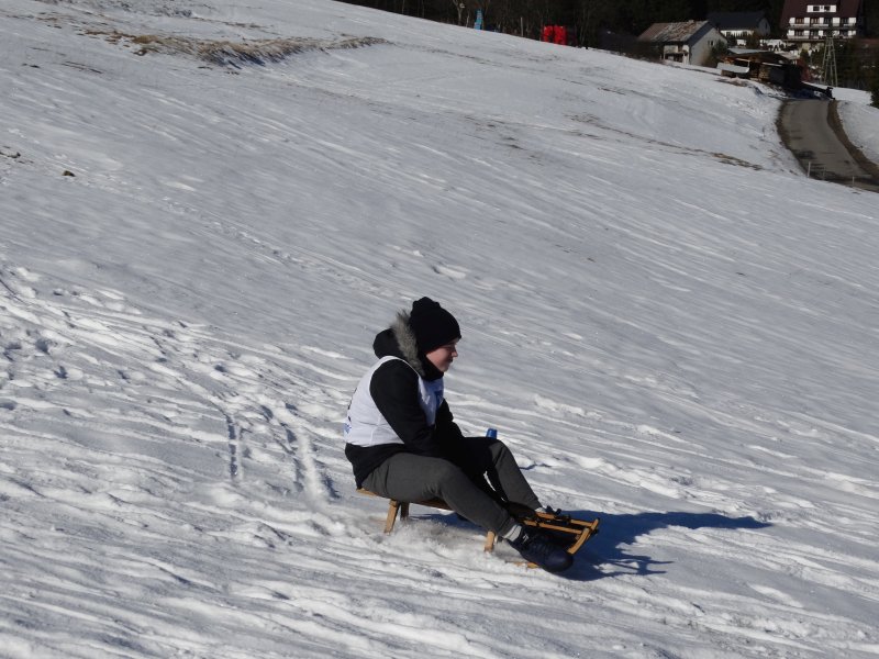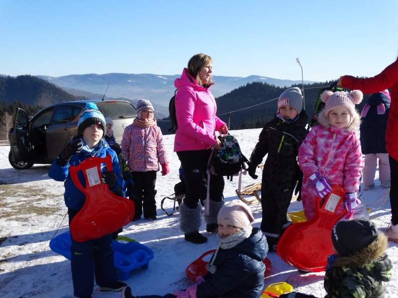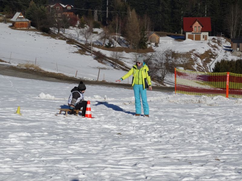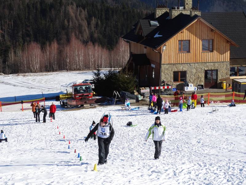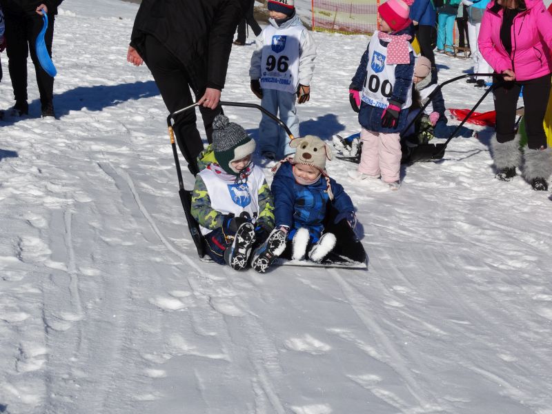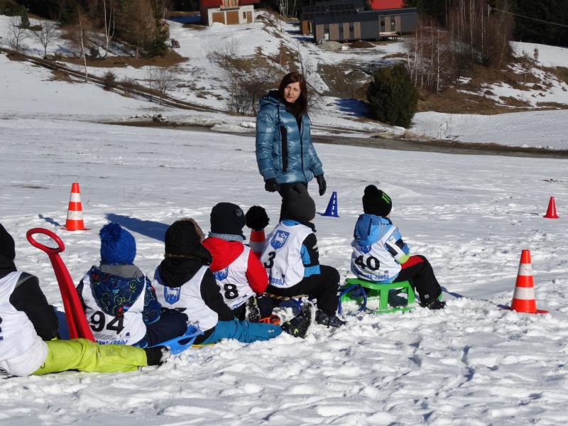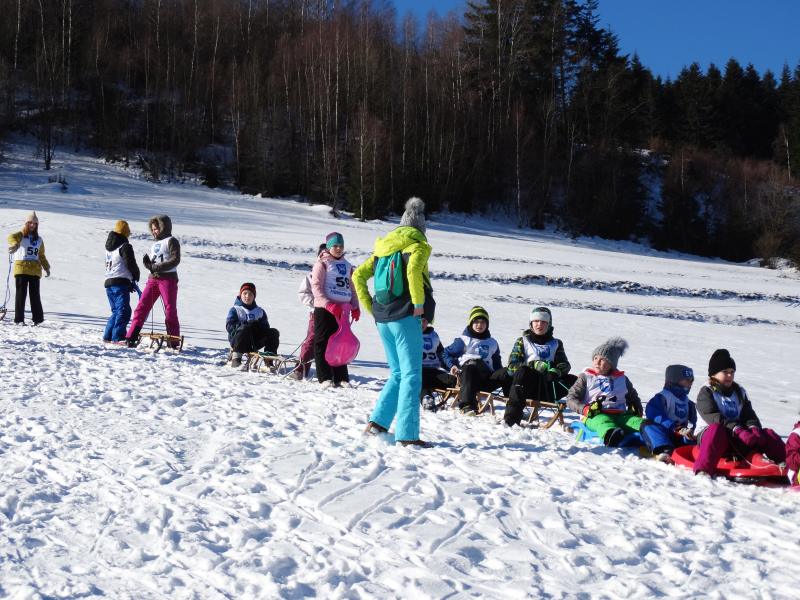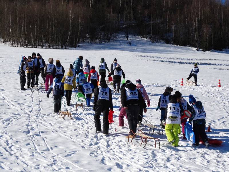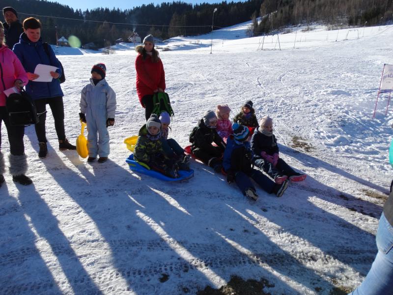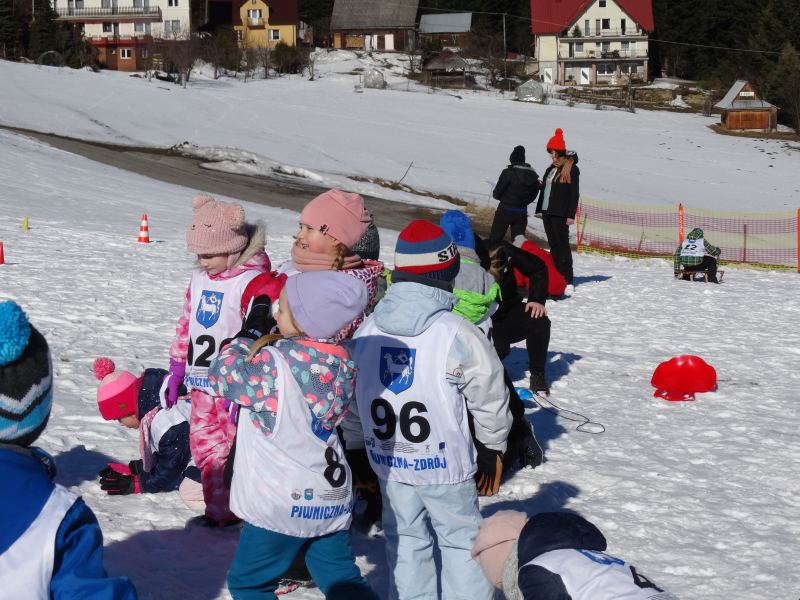 Zjazd na „byle czym” odbywał się na wyznaczonej trasie gdzie dzieci z naszej szkoły nie biorący udziały w slalomie gigancie mogły spędzić czas w świetnej atmosferze i również rywalizować na śniegu w dobrej zabawie.
