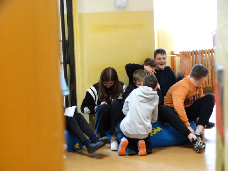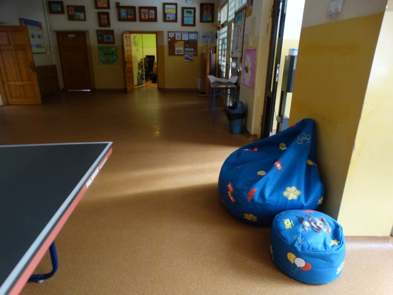 Zakupione zostały pufy dla uczniów klas starszych przebywających w głównym budynku szkoły. Zdarzało się często, że w czasie przerwy lekcyjnej siedzieli na posadzce z wykładziny najczęściej w jednym miejscu. W trosce o ich zdrowie i wygodę zostały im podarowane na I Dzień Wiosny przez Dyrektora Szkoły Mariana Dobosza, który zakupił je z własnych srodków finansowych.