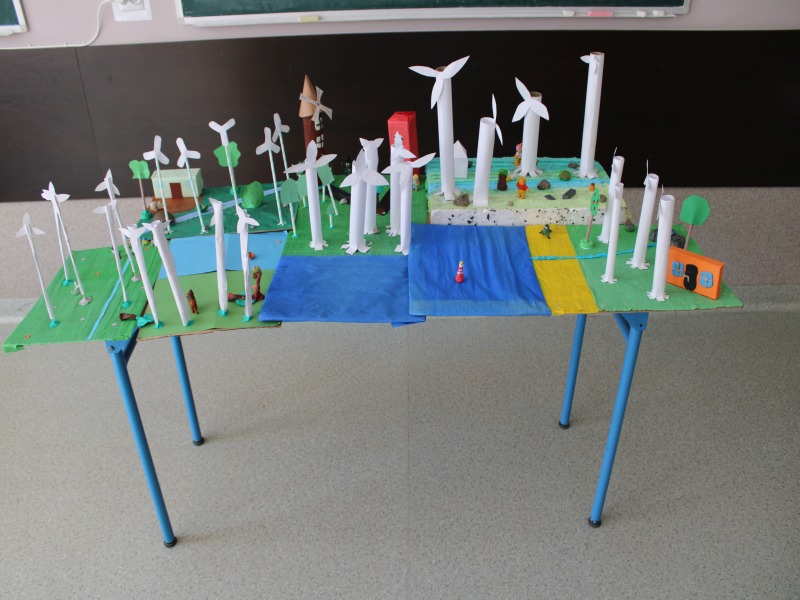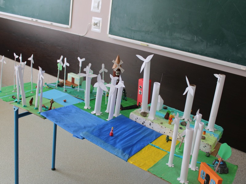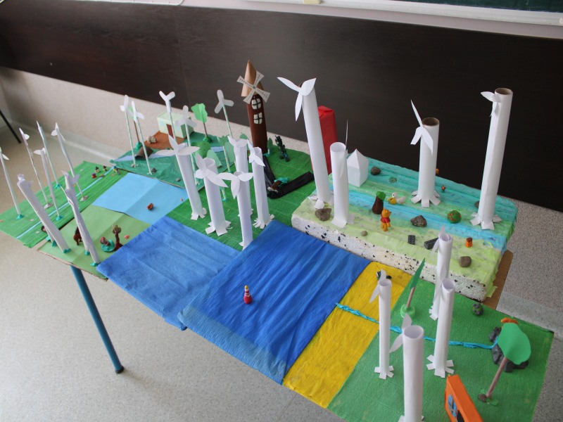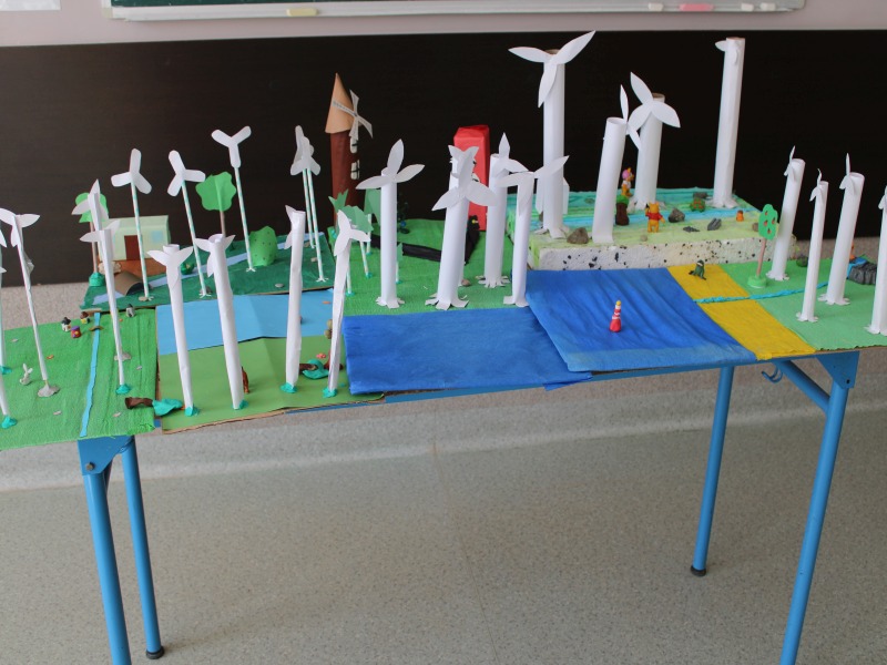 W dzisiejszych czasach coraz więcej mówi się o alternatywnych/odnawialnych źródłach energii. Tematy te podejmowane są również na lekcjach geografii zarówno w klasie VI, jak i VII. Po zrealizowaniu z uczniami klasy 6 tematu pt. ,,Energetyka w Europie” przyszedł czas na wykorzystanie teorii w praktyce. Stąd też, na zajęciach kształtujących kreatywność z geografii, uczniowie klasy 6 wykonali makiety FARM WIATROWYCH – jako jednego ze źródeł energii odnawialnej. Wykonane prace charakteryzują się niesamowitą kreatywnością oraz dokładnością. Uczniowie bardzo sumiennie podeszli do realizowanego projektu. Efekty pracy można zobaczyć na wystawie zorganizowanej w korytarzu głównym szkoły.