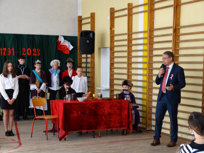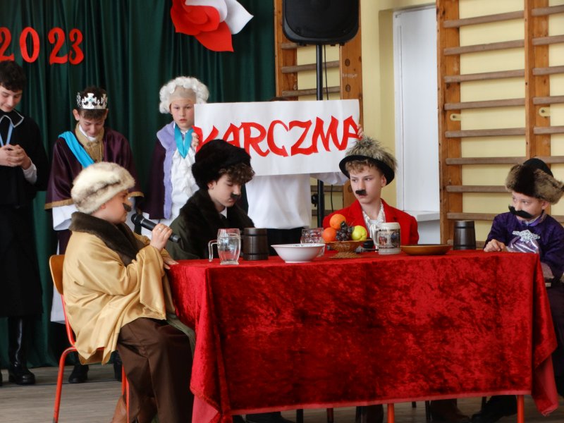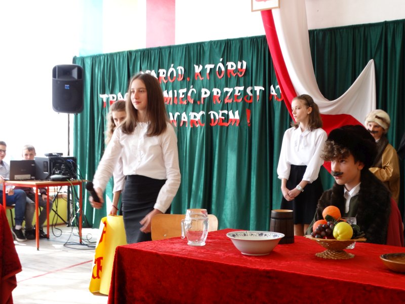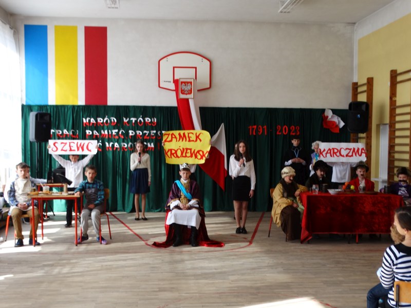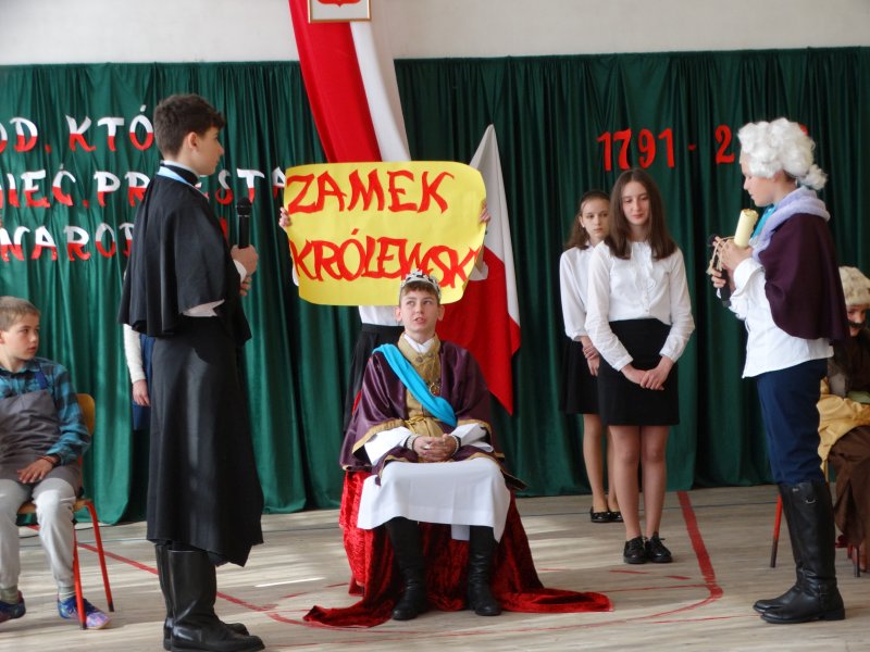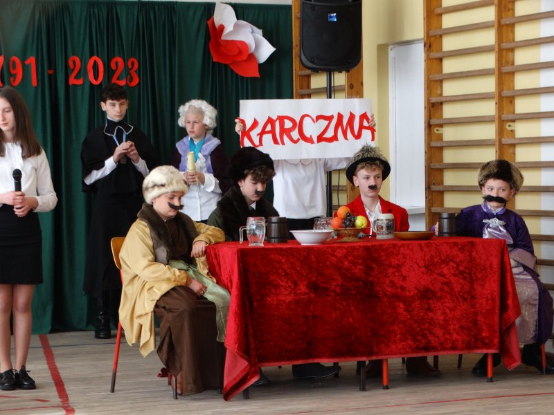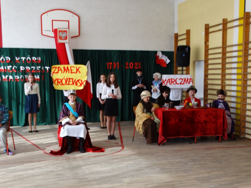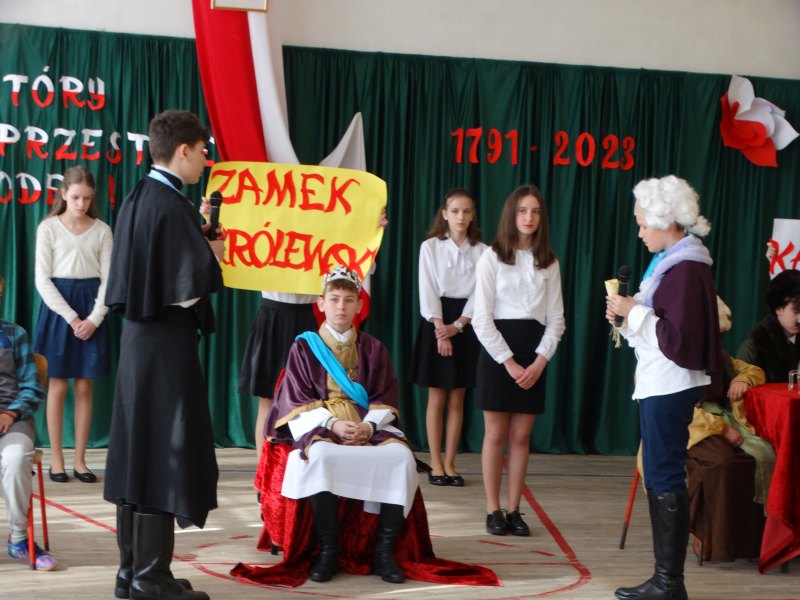 Jak co roku, uczniowie naszej szkoły uroczystą akademią uczcili kolejną, tym razem już 232 rocznicę uchwalenia Konstytucji 3 Maja.