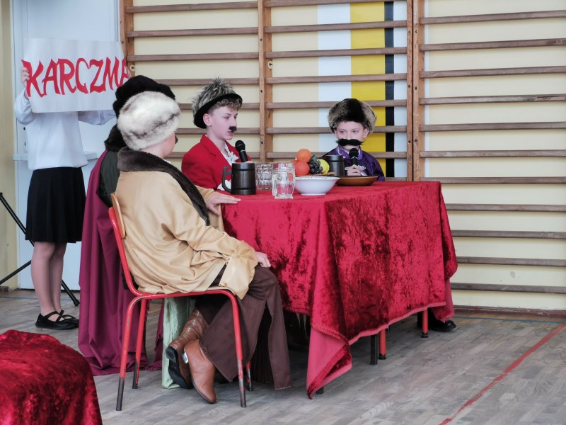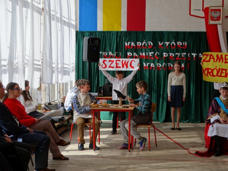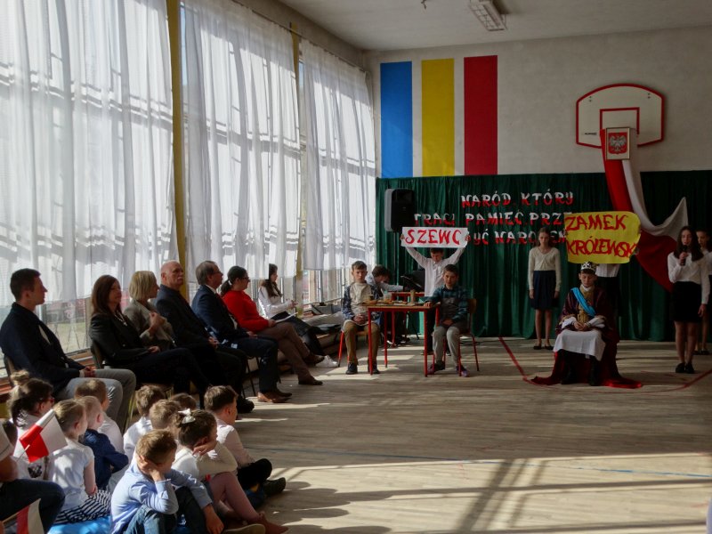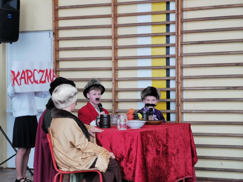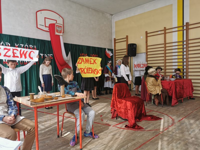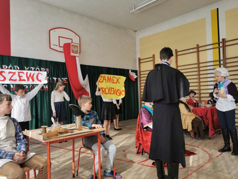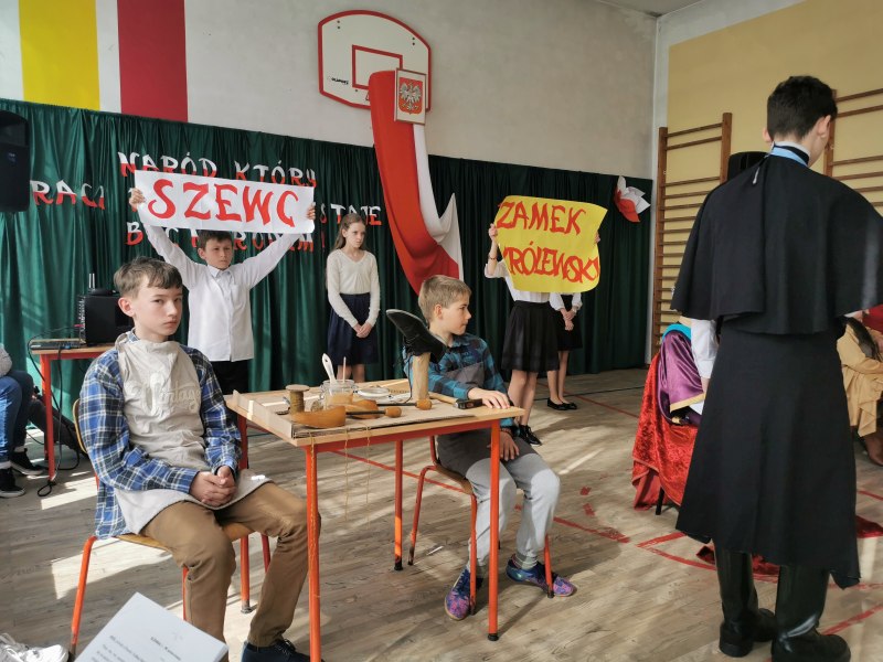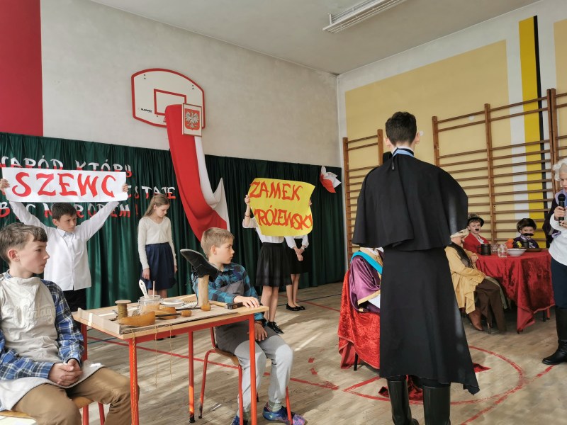 Scenariusz, scenografię opracowała oraz nad całością czuwała p. Bożena Lis. Aktorami byli uczniowie z klas IV-VII. Scenografię wykonały uczennice klasy VII: Anna Rychtarczyk, Olga Ściurka, Lena Sikorska. Oprawą muzyczną zajął się uczeń klasy VIII – Maciej Maślanka. Wszyscy ci uczniowie zasłużyli na gromkie brawa i takimi też zostali uhonorowani.