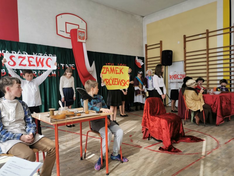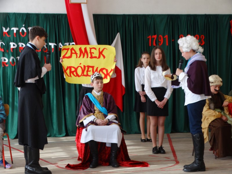 Oglądając przedstawienie, widzowie mogli dowiedzieć się, jak doszło do uchwalenia tego tak ważnego dokumentu, kto go przygotował i jakie były na niego reakcje samego władcy, czyli Stanisława Augusta Poniatowskiego, jego zaufanych sojuszników – wielkich umysłów epoki: Hugo Kołłątaja, Stanisława Kostki Potockiego, a także szlachty oraz mieszczan. Na spektakl składały się trzy scenki: u szewca, na zamku królewskim, w karczmie. Całość występów była połączona komentarzami narratorów i muzyką. Atrakcyjności akademii dodały wspaniałe stroje aktorów, żywcem wzięte z tamtych czasów.