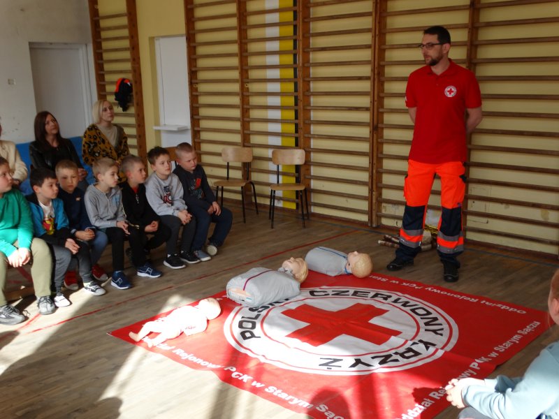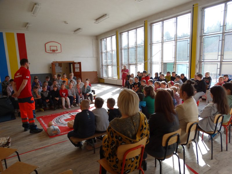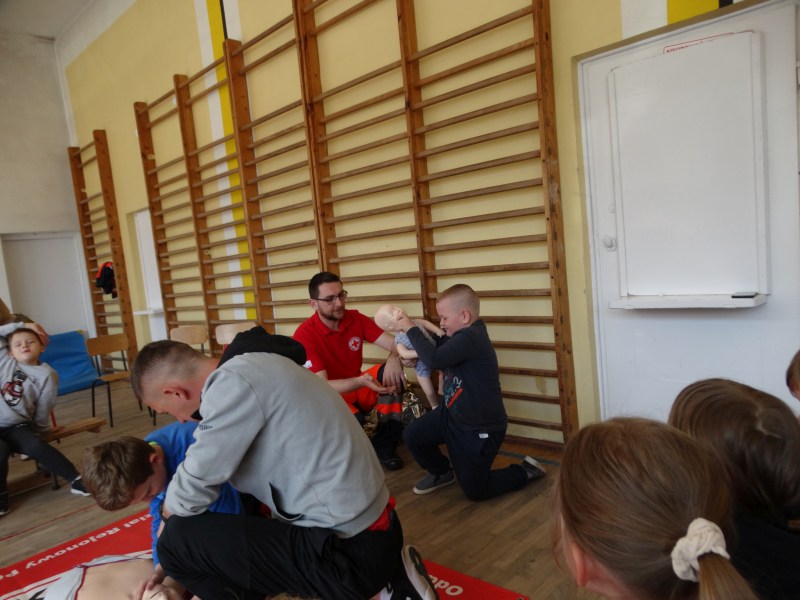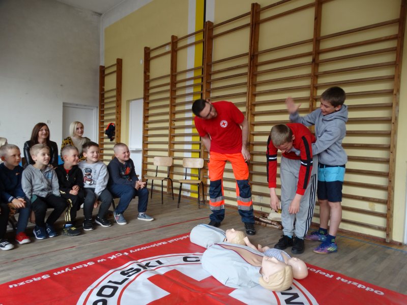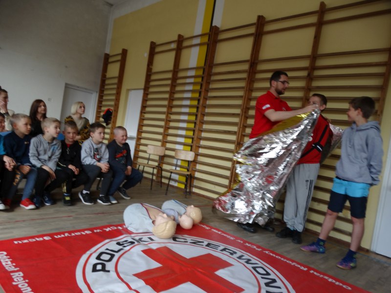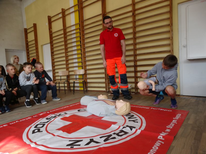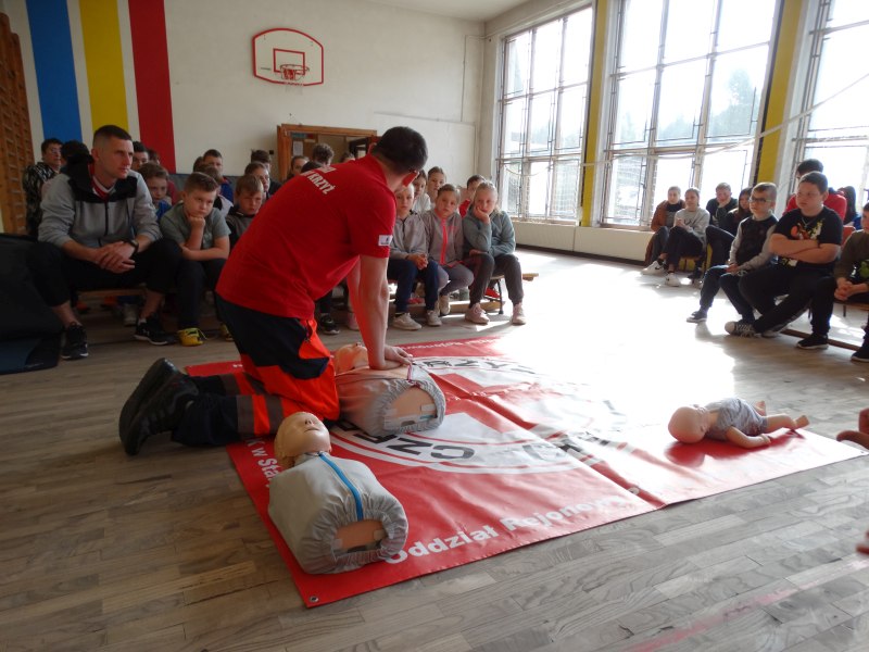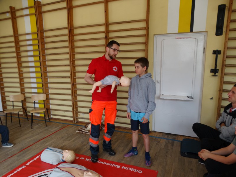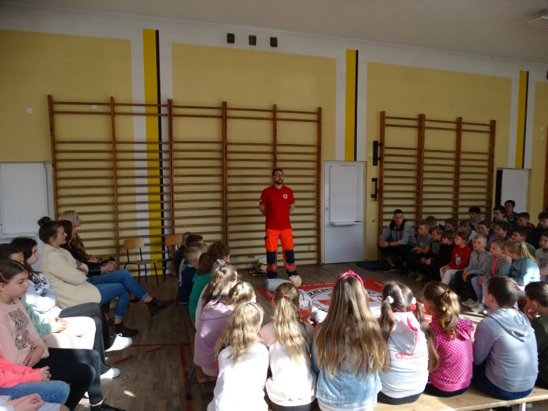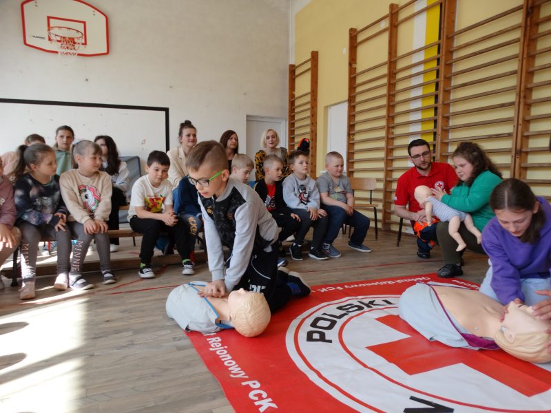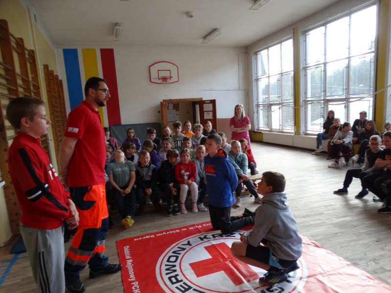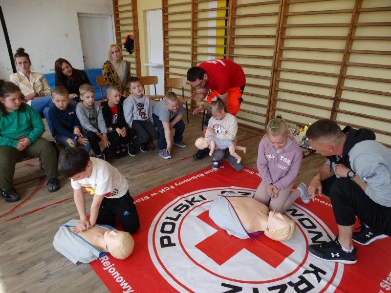 Dnia 12.05.2023 r. w naszej szkole odbyło się spotkanie z ratownikiem medycznym – Panem Mateuszem Bołozem.Udział w nim wzięli uczniowie klas I-VIII. Prowadzący pokazywał w jaki sposób należy udzielać pomocy przedmedycznej dorosłym, dzieciom, a także niemowlętom. Pokaz odbywał się z wykorzystaniem sprzętu medycznego oraz manekinów, tzw. fantomów medycznych. Ratownik w jasny i klarowny sposób zdradzał tajniki udzielania pierwszej pomocy. Uczniowie również wykazali duże zainteresowanie oraz wiedzę. Na szczególną uwagę zasługuje uczeń klasy VI – Oskar Suchowian- Szaflarski, a także klasy VII – Wojciech Gumulak. Chłopcy dali dowód swojej rozległej wiedzy na temat sposób udzielania pierwszej pomocy przedmedycznej.