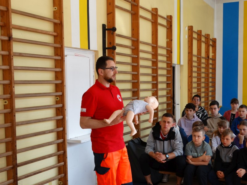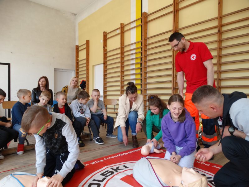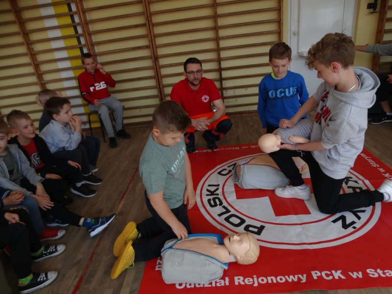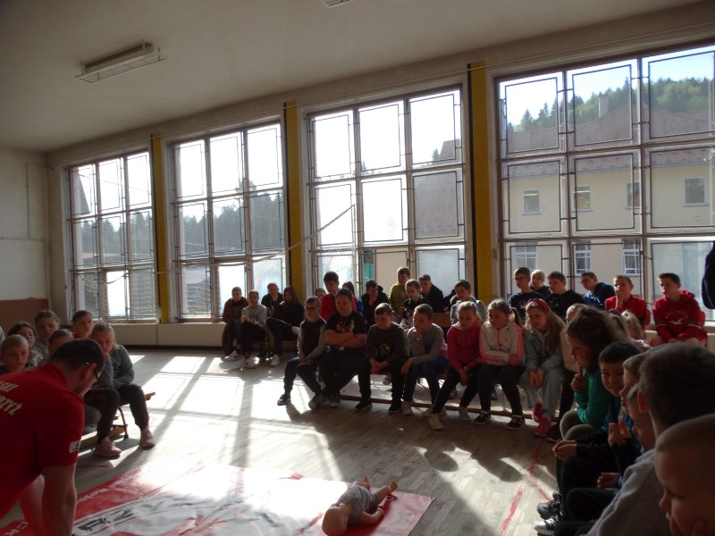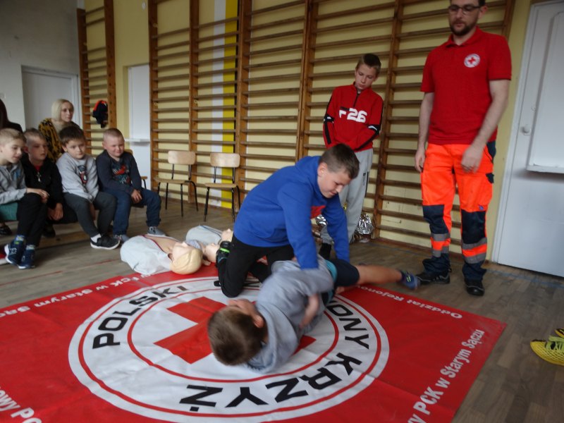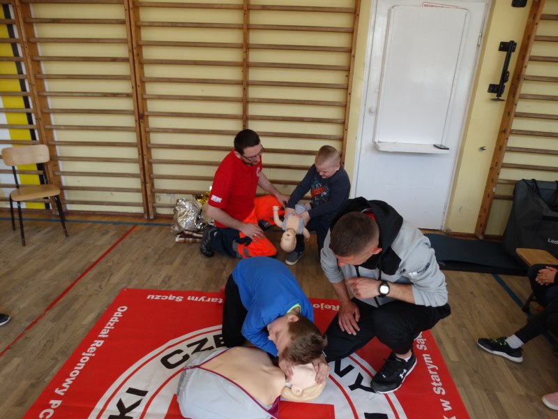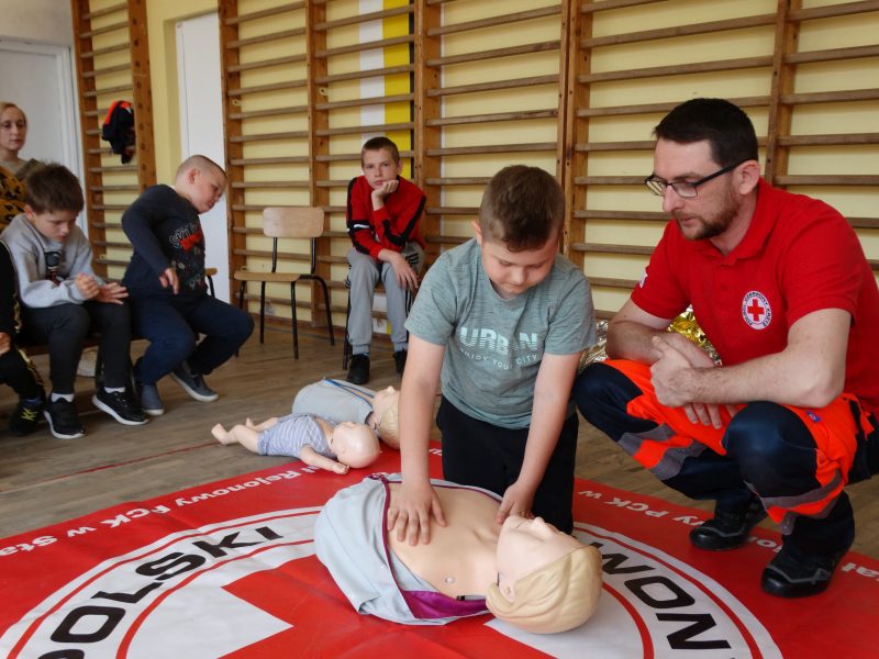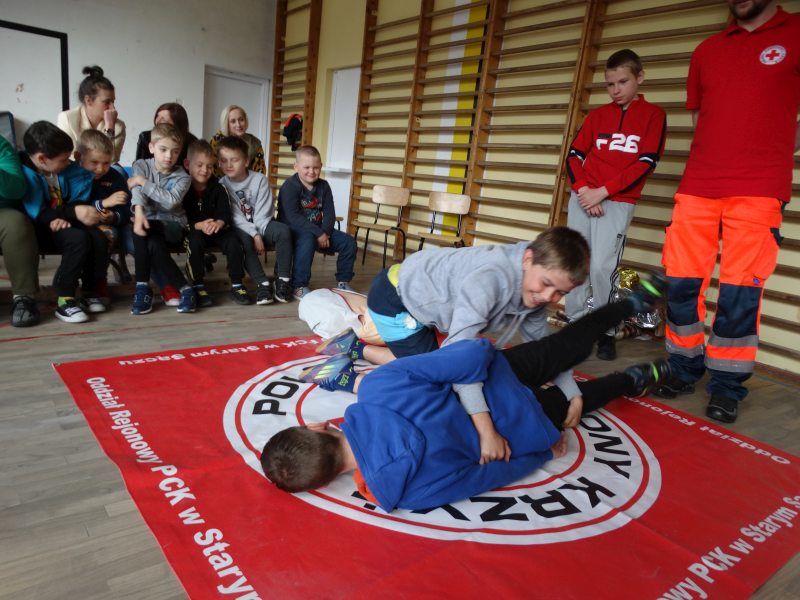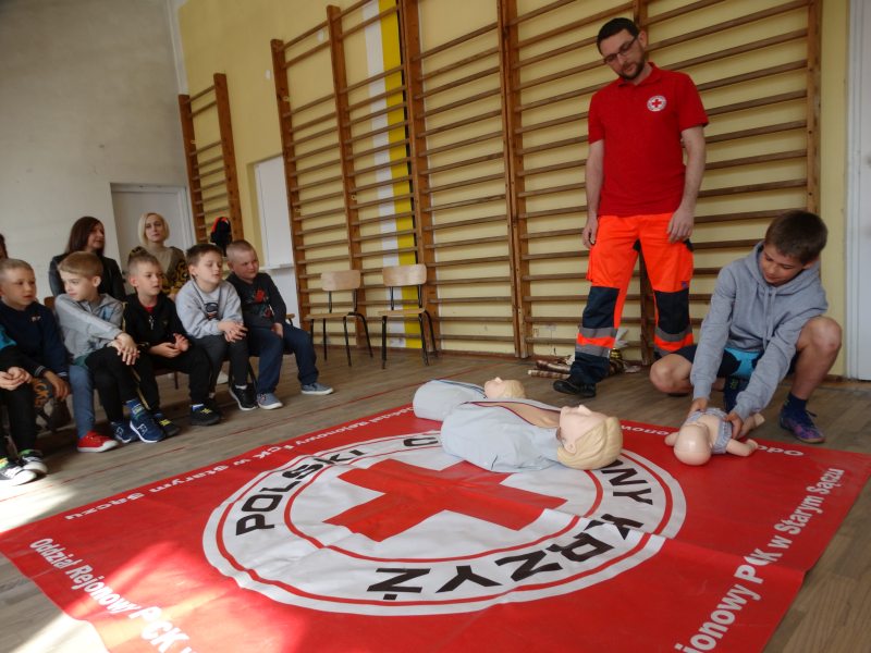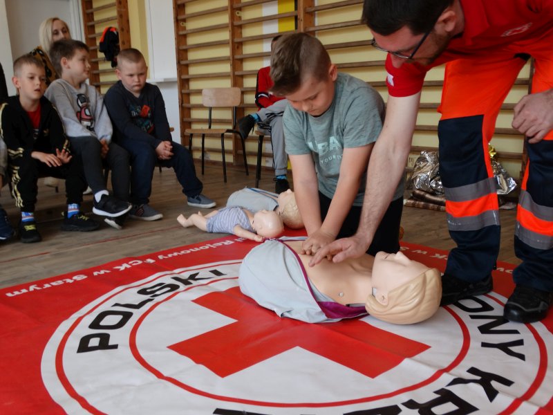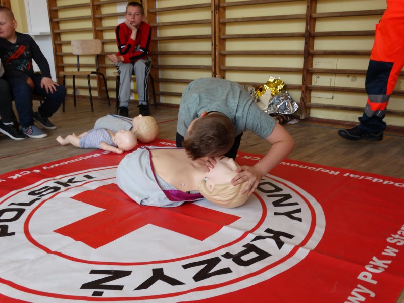 Dnia 12.05.2023 r. w naszej szkole odbyło się spotkanie z ratownikiem medycznym – Panem Mateuszem Bołozem.Udział w nim wzięli uczniowie klas I-VIII. Prowadzący pokazywał w jaki sposób należy udzielać pomocy przedmedycznej dorosłym, dzieciom, a także niemowlętom. Pokaz odbywał się z wykorzystaniem sprzętu medycznego oraz manekinów, tzw. fantomów medycznych. Ratownik w jasny i klarowny sposób zdradzał tajniki udzielania pierwszej pomocy. Uczniowie również wykazali duże zainteresowanie oraz wiedzę. Na szczególną uwagę zasługuje uczeń klasy VI – Oskar Suchowian- Szaflarski, a także klasy VII – Wojciech Gumulak. Chłopcy dali dowód swojej rozległej wiedzy na temat sposób udzielania pierwszej pomocy przedmedycznej.