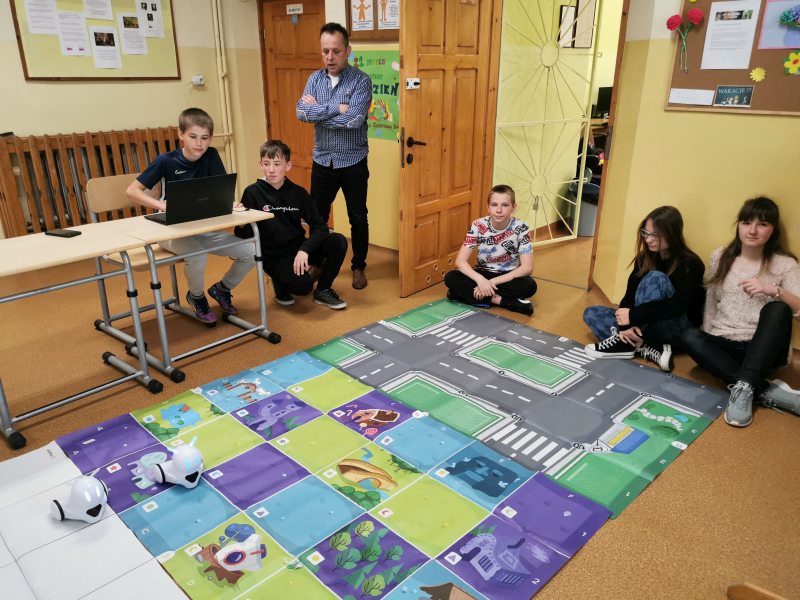 W maju 2023 r. uczniowie klasy 6 podczas zajęć z techniki uczyli się programować robota edukacyjnego Photon. Lekcja rozpoczęła się od krótkiego pokazu. Następnie uczniowie zostali podzieleni na dwie grupy. Uczniowie, metodą prób i błędów, bardzo dobrze wywiązali się z powierzonego im zadania. Urządzenie wywarło na nich bardzo ciekawe wrażenie.