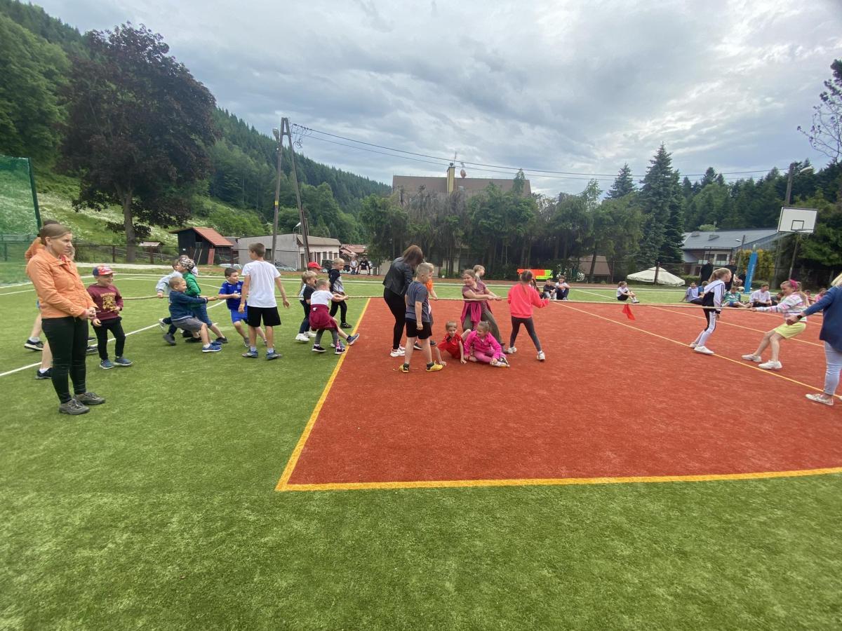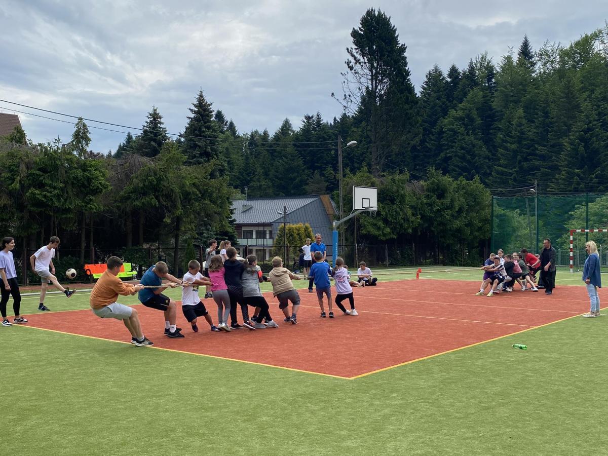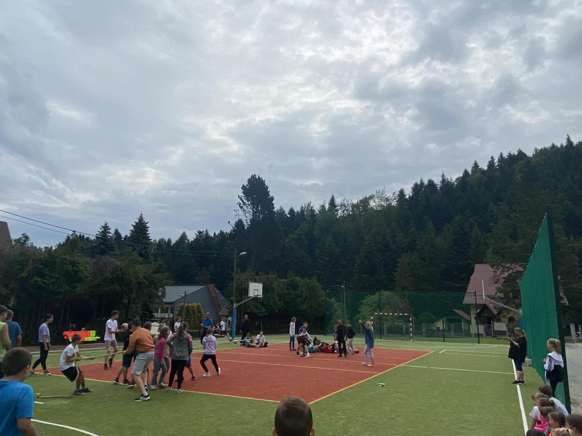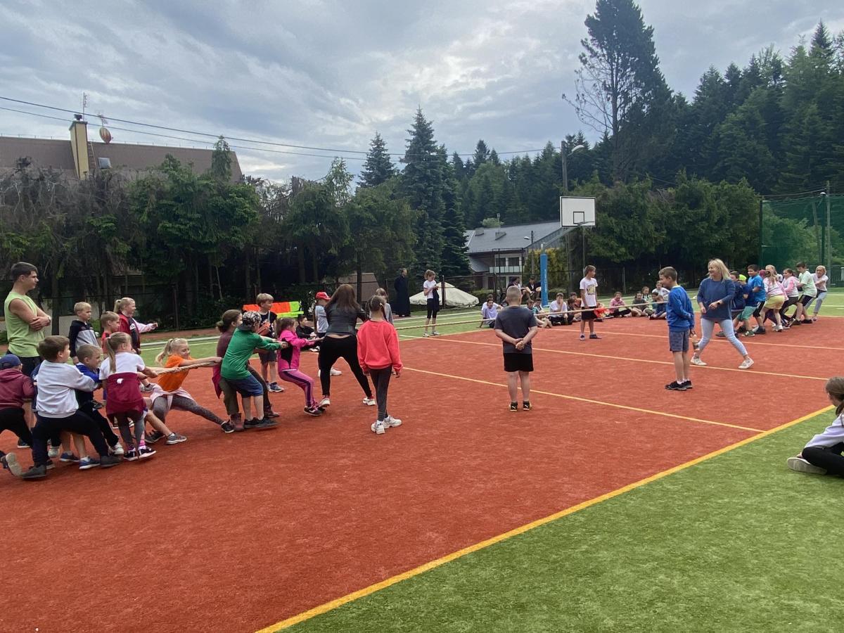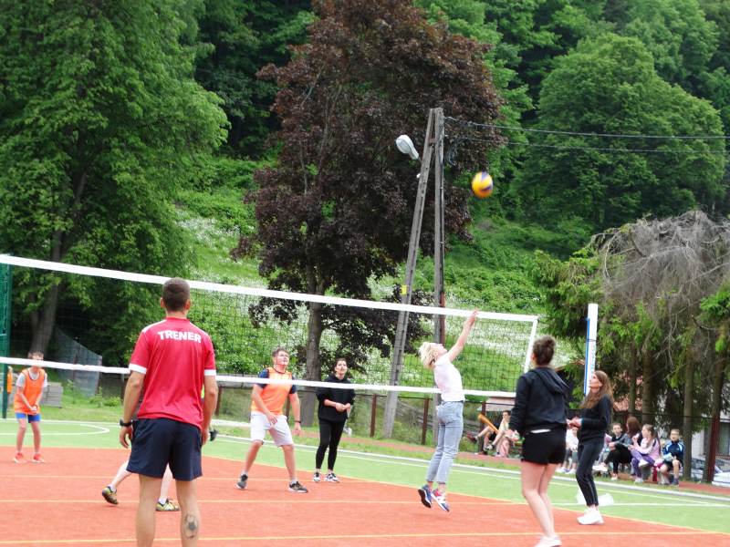 Końcowym wydarzeniem był mecz siatkówki : reprezentacji rodziców i nauczycieli– reprezentacja uczniów. W tym meczu także górą byli ci pierwsi czyli rodzice i nauczyciele. Było też tradycyjne przeciąganie liny w którym brali uczniowie różnych klas.