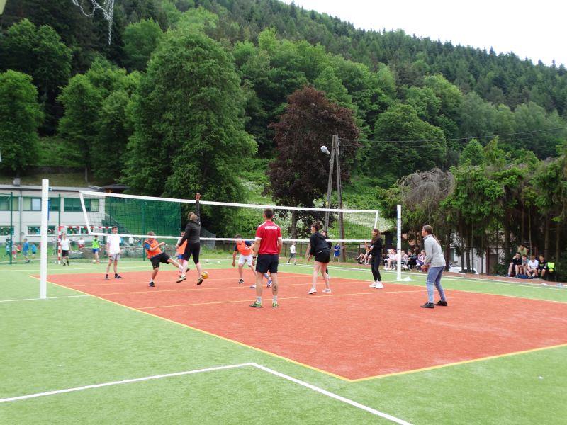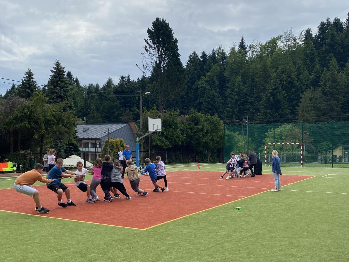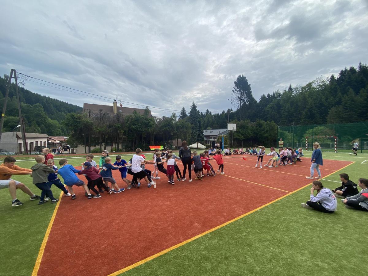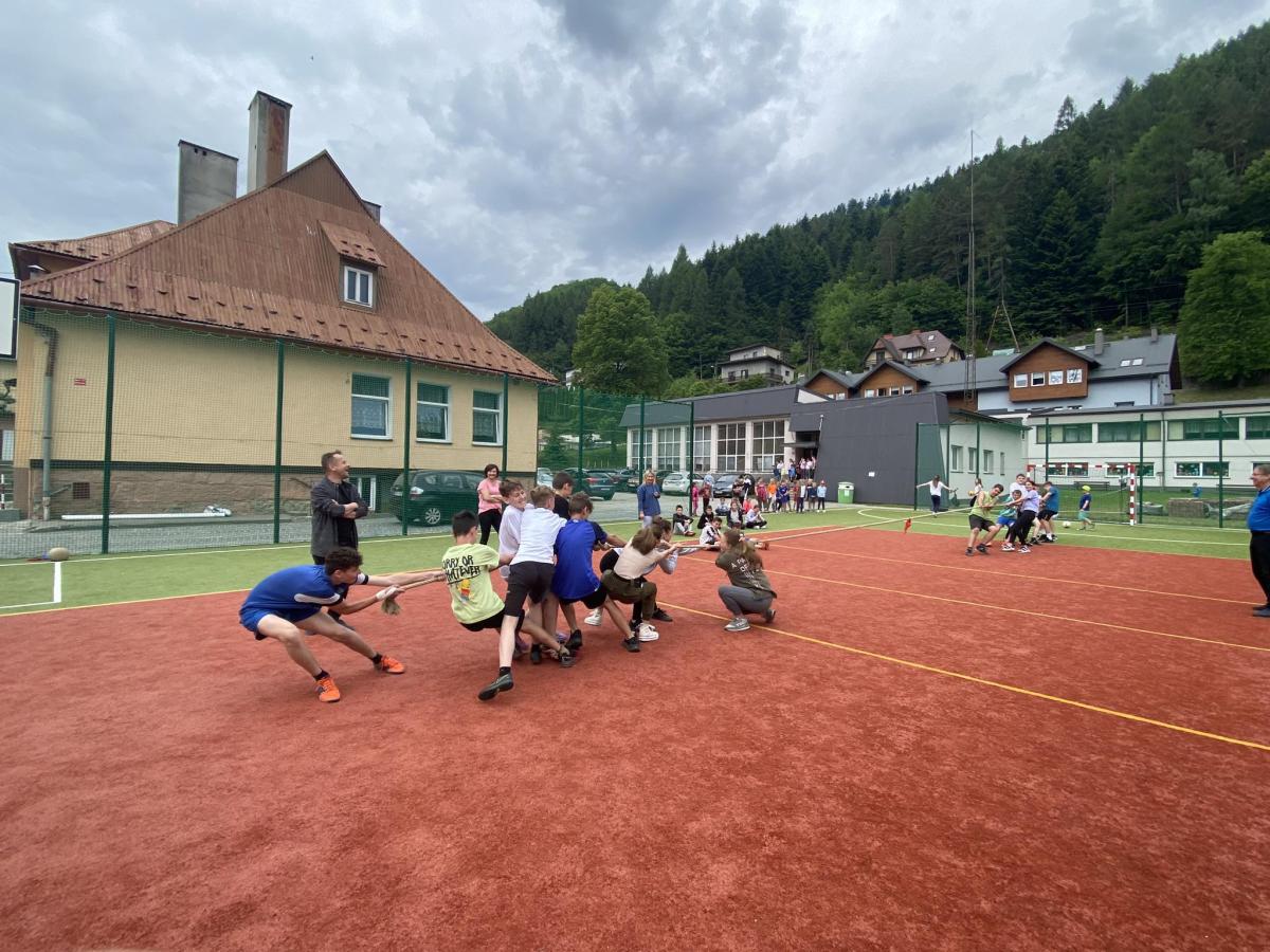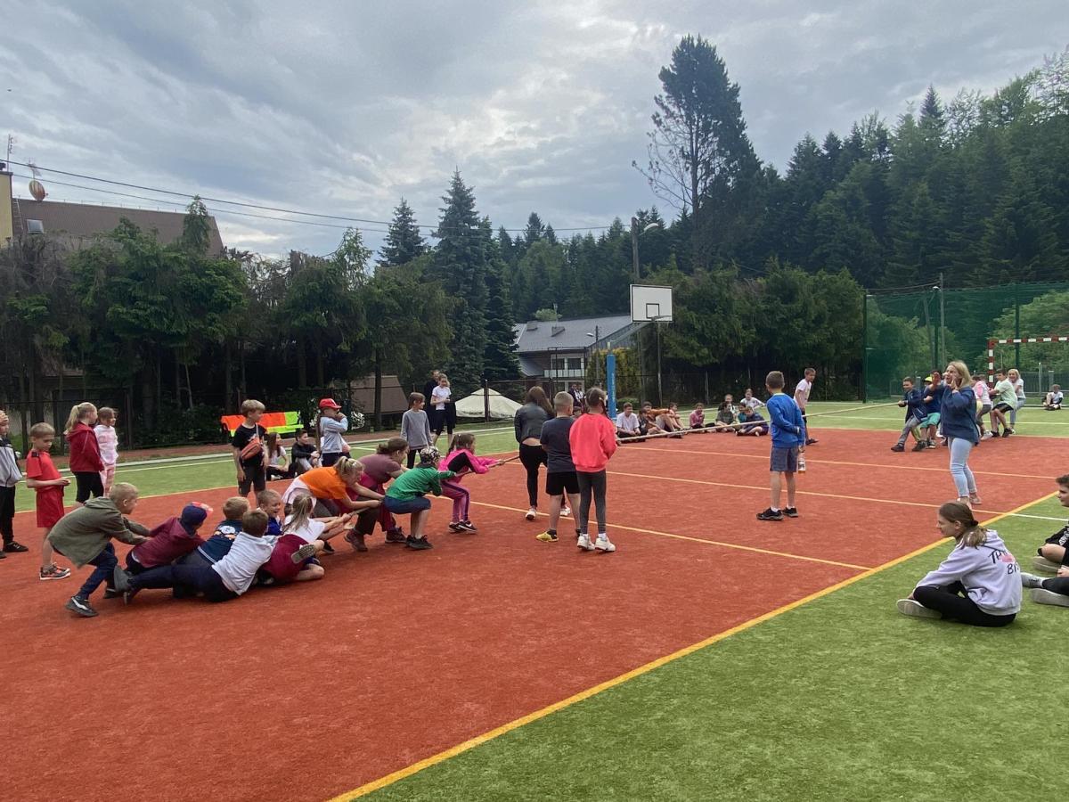 Końcowym wydarzeniem był mecz siatkówki : reprezentacji rodziców i nauczycieli– reprezentacja uczniów. W tym meczu także górą byli ci pierwsi czyli rodzice i nauczyciele. Było też tradycyjne przeciąganie liny w którym brali uczniowie różnych klas.