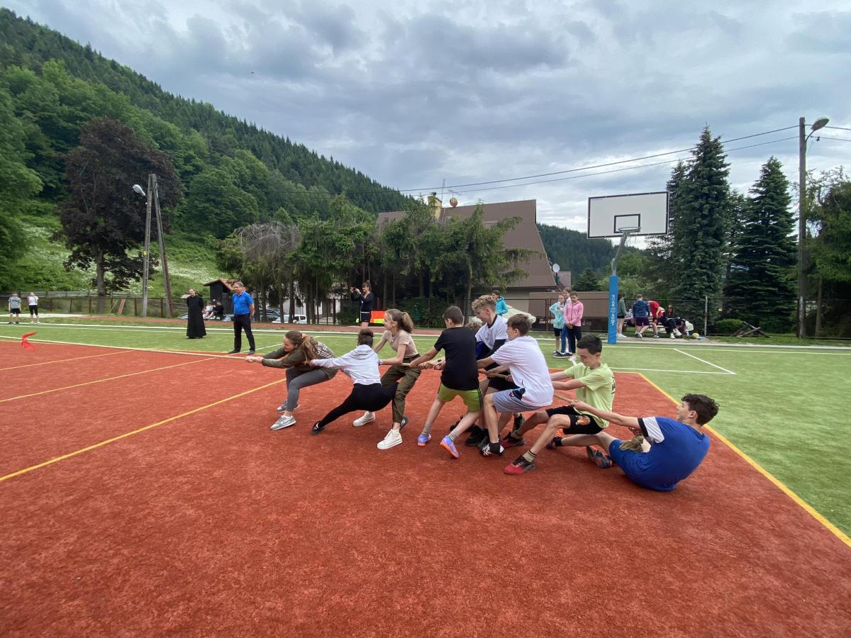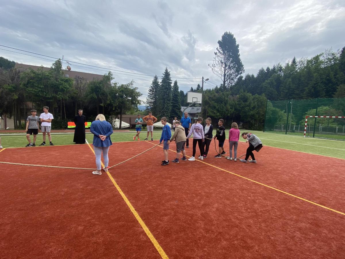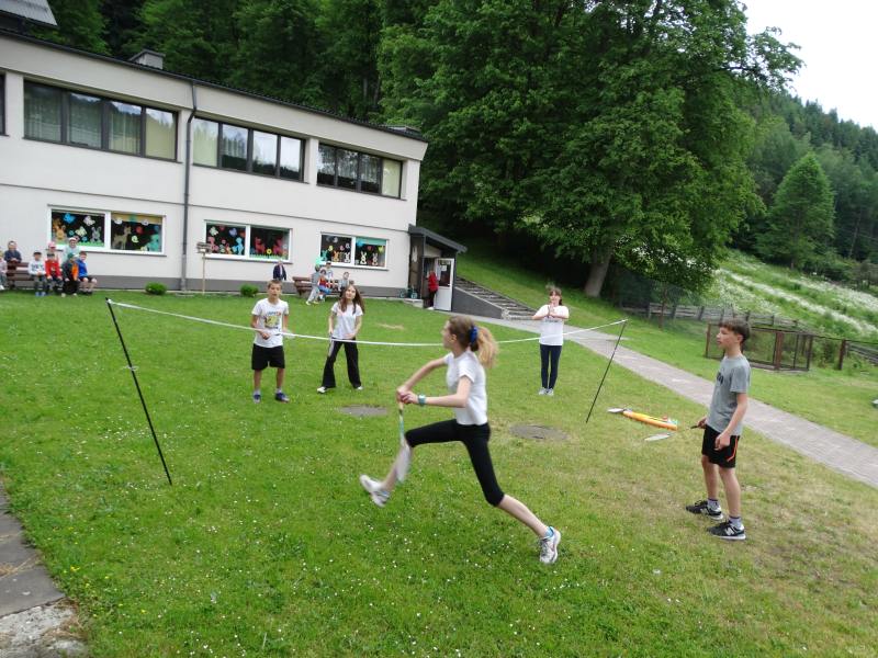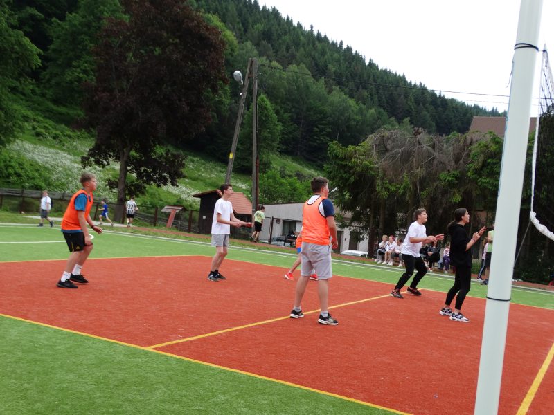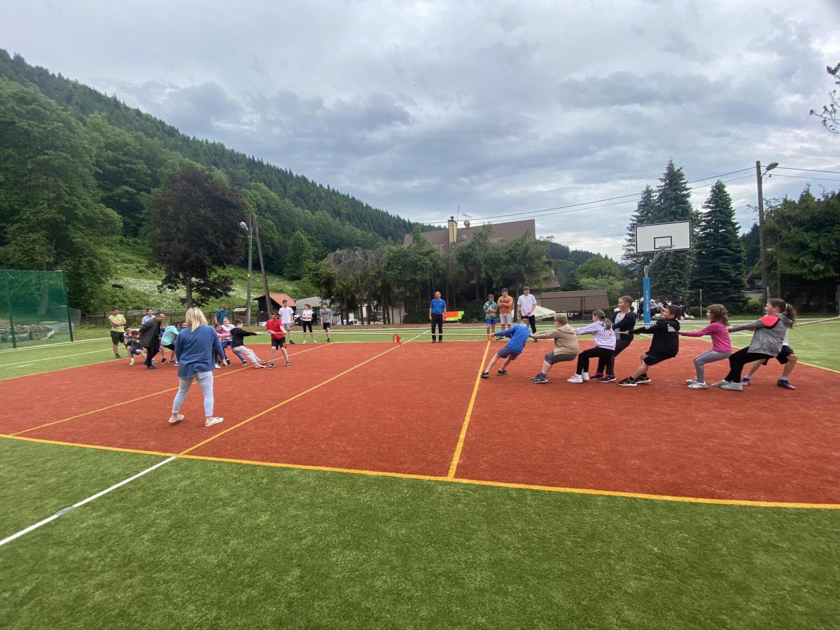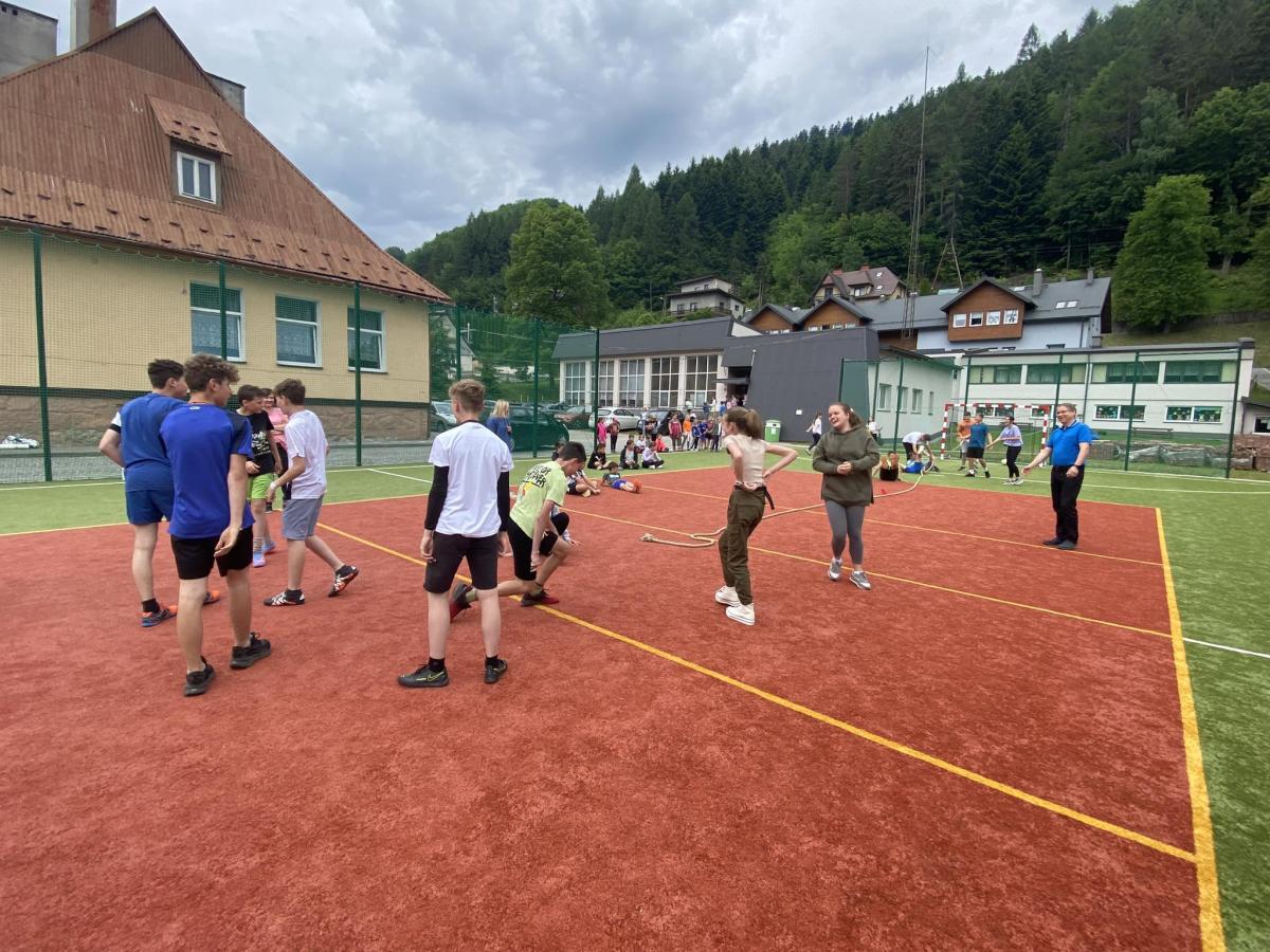 Końcowym wydarzeniem był mecz siatkówki : reprezentacji rodziców i nauczycieli– reprezentacja uczniów. W tym meczu także górą byli ci pierwsi czyli rodzice i nauczyciele. Było też tradycyjne przeciąganie liny w którym brali uczniowie różnych klas.