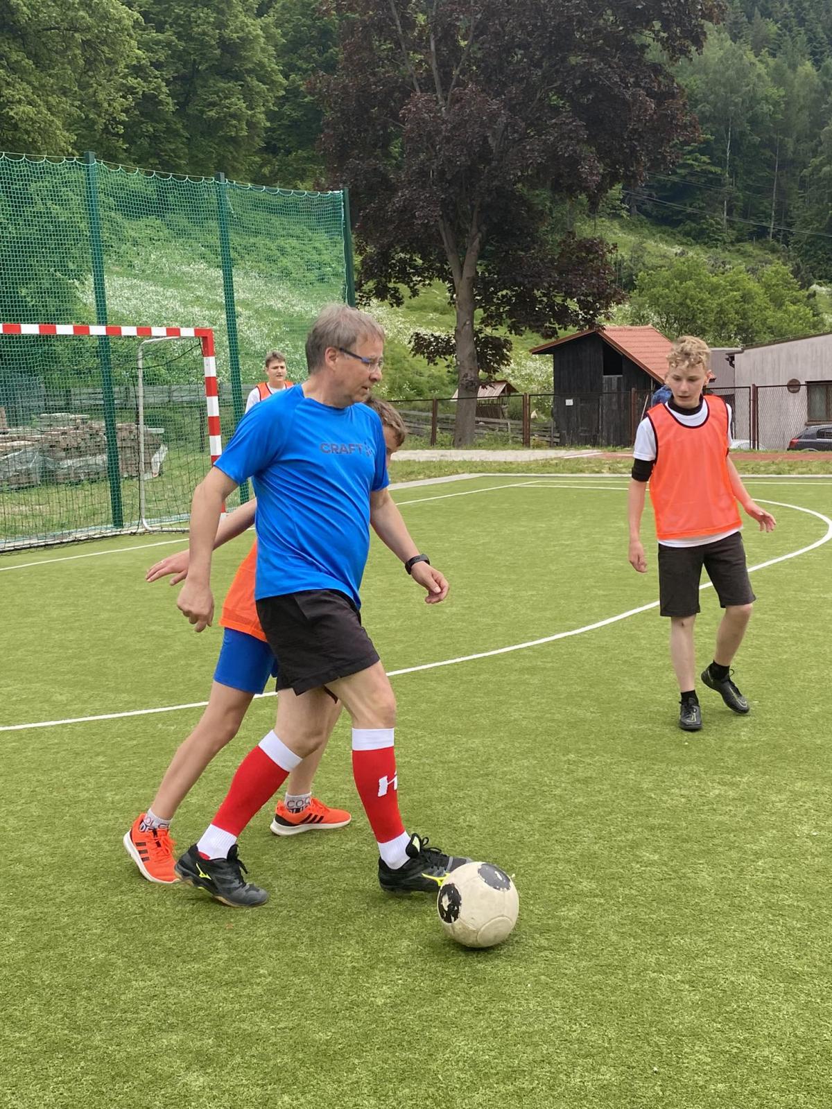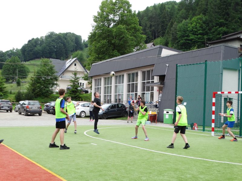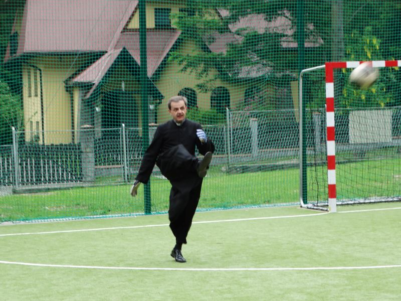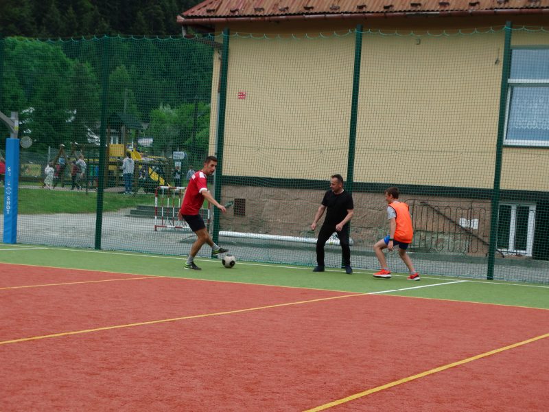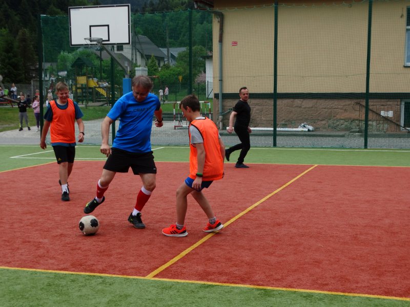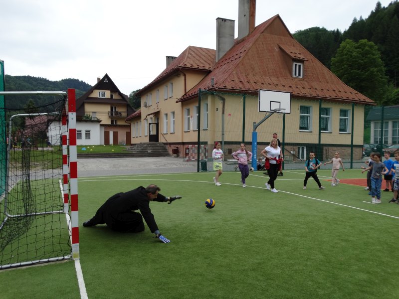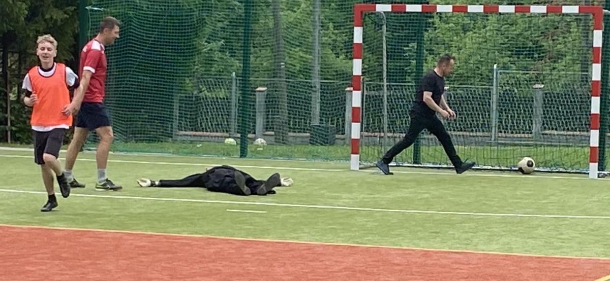 Następnie nauczyciele i pracownicy szkoły zagrali mecz piłki nożnej na reprezentację szkoły chłopców wygrywając z nimi bez większych problemów prezentując bardzo dobrą formę sportową. W dalszej kolejności odbył mecz siatkówki tzw. mieszany skład dziewcząt i chłopców między sobą.