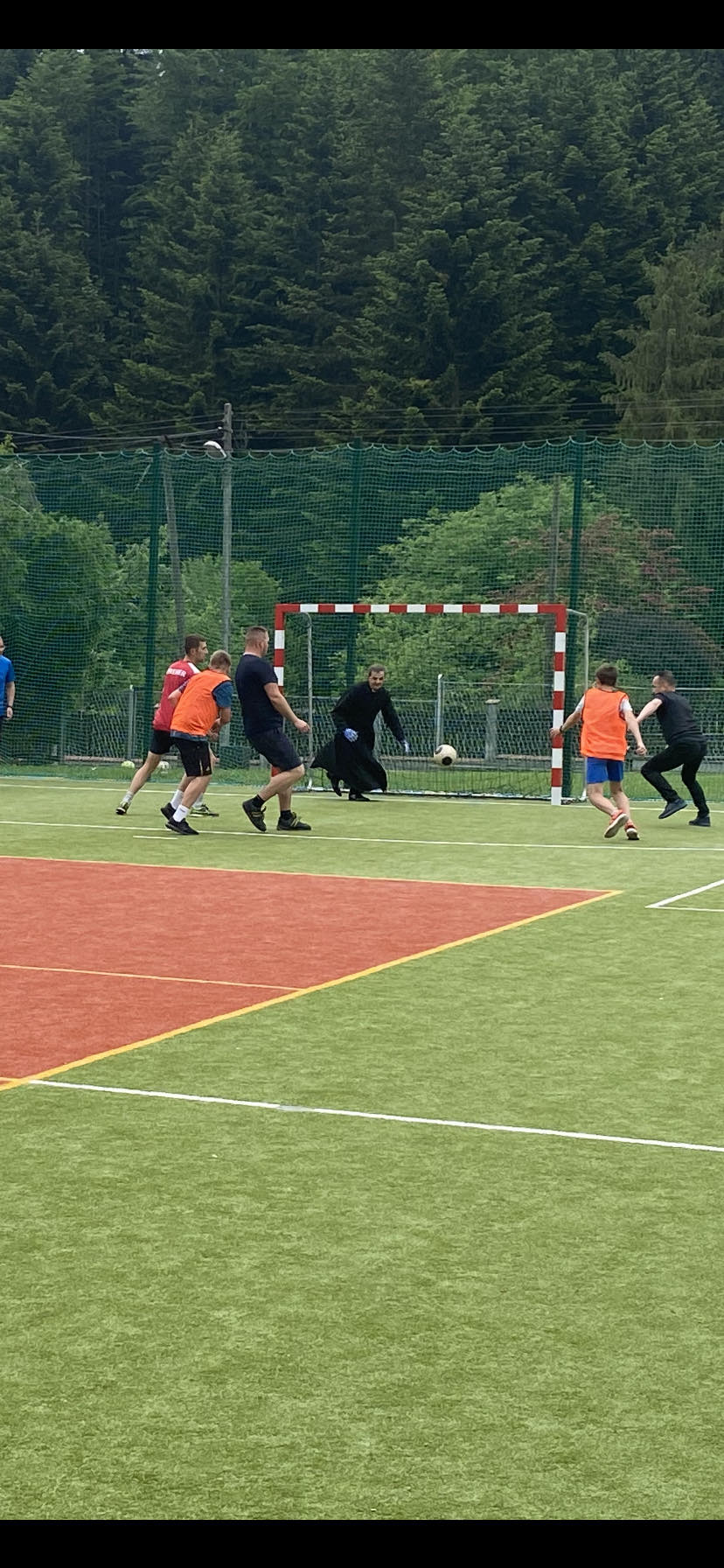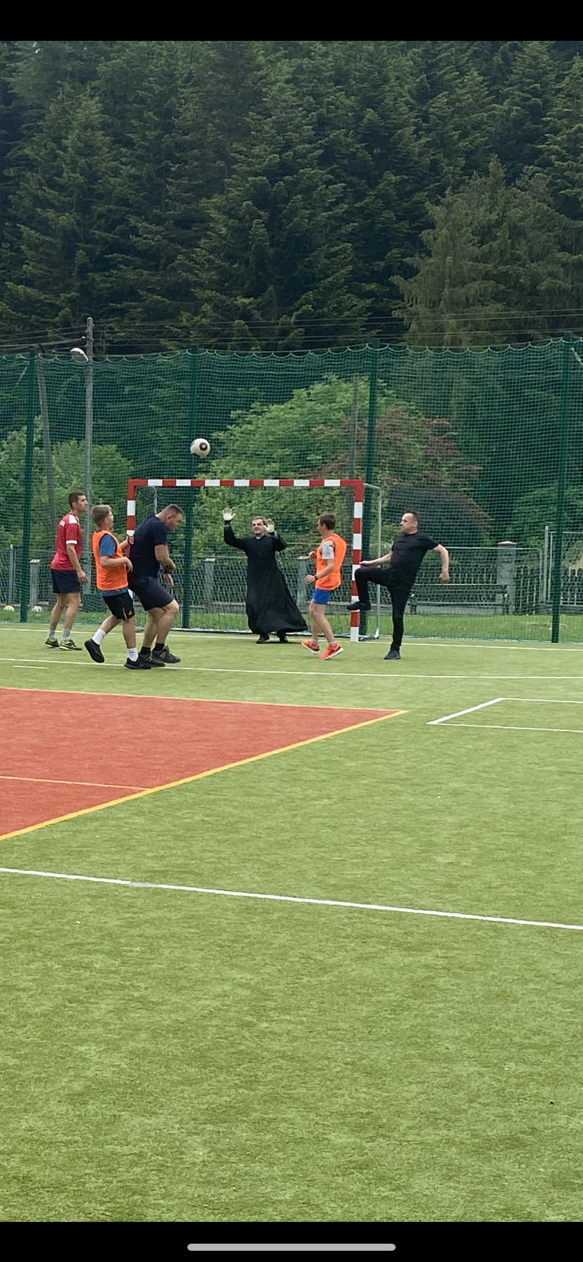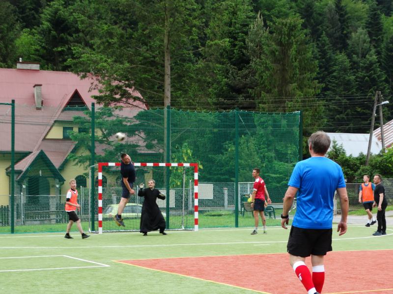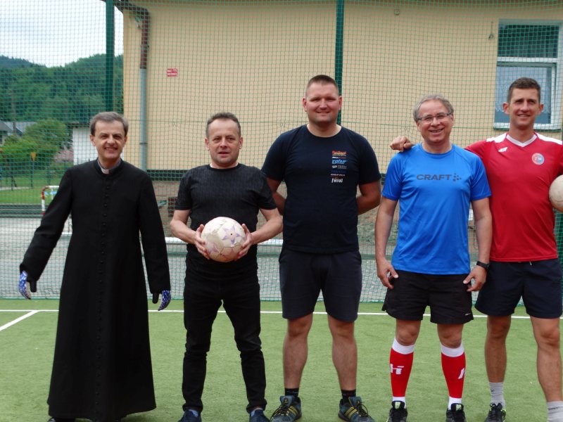 Następnie nauczyciele i pracownicy szkoły zagrali mecz piłki nożnej na reprezentację szkoły chłopców wygrywając z nimi bez większych problemów prezentując bardzo dobrą formę sportową. W dalszej kolejności odbył mecz siatkówki tzw. mieszany skład dziewcząt i chłopców między sobą.