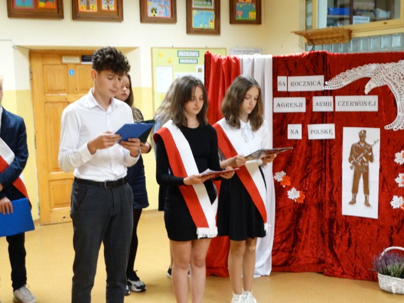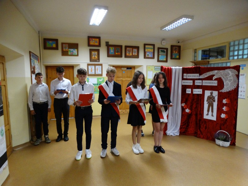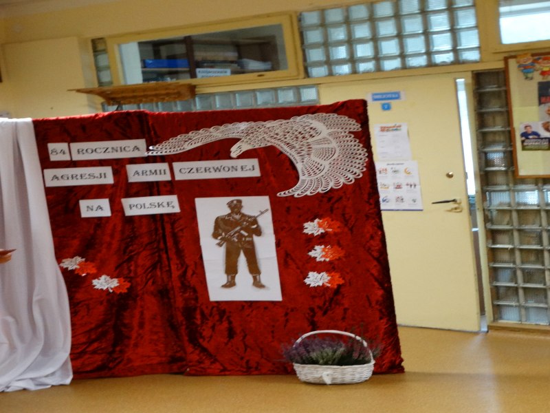 W 84 rocznicę agresji Armii Czerwonej na Polskę uczniowie klasy VIII przybliżyli społeczności szkolnej wydarzenia wrześniowe z 1939 roku. Zwracając się do swoich kolegów i koleżanek zaakcentowali, iż wielu Polaków nie zdaje sobie sprawy z rozmiaru zniszczeń i strat poniesionych przez Polskę na skutek tej agresji. Agresja III Rzeszy Niemieckiej z 1 września miała zawsze miejsce w polskiej pamięci, w przeciwieństwie do daty agresji sowieckiej, do daty 17 września, która powinna być znana wszystkim Polakom. Jak powiedziała jedna z prowadzących apel„jesteśmy Polakami i naszym obowiązkiem jest zachować pamięć o naszych przodkach – wielkich bohaterach w służbie narodu”.