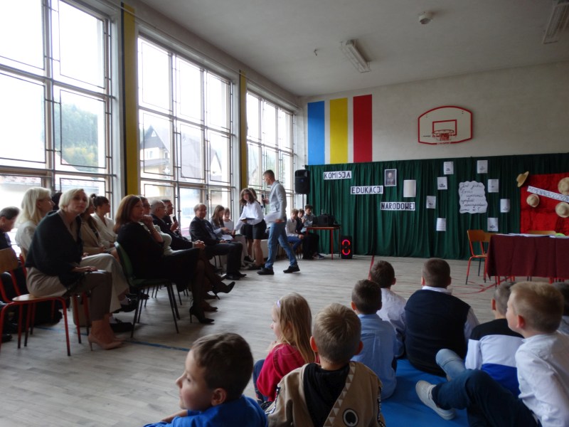 Dyrektor Szkoły powitał Burmistrza MiG Piwniczna Zdrój Dariusz Chorużyka, radnego Ryszarda Lewickiego i dyr.Zeas Urszulę Sikorską, przedstawicieli Rady Rodziców , nauczycieli, pracowników szkoły, uczniowów i dzieci.