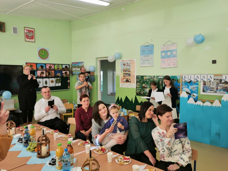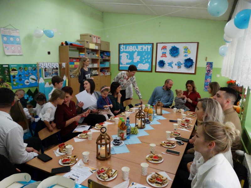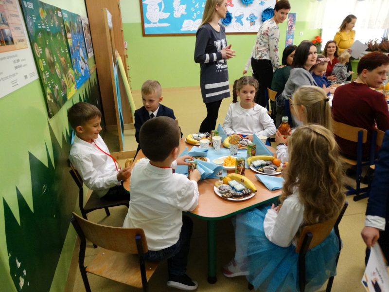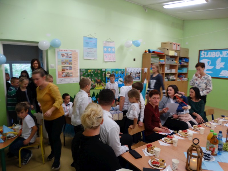Po zakończeniu części oficjalnej uczestnicy zostali zaproszeni na słodki poczęstunek zorganizowany przez rodziców bohaterów tego dnia, czyli uczniów klasy I.