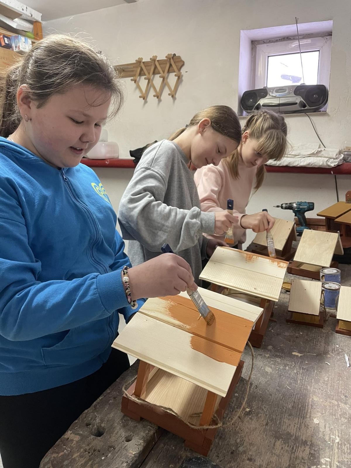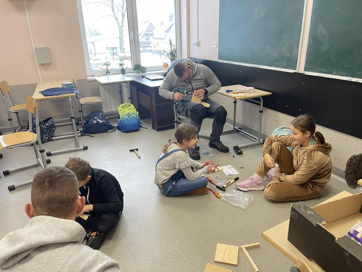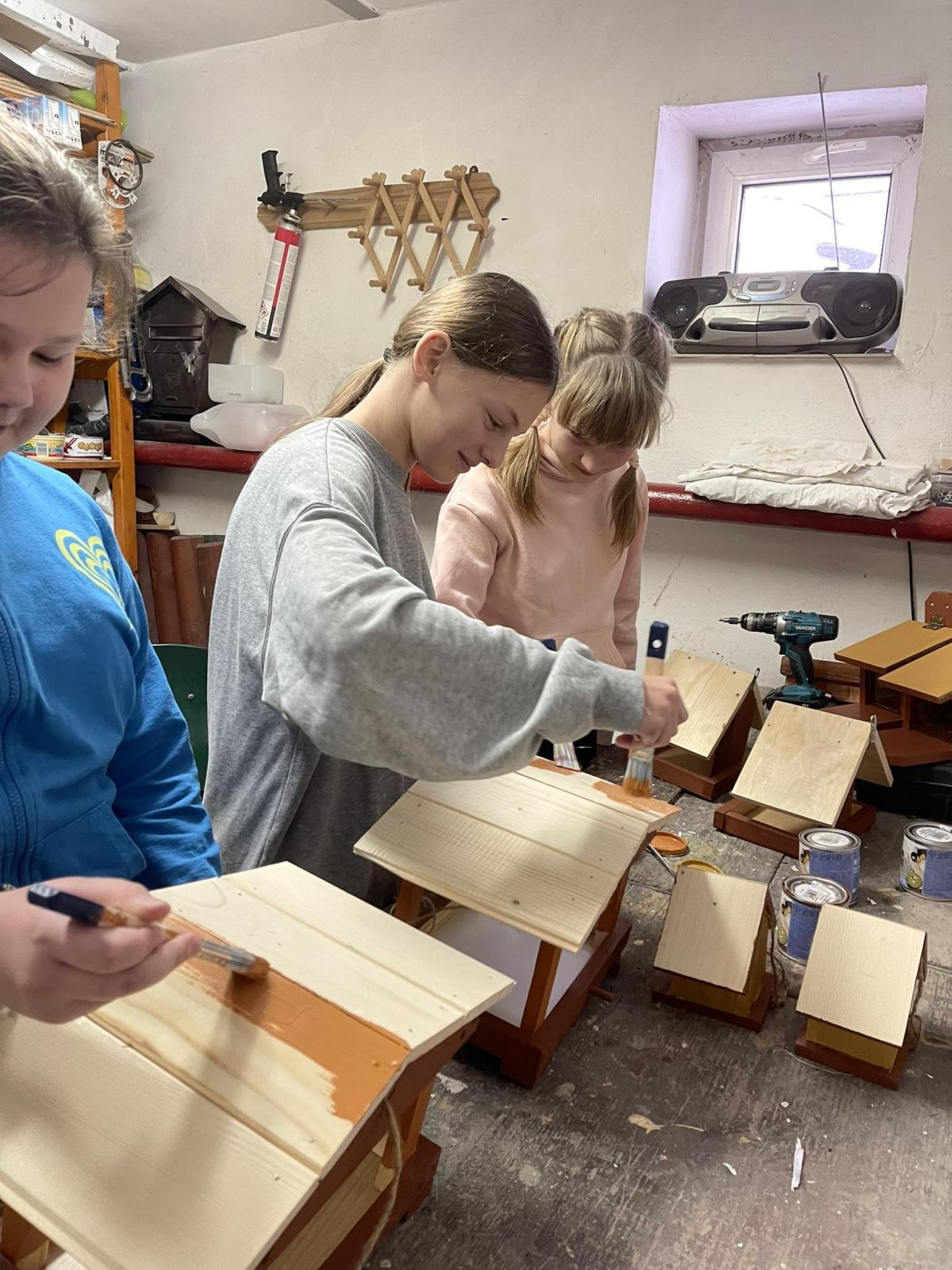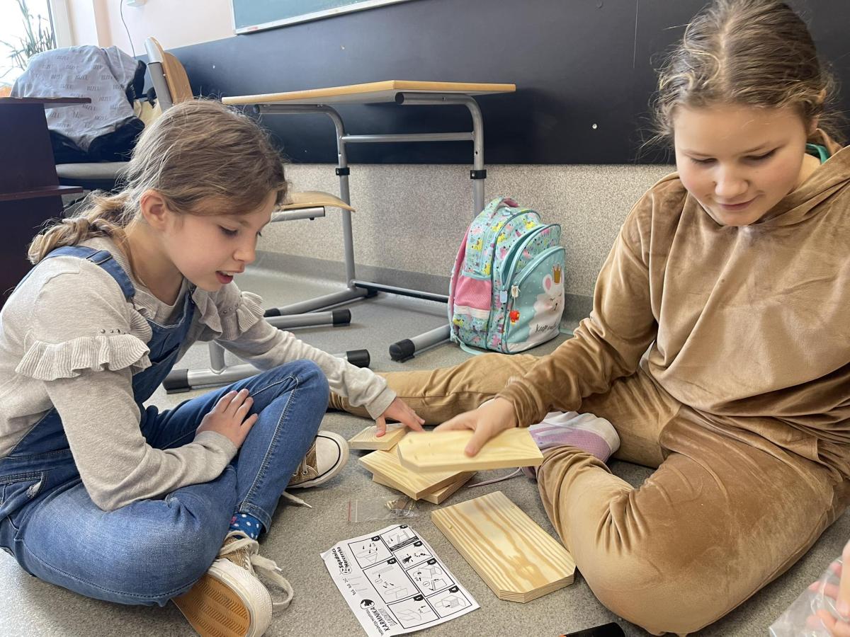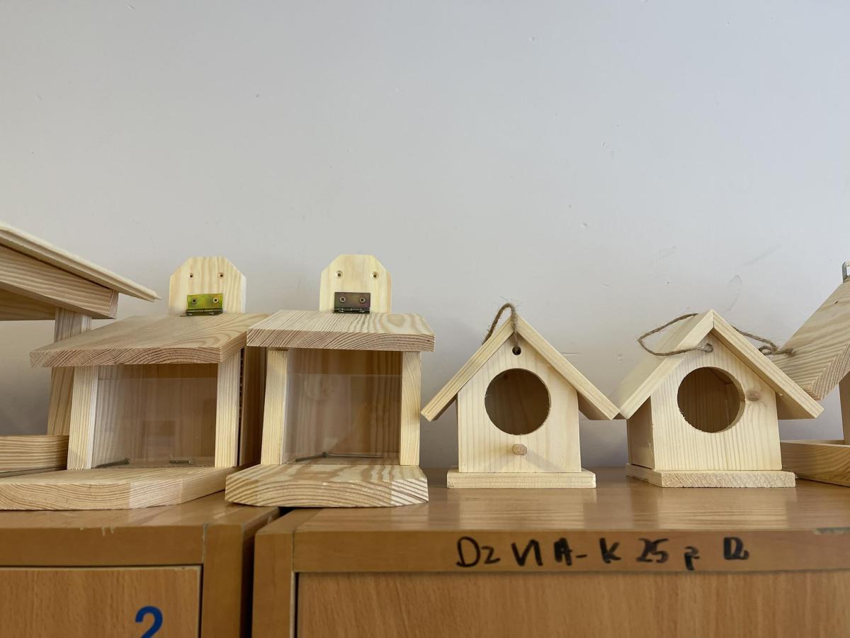 Nasza szkoła otrzymała kilka takich karmników i na lekcjach techniki i plastyki uczniowie pod opieką nauczycielki p. Moniki Łączek-Bołoz składali je w całość i malowali, a konserwator szkoły p. Jakub Gumulak nadzorował to i montował je na drzewach.
