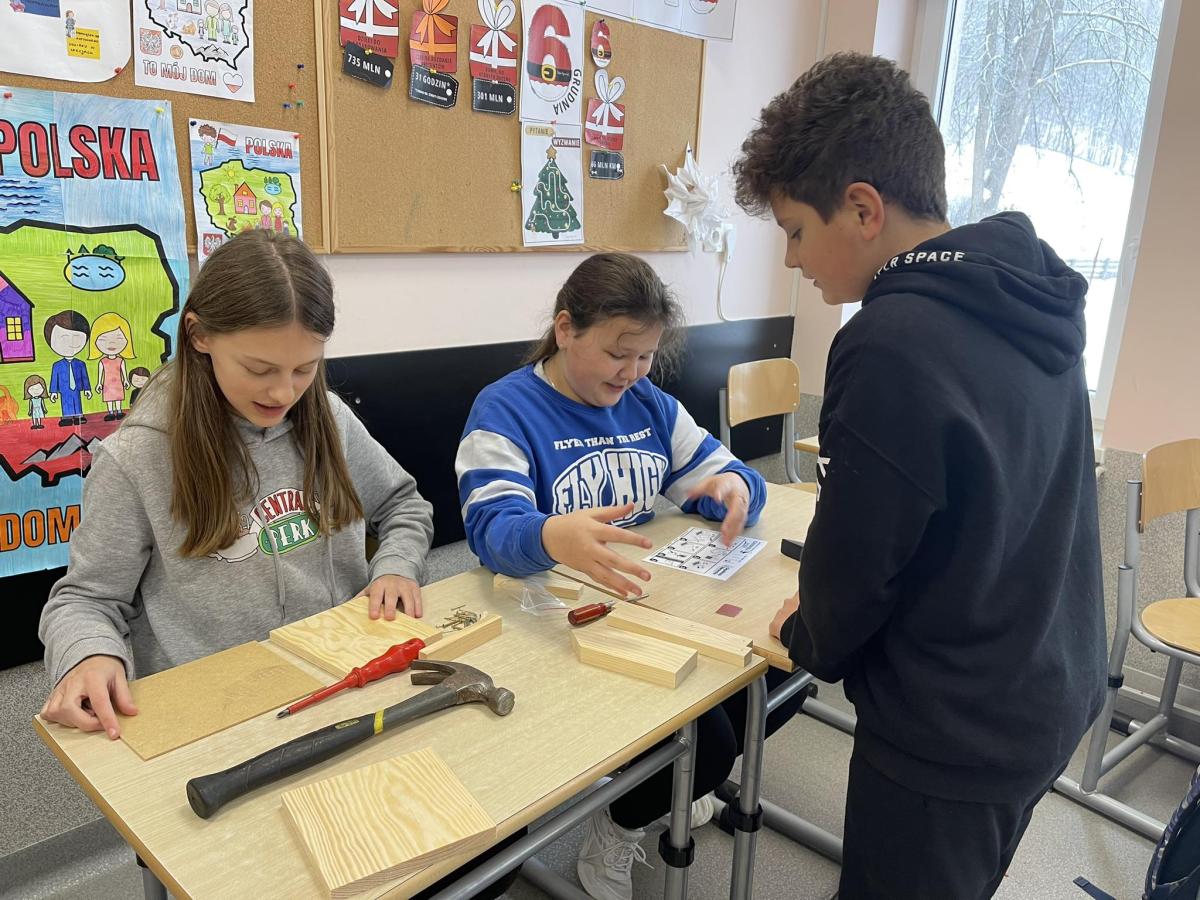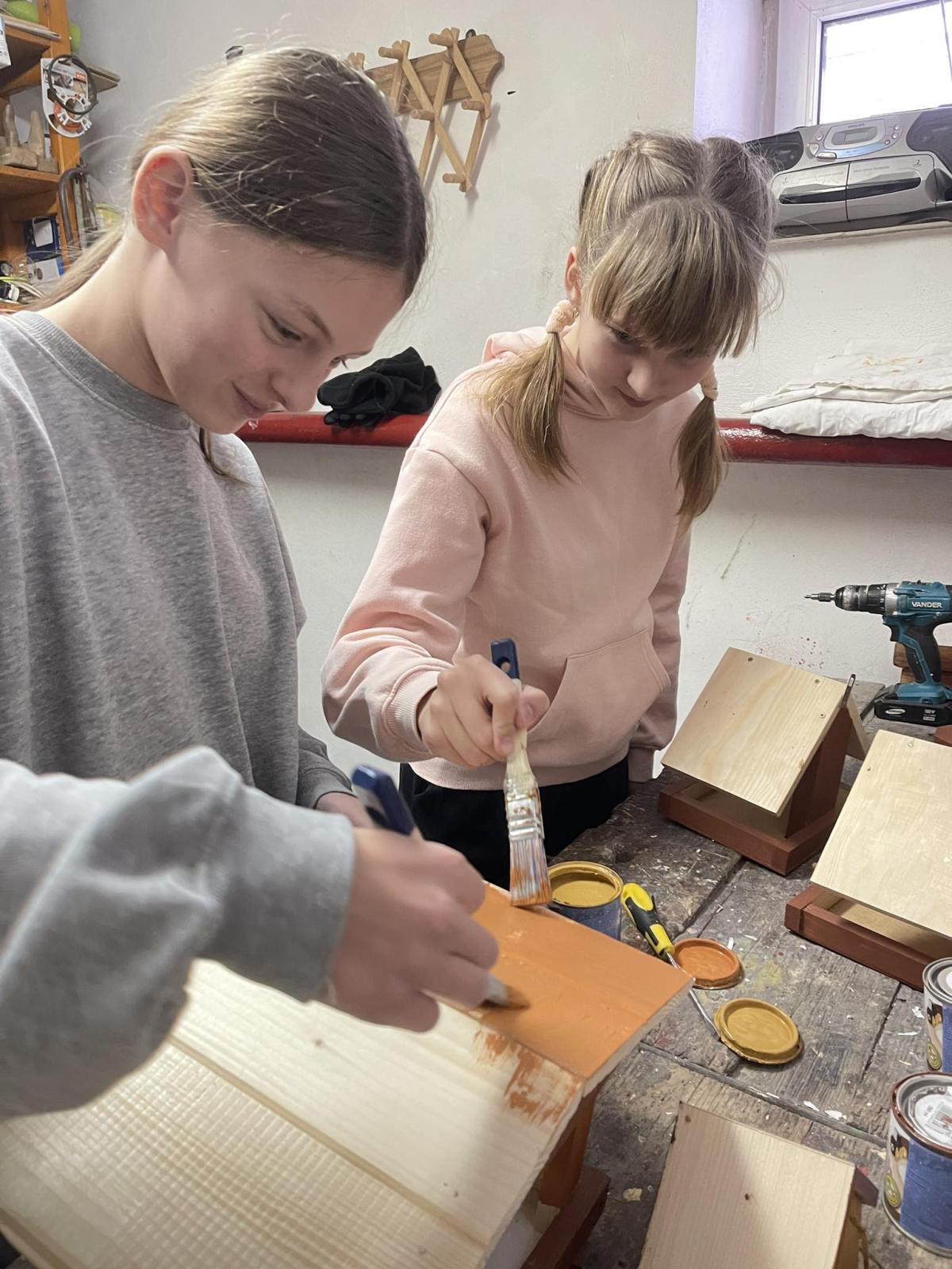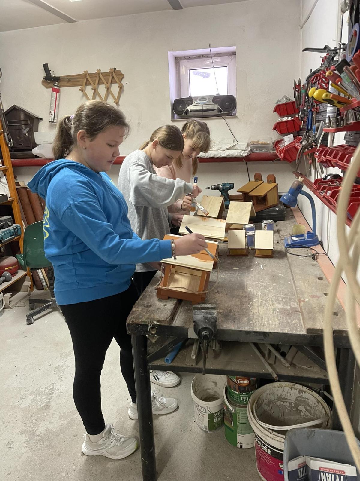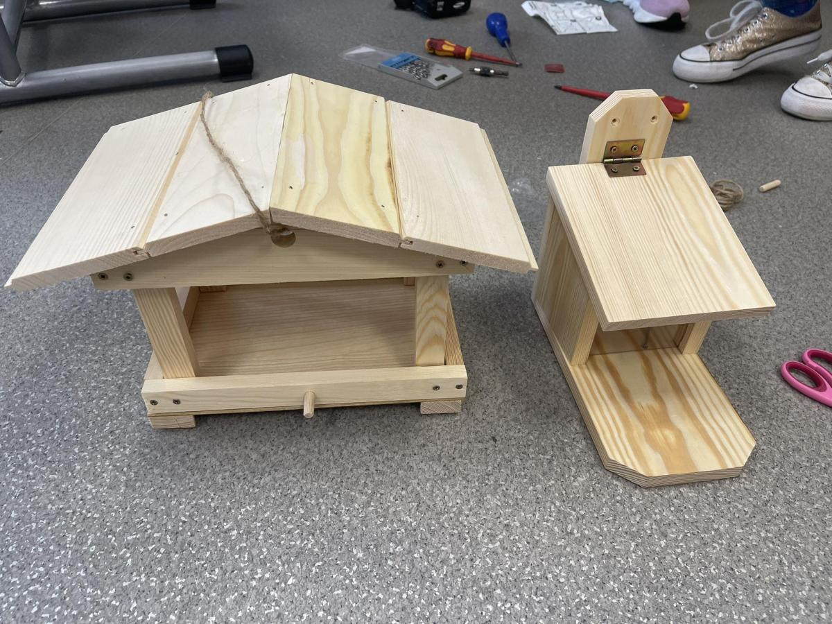 Nasza szkoła otrzymała kilka takich karmników i na lekcjach techniki i plastyki uczniowie pod opieką nauczycielki p. Moniki Łączek-Bołoz składali je w całość i malowali, a konserwator szkoły p. Jakub Gumulak nadzorował to i montował je na drzewach.