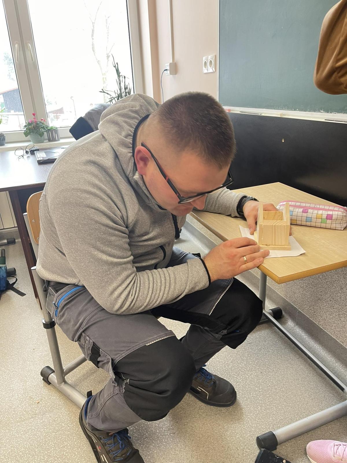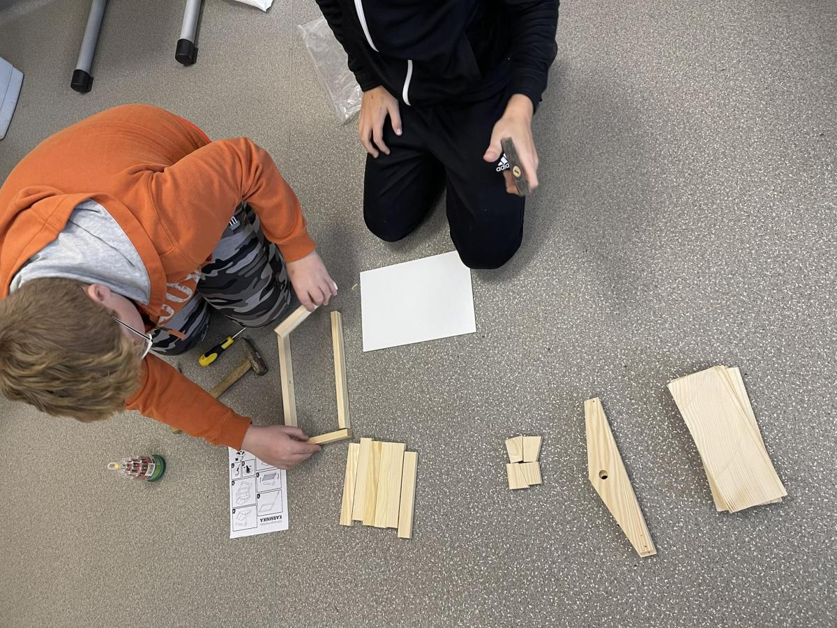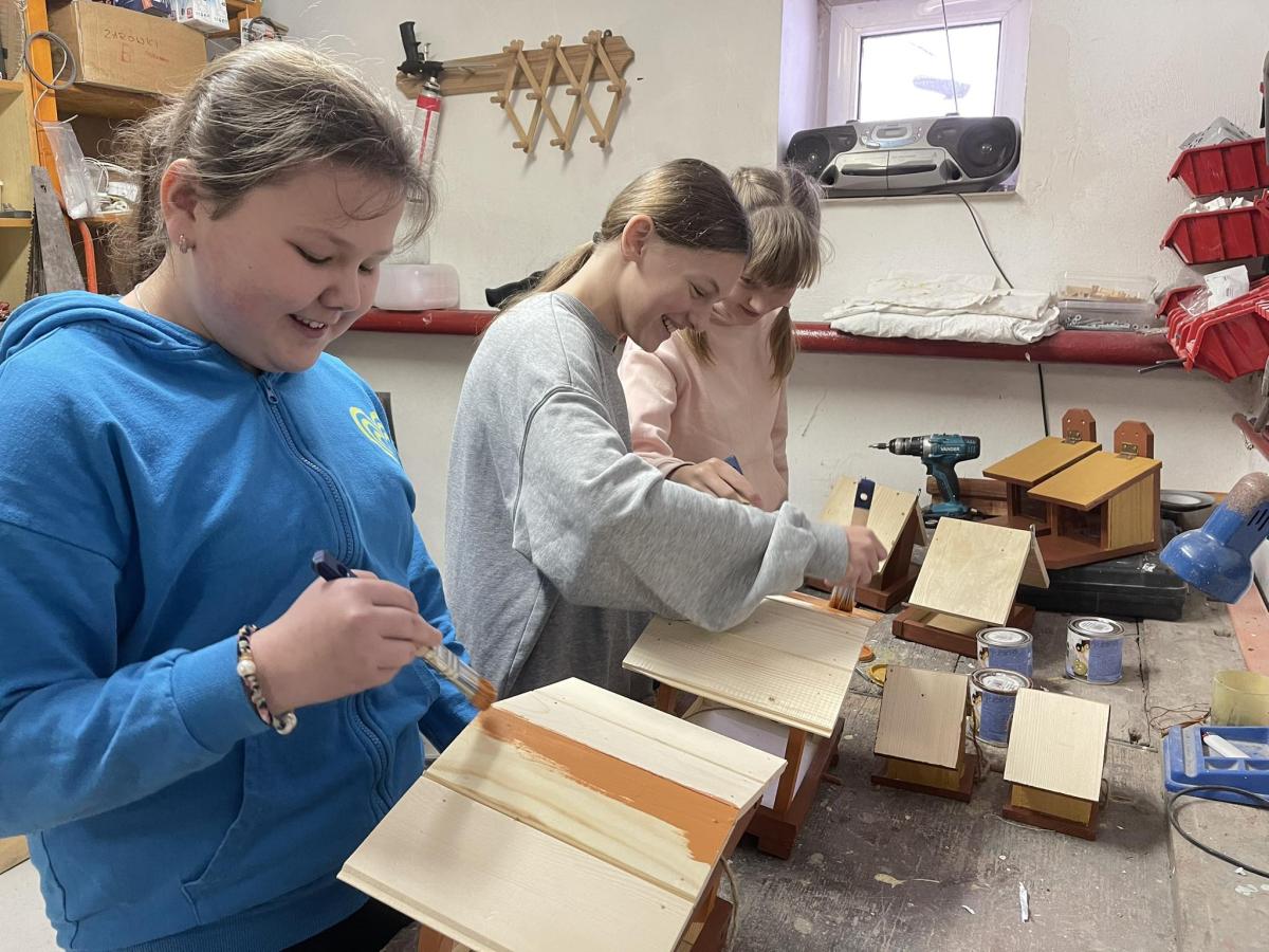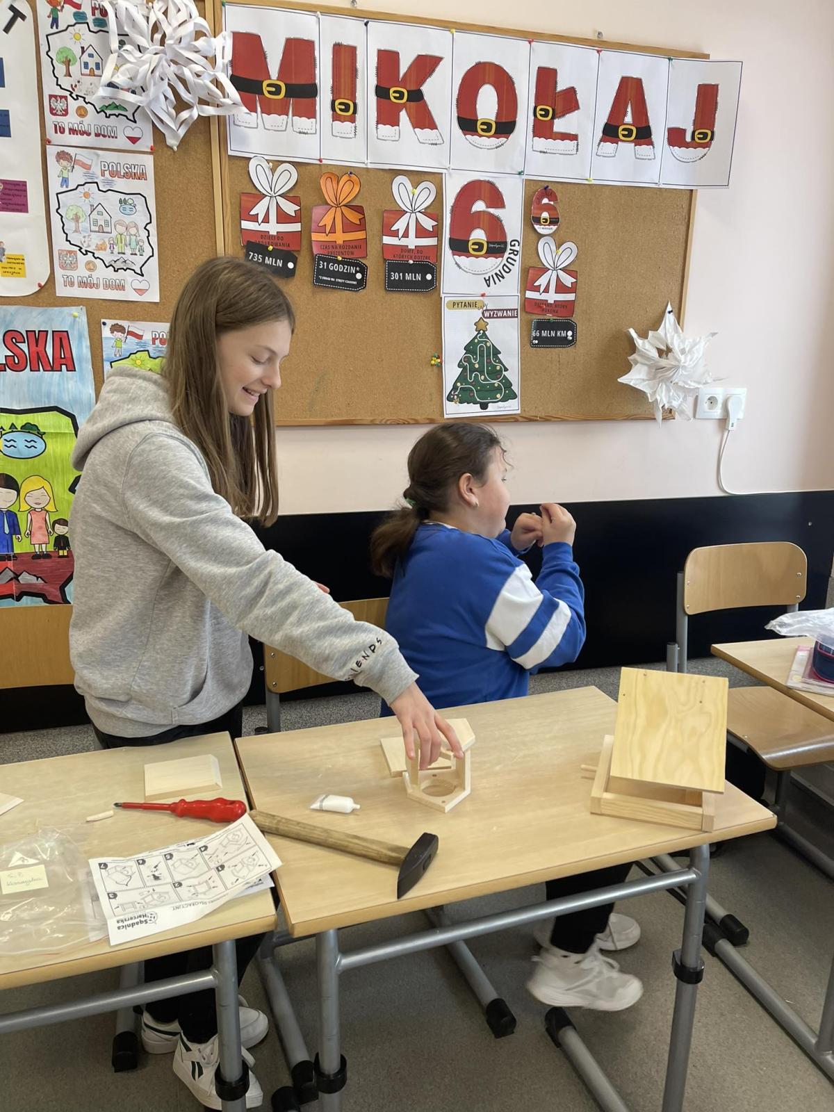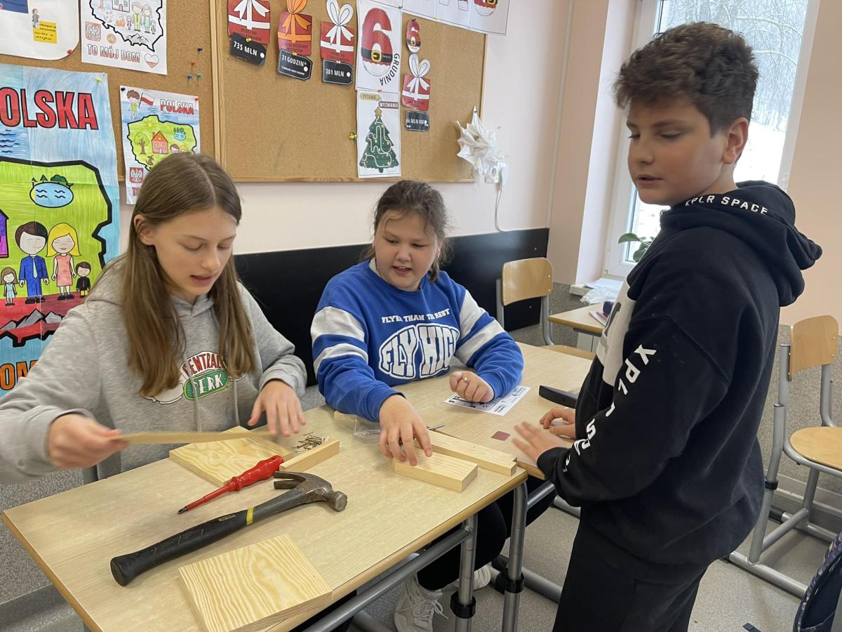 Nasza szkoła otrzymała kilka takich karmników i na lekcjach techniki i plastyki uczniowie pod opieką nauczycielki p. Moniki Łączek-Bołoz składali je w całość i malowali, a konserwator szkoły p. Jakub Gumulak nadzorował to i montował je na drzewach.